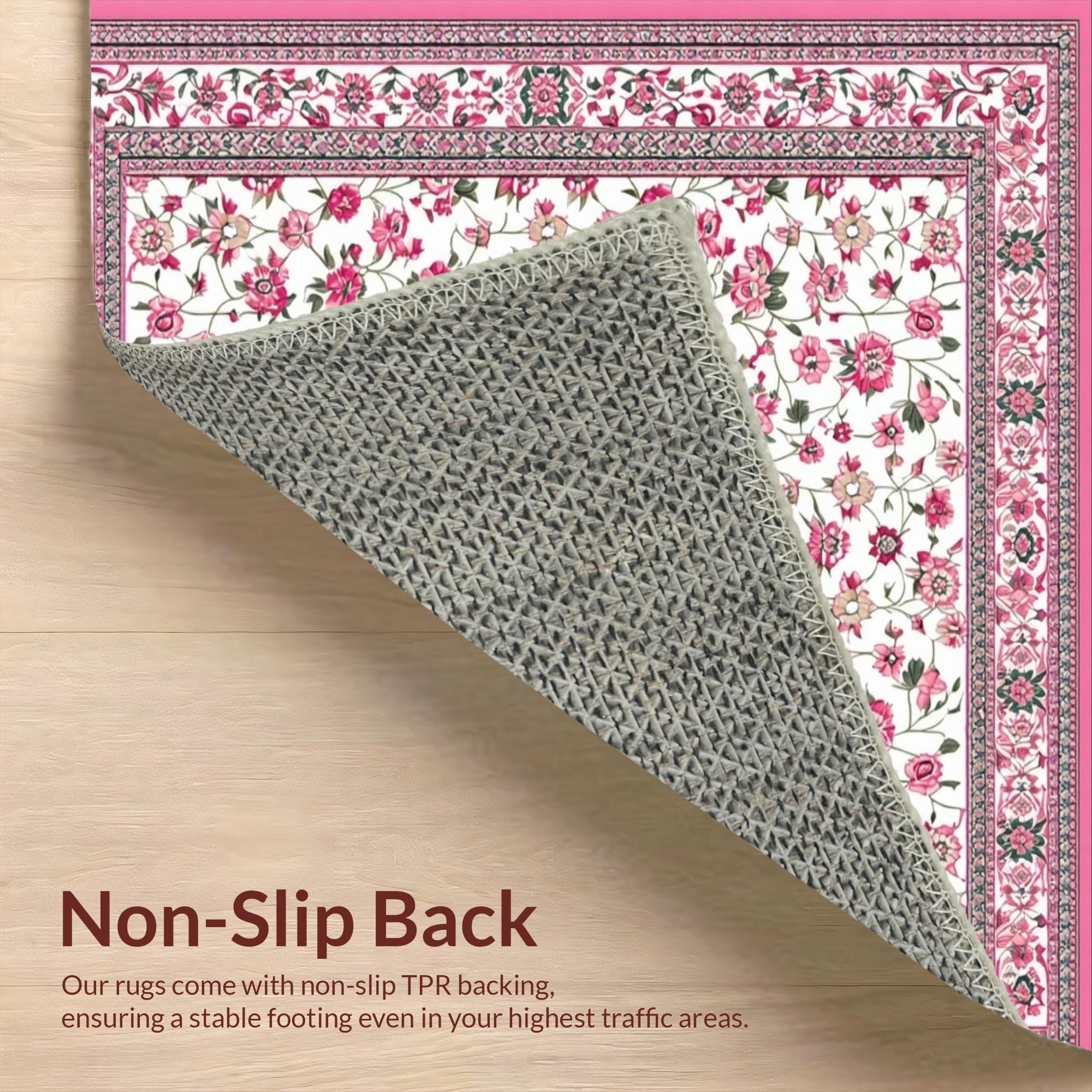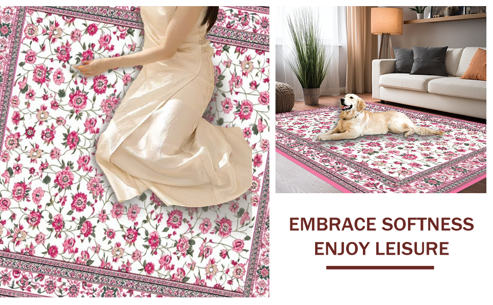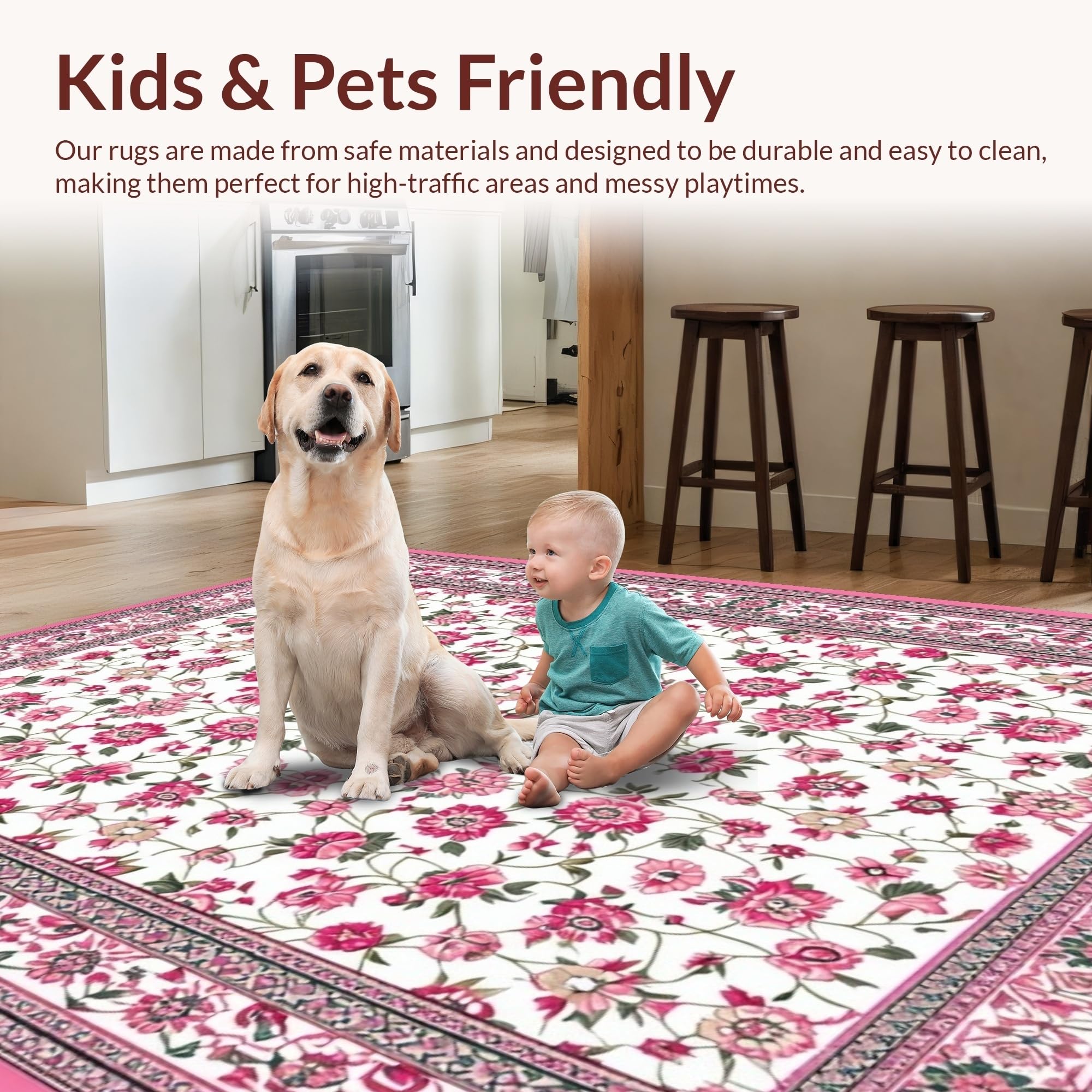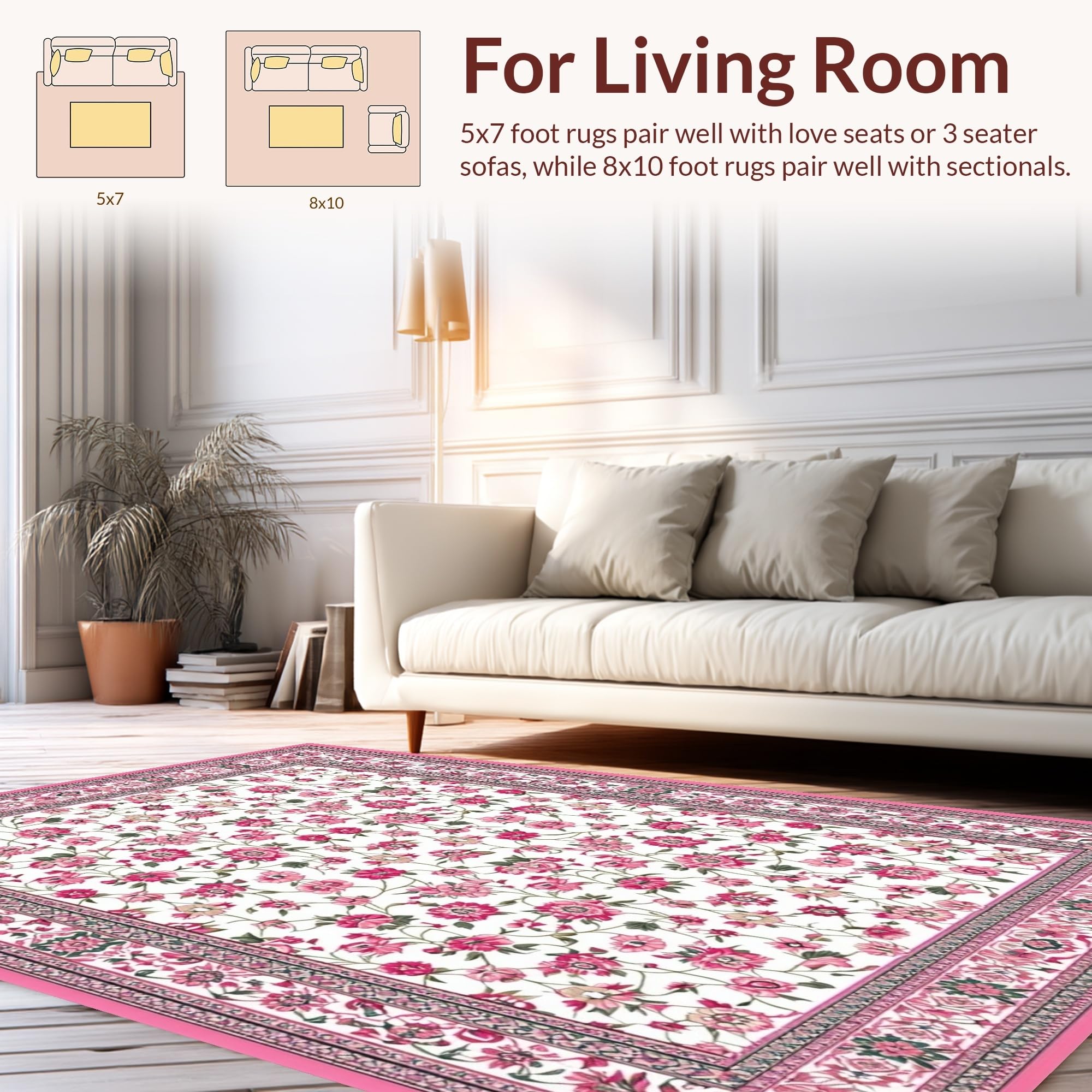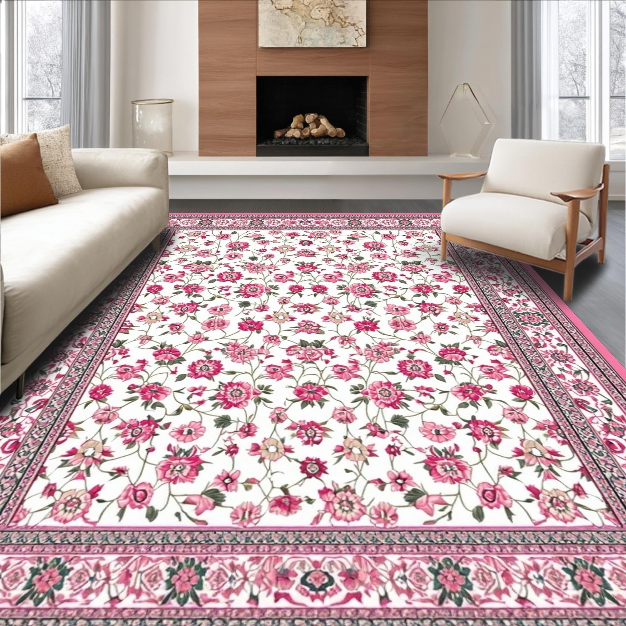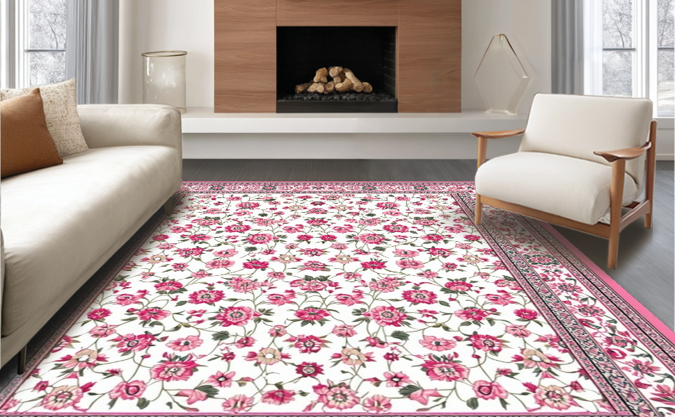 Ultra Soft Area Rug, Non Slip, Stain Resistant, Washable Area Rugs for Living Room, Bedroom, Serene Cottage Garden Look(White) Overview: