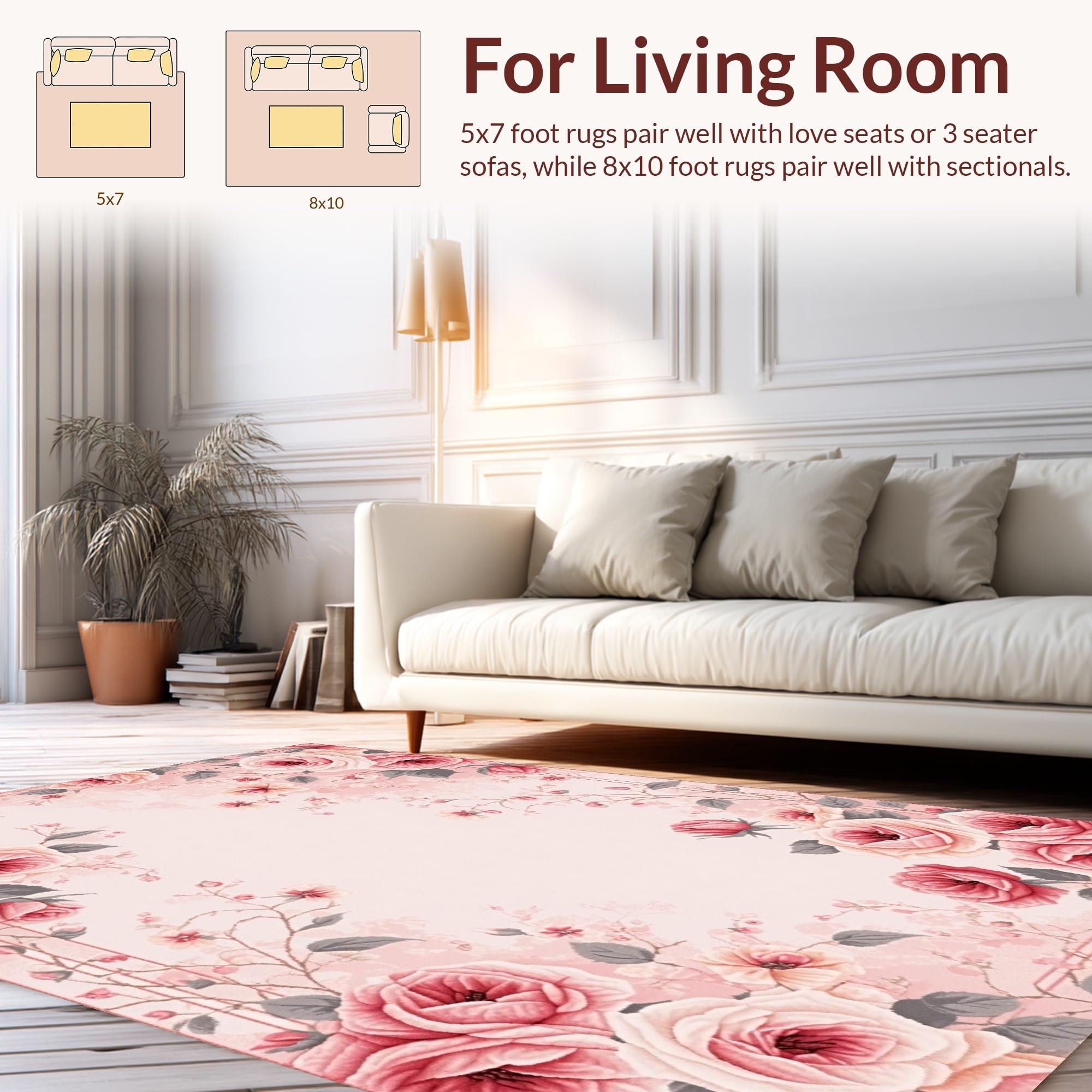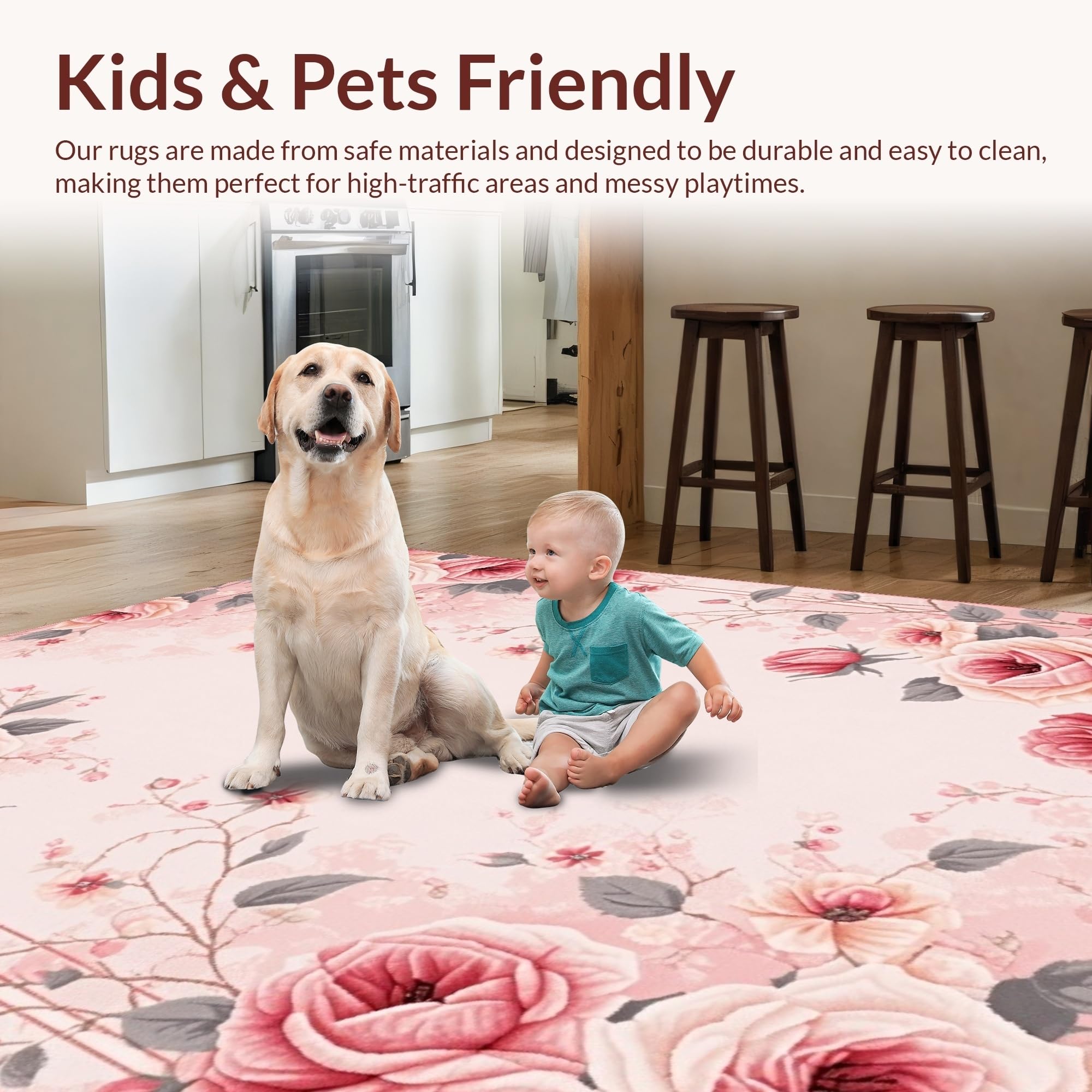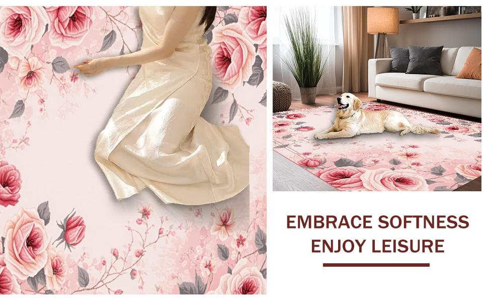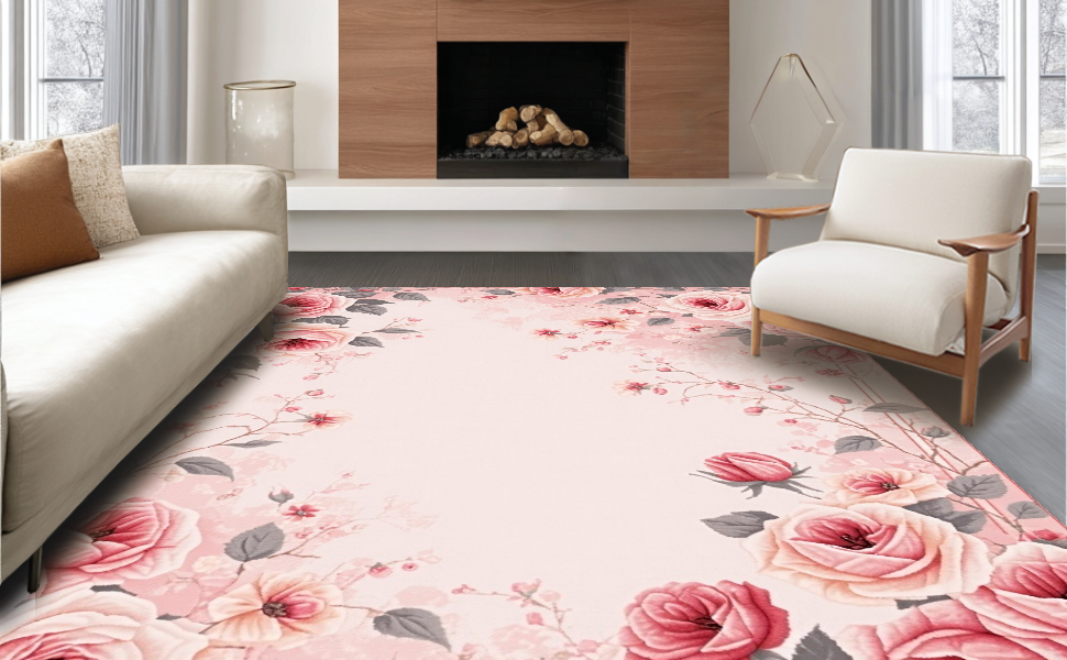 Ultra Soft Area Rug, Non Slip, Stain Resistant, Washable Area Rugs for Living Room, Bedroom, Serene Floral Embrace Aesthetic(Pink) Overview: