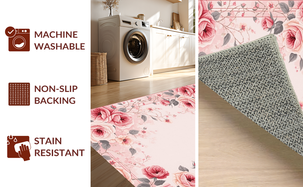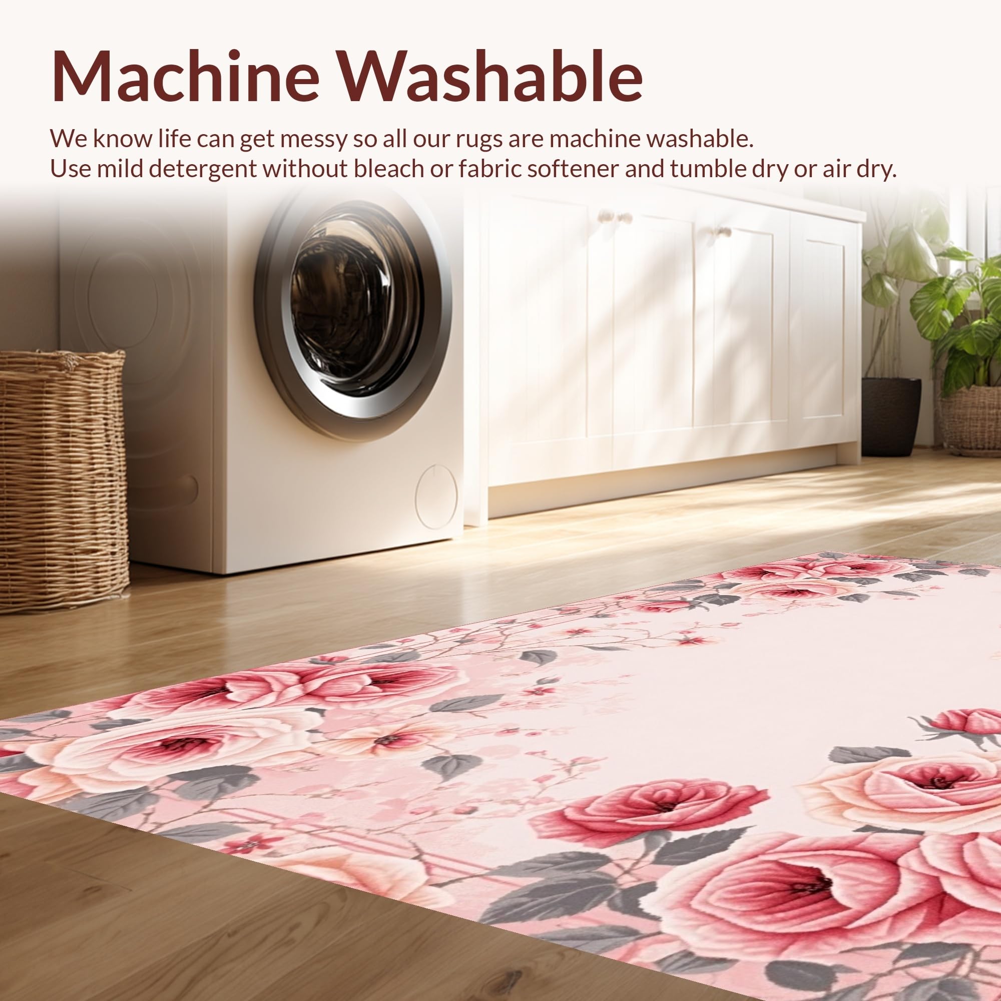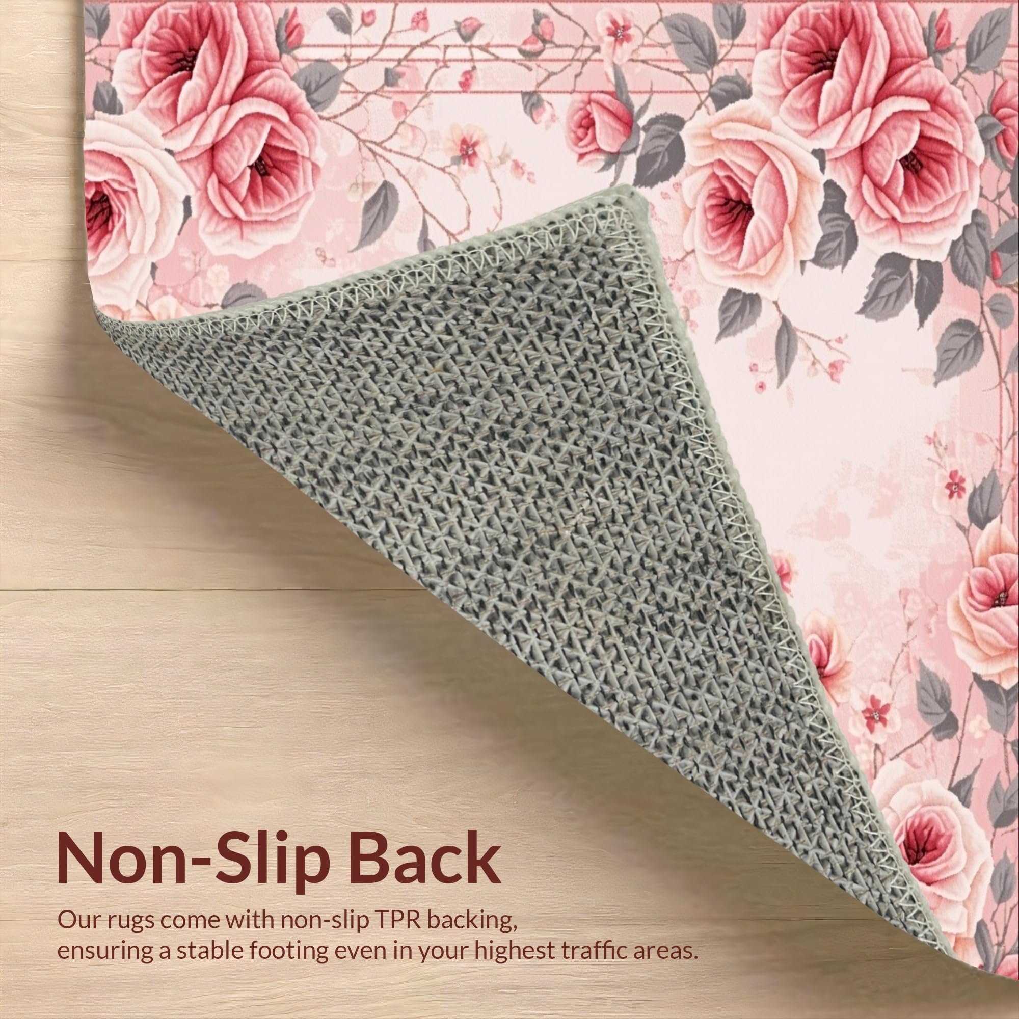 Ultra Soft Area Rug, Non Slip, Stain Resistant, Washable Area Rugs for Living Room, Bedroom, Serene Floral Embrace Aesthetic(Pink) Overview: