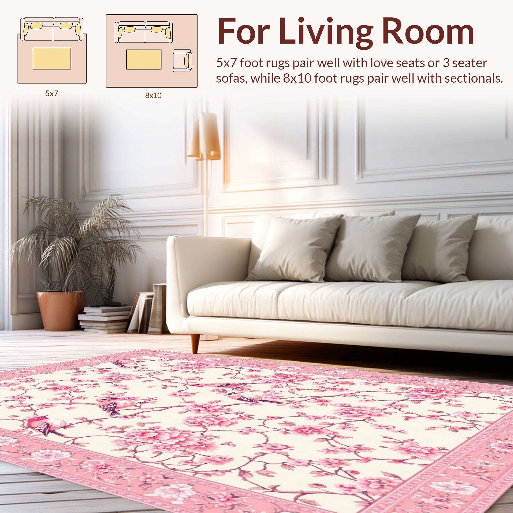Flatwoven High Traffic Area Rug, Serene Minimalist Floral Touch, Non Slip, Stain Resistant, Washable Area Rugs for Living Room, Bedroom (Ivory) Overview: