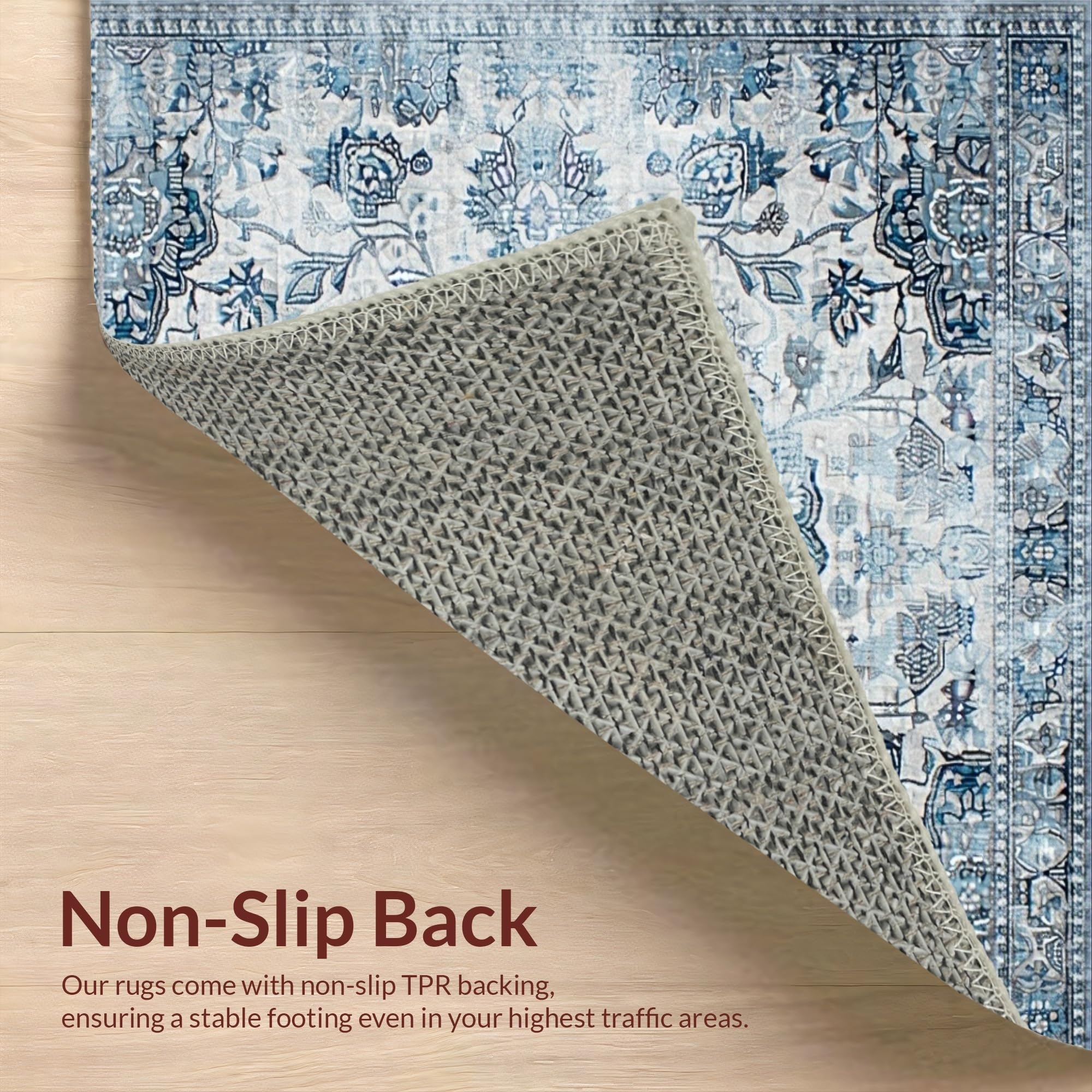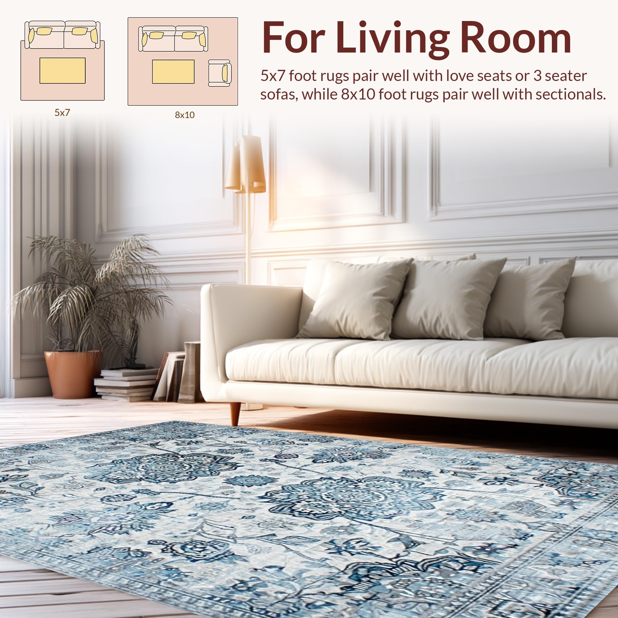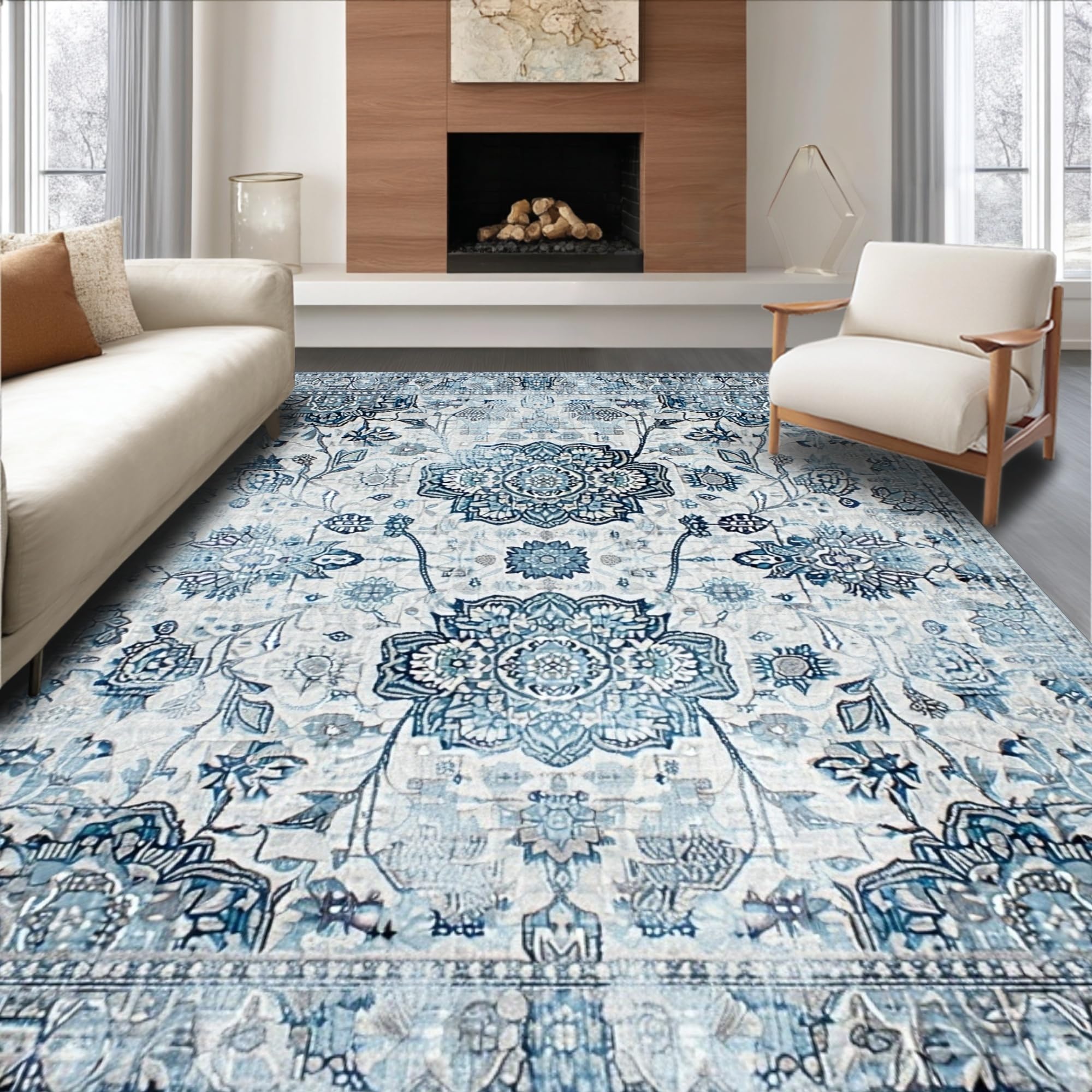 Ultra Soft Area Rug, Non Slip, Stain Resistant, Washable Area Rugs for Living Room, Bedroom, Serene Monochromatic Floral Elements(Blue) Overview: