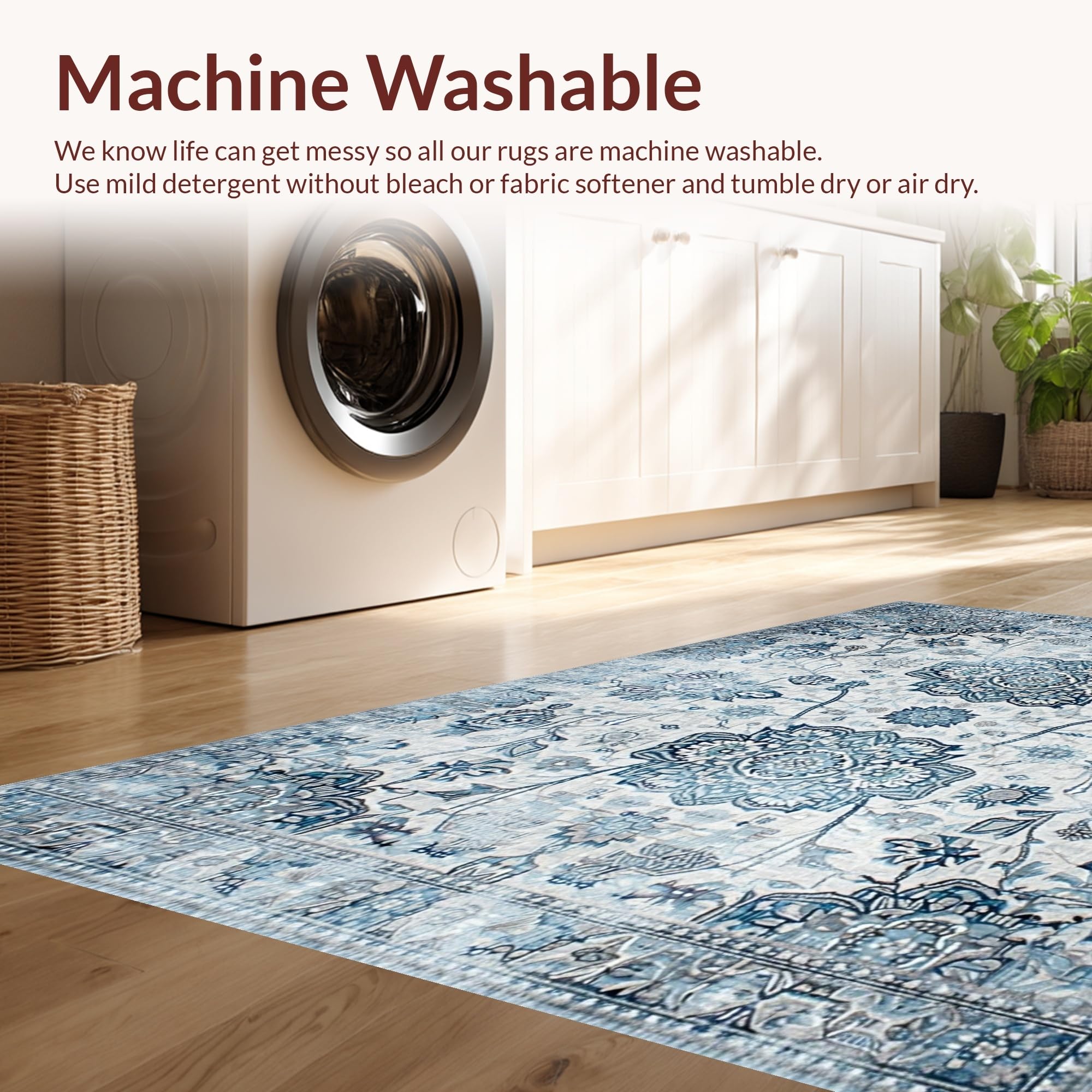 - Machine Washable: Our rugs can be easily thrown in the wash machine.