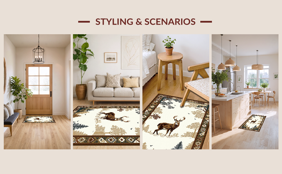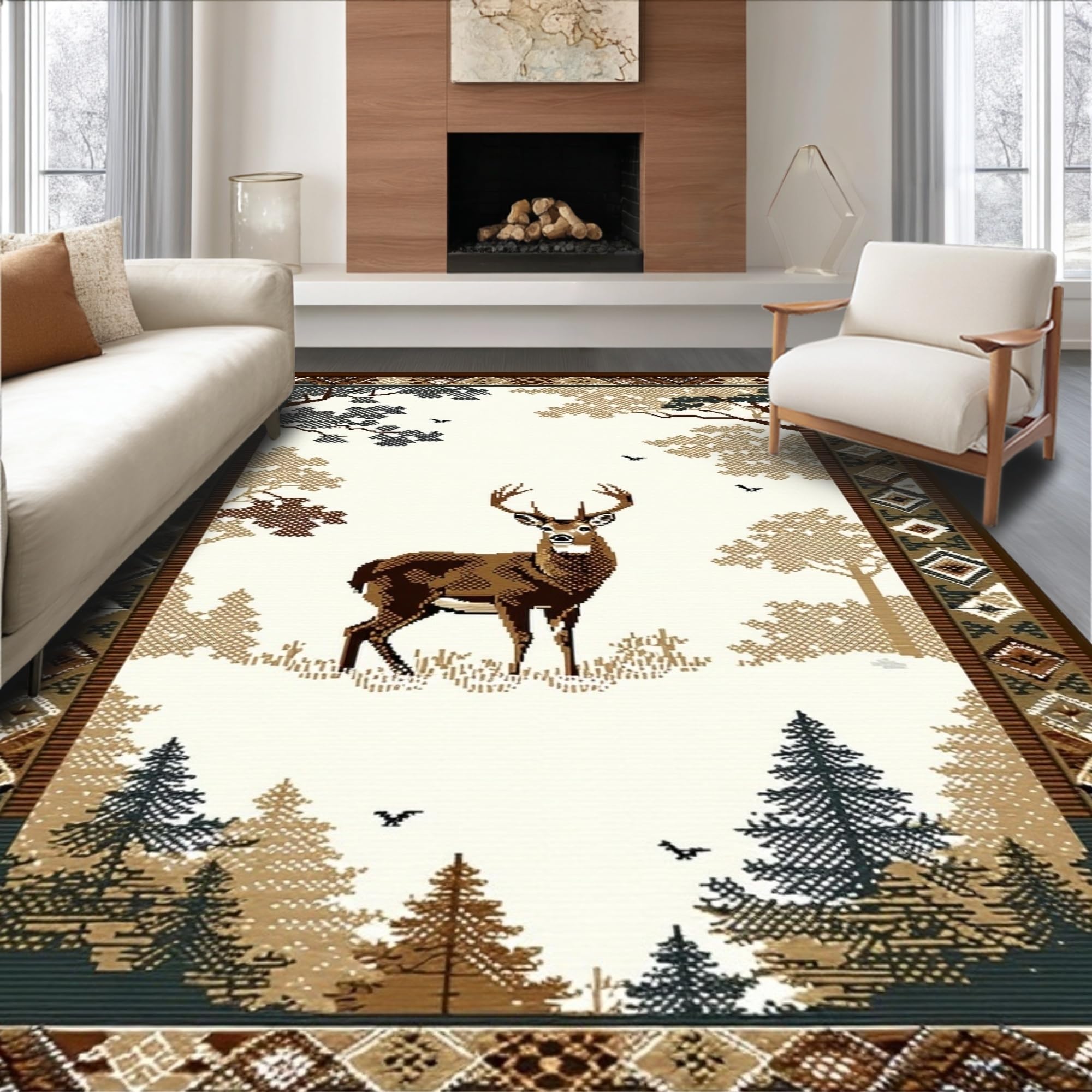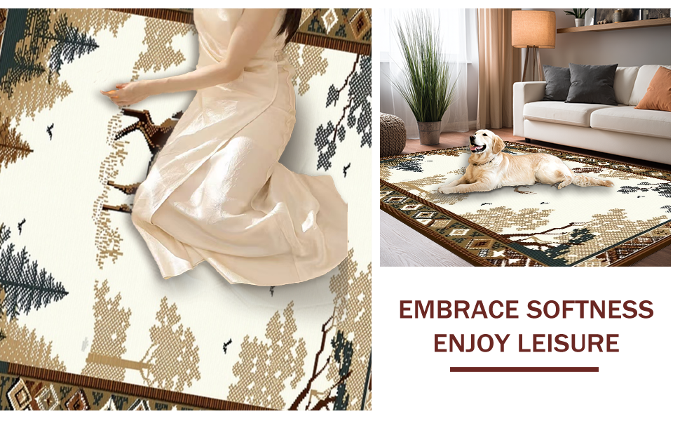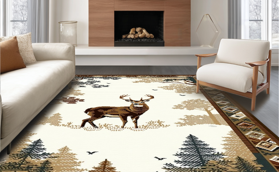 Ultra Soft Area Rug, Non Slip, Stain Resistant, Washable Area Rugs for Living Room, Bedroom, Serene Neutral Wildlife Aesthetic(Beige) Overview: