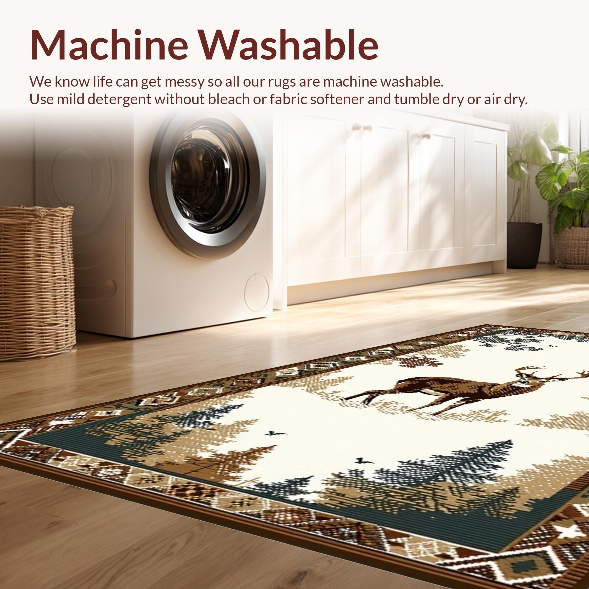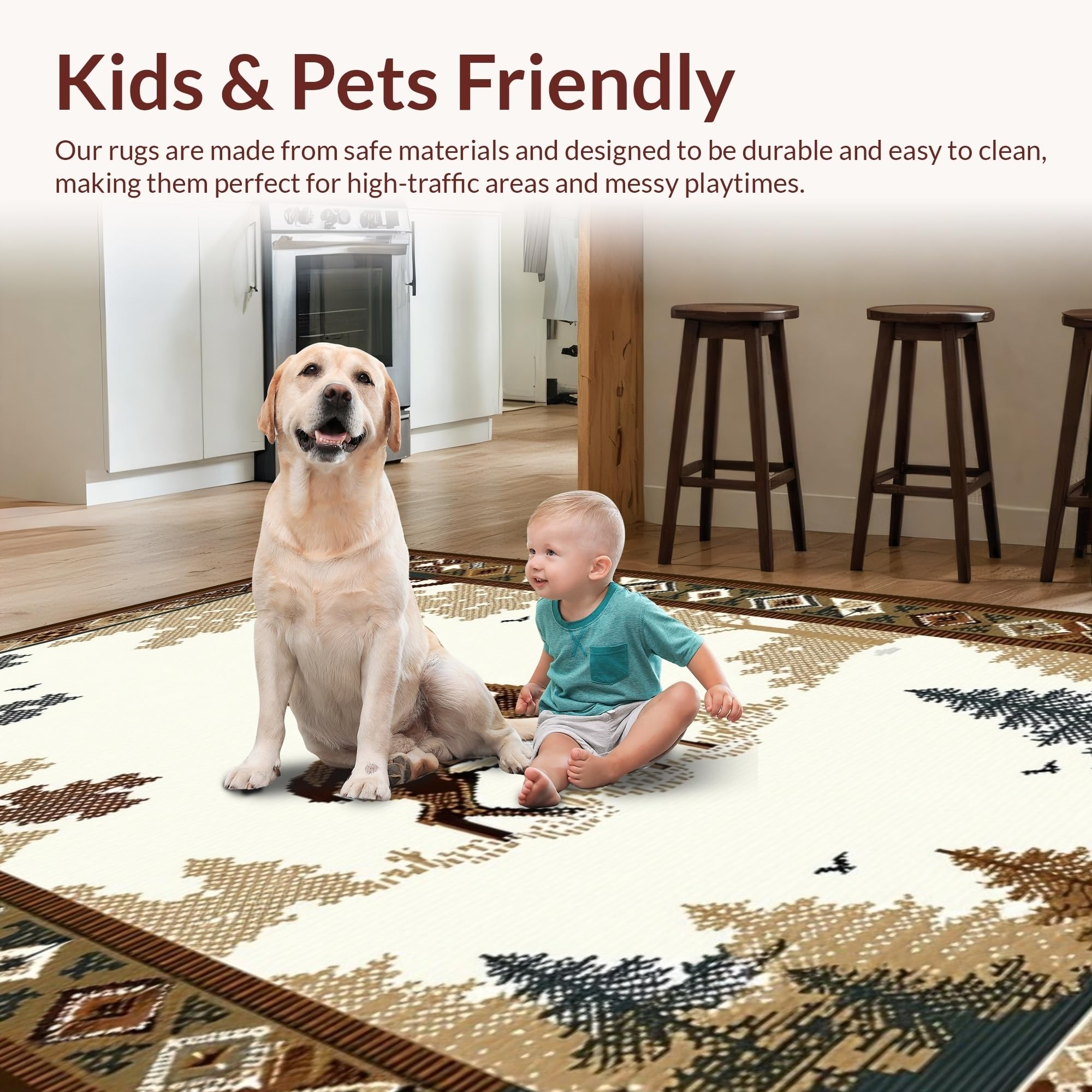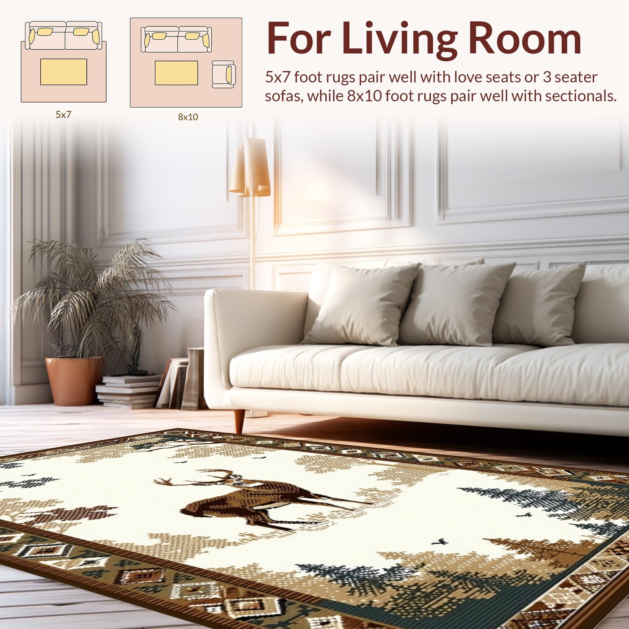 Ultra Soft Area Rug, Non Slip, Stain Resistant, Washable Area Rugs for Living Room, Bedroom, Serene Neutral Wildlife Aesthetic(Beige) Overview: