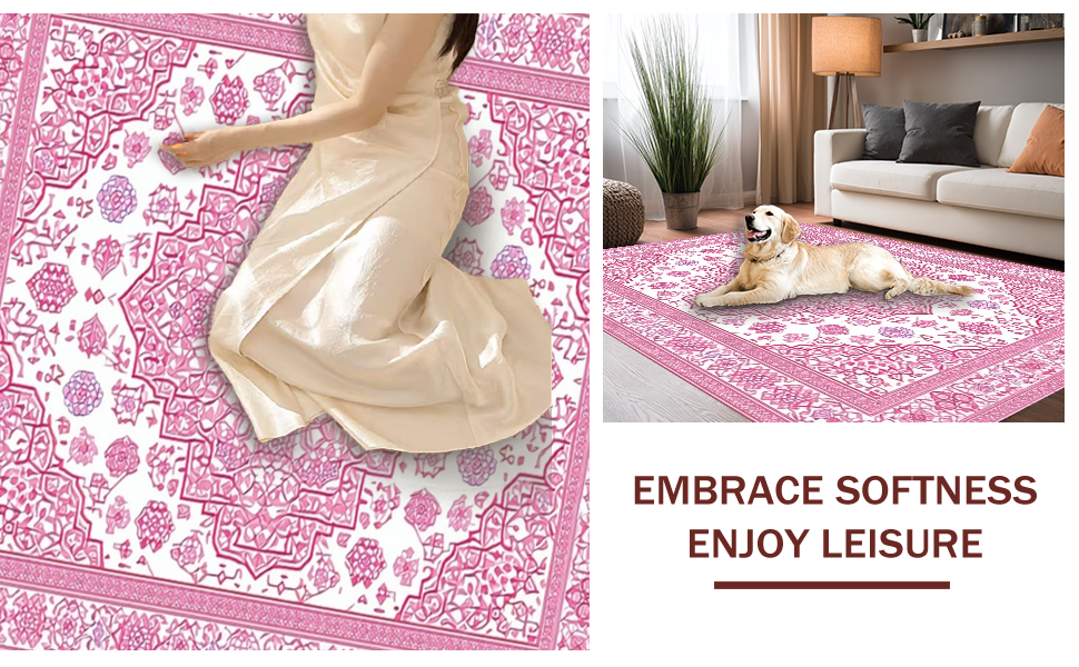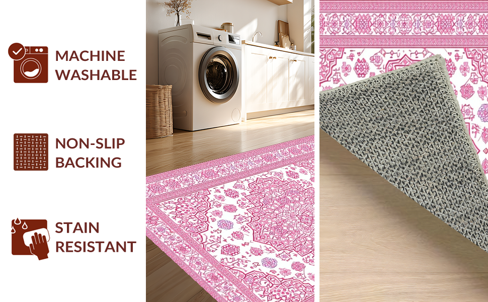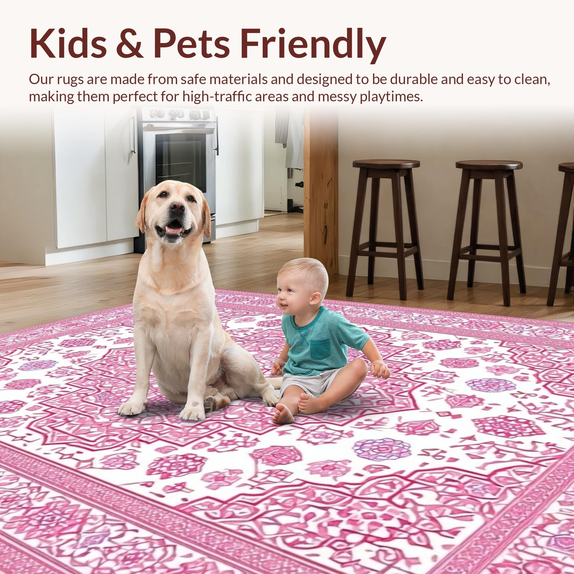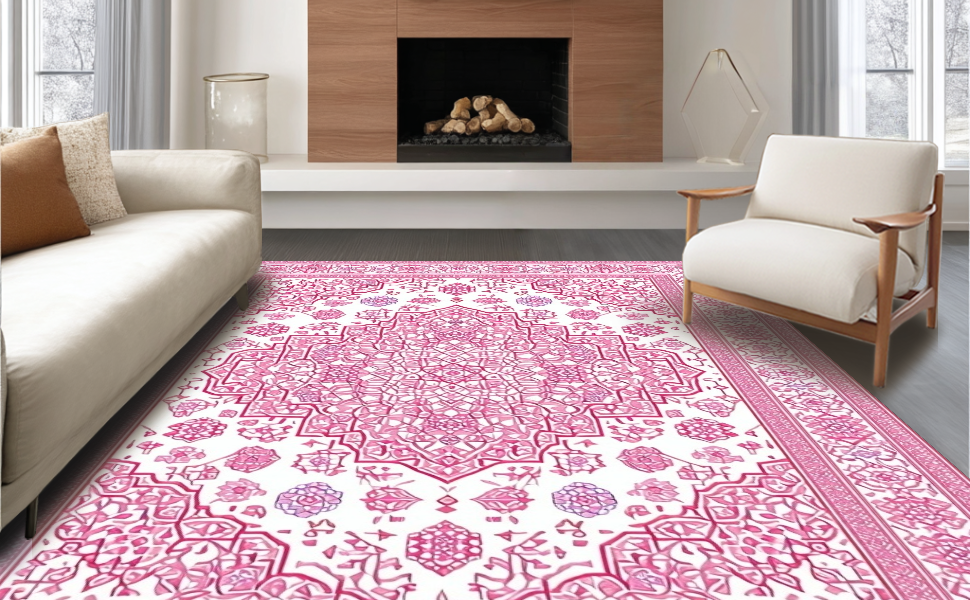 Ultra Soft Area Rug, Non Slip, Stain Resistant, Washable Area Rugs for Living Room, Bedroom, Serene Pastel Medallion Theme(Pink) Overview: