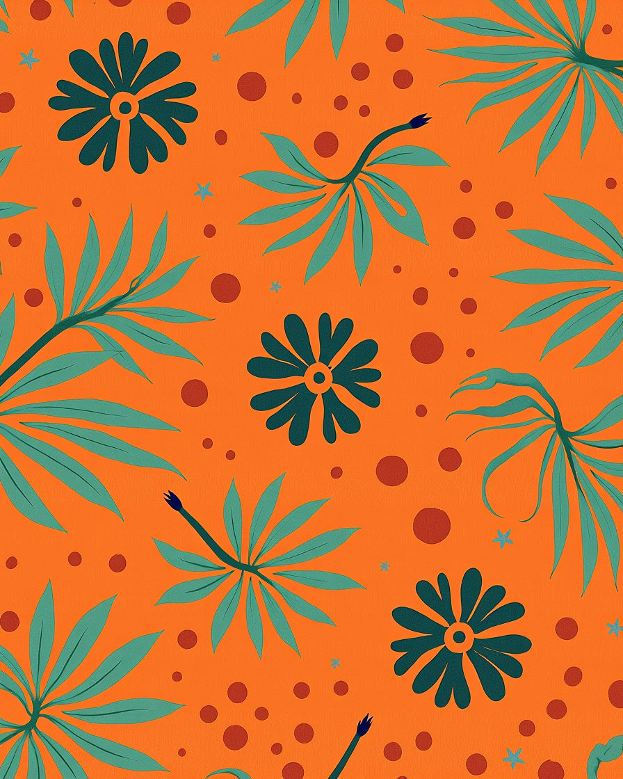 Serene Sunset Canopy with Exotic Ferns and Abstract Animal Inspired(Orange)