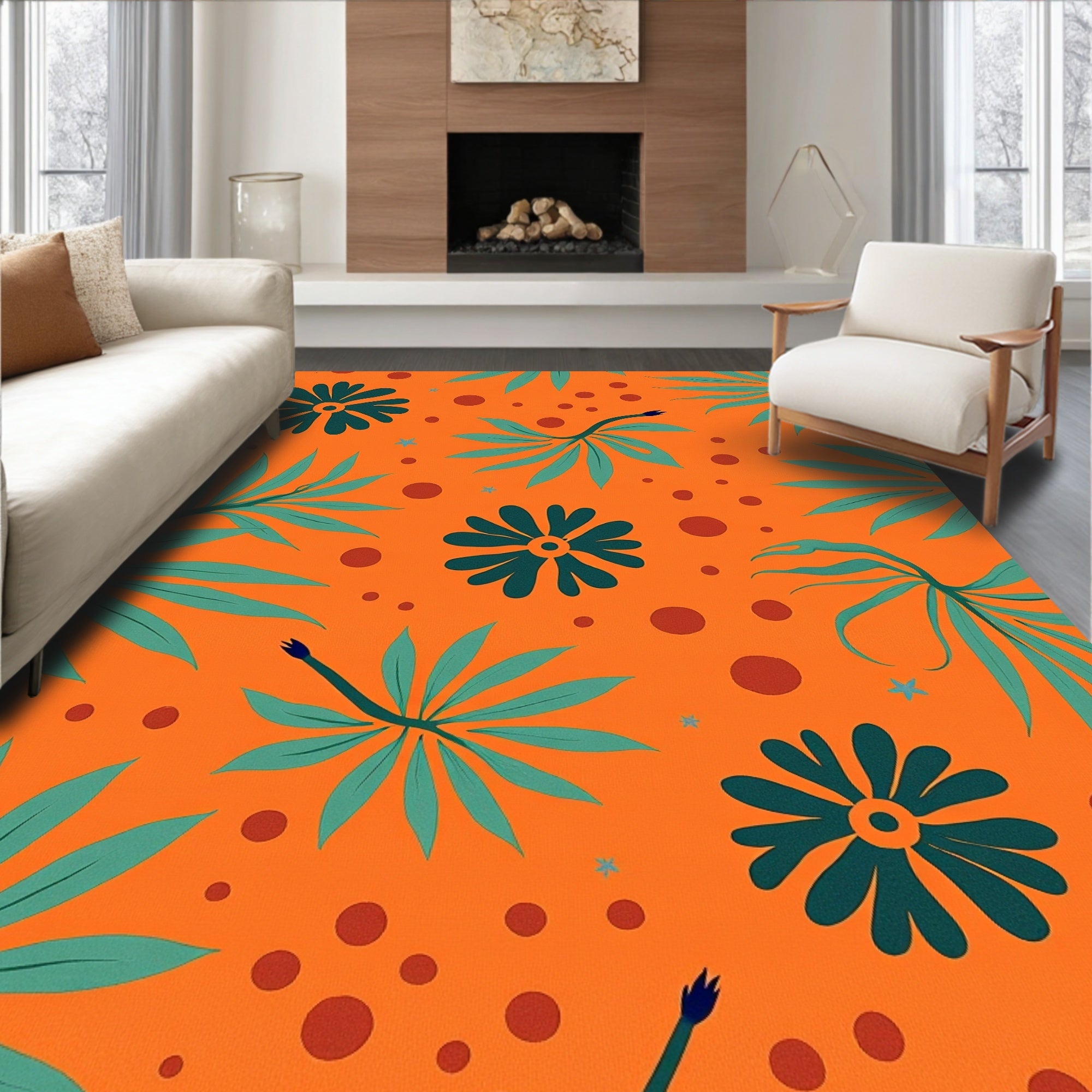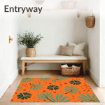 Ultra Soft Area Rug, Non Slip, Stain Resistant, Washable Area Rugs for Living Room, Bedroom, Serene Sunset Canopy with Exotic Ferns and Abstract Animal Inspired(Orange) Overview: