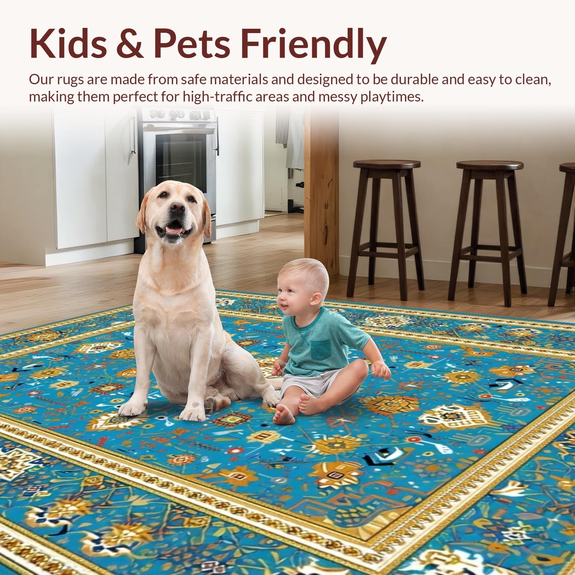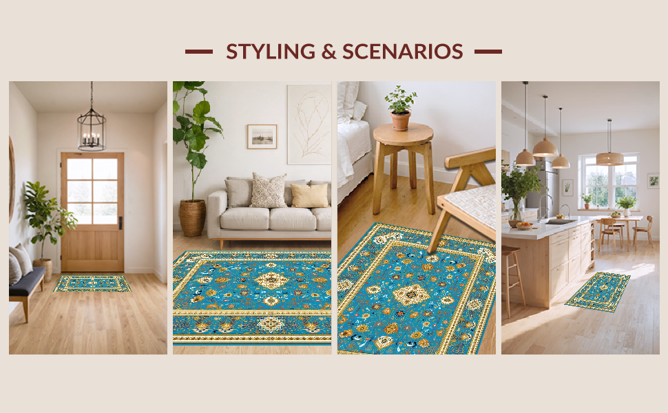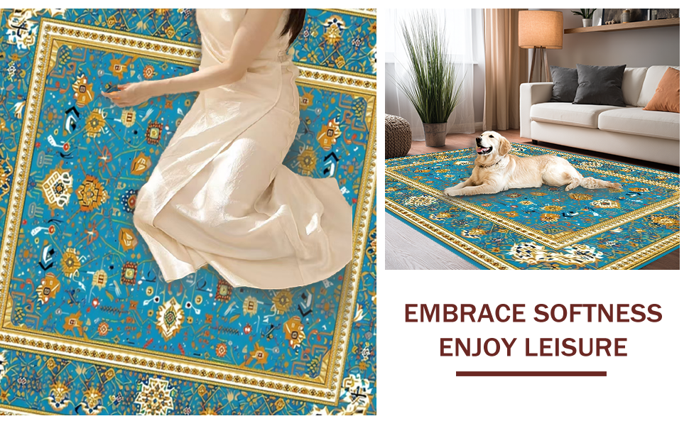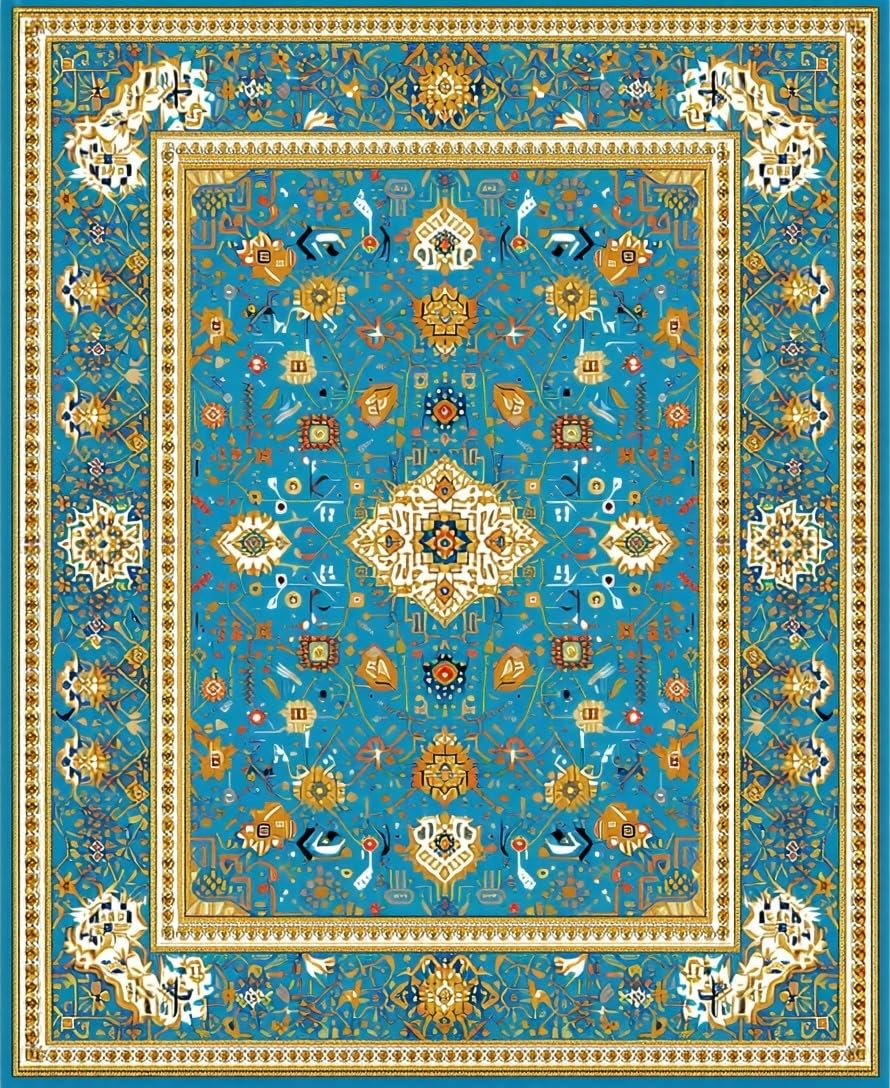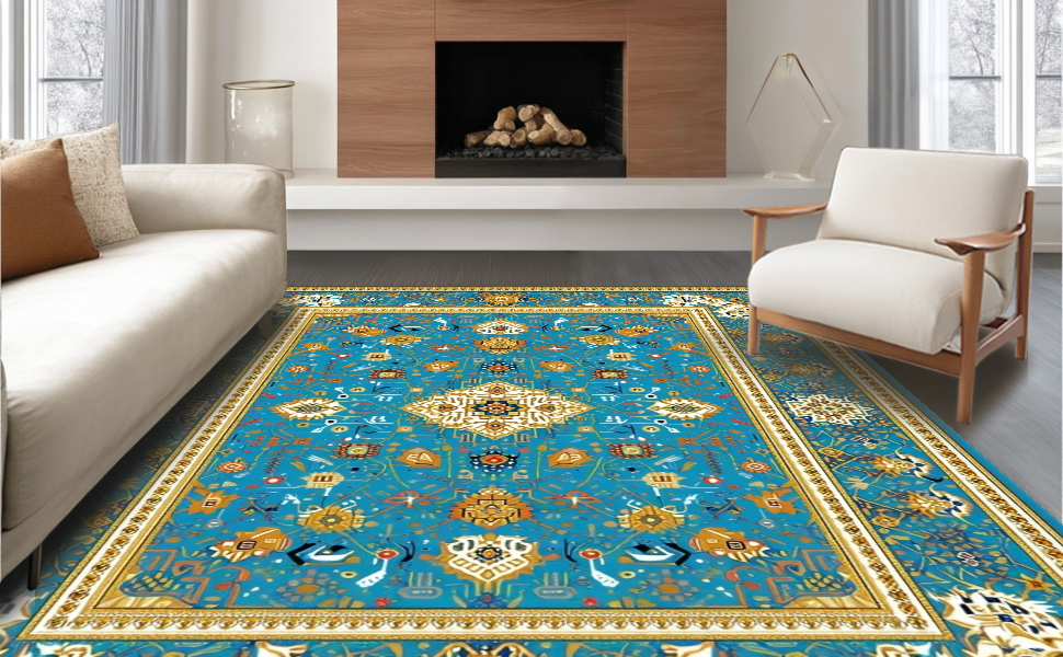 Ultra Soft Area Rug, Non Slip, Stain Resistant, Washable Area Rugs for Living Room, Bedroom, Serene Transitional Symmetrical Elements(Blue) Overview: