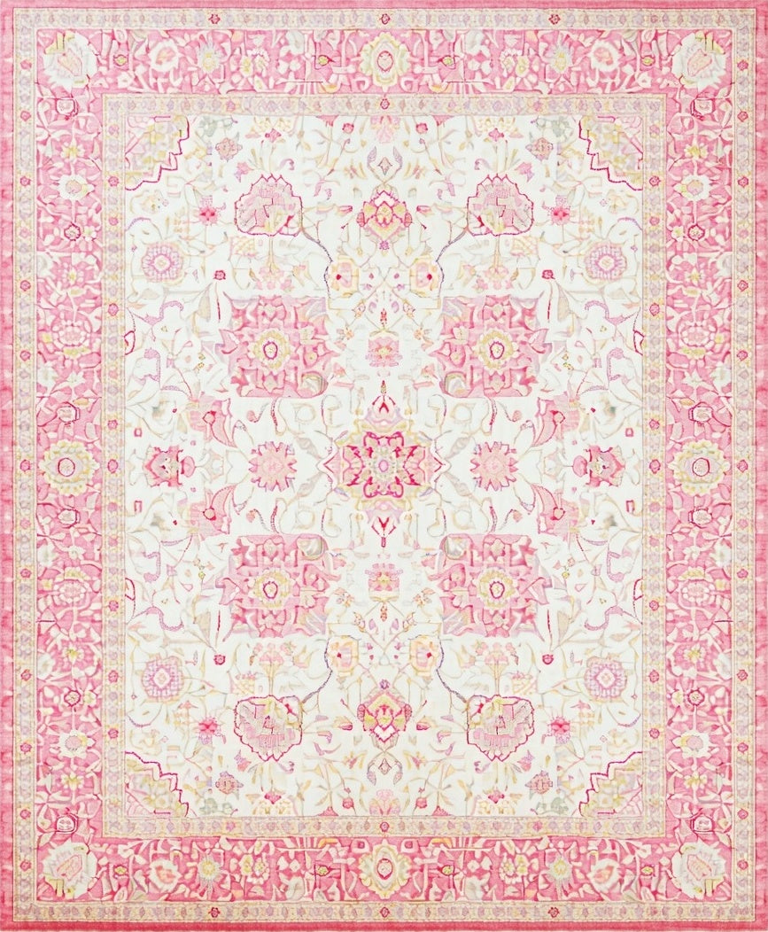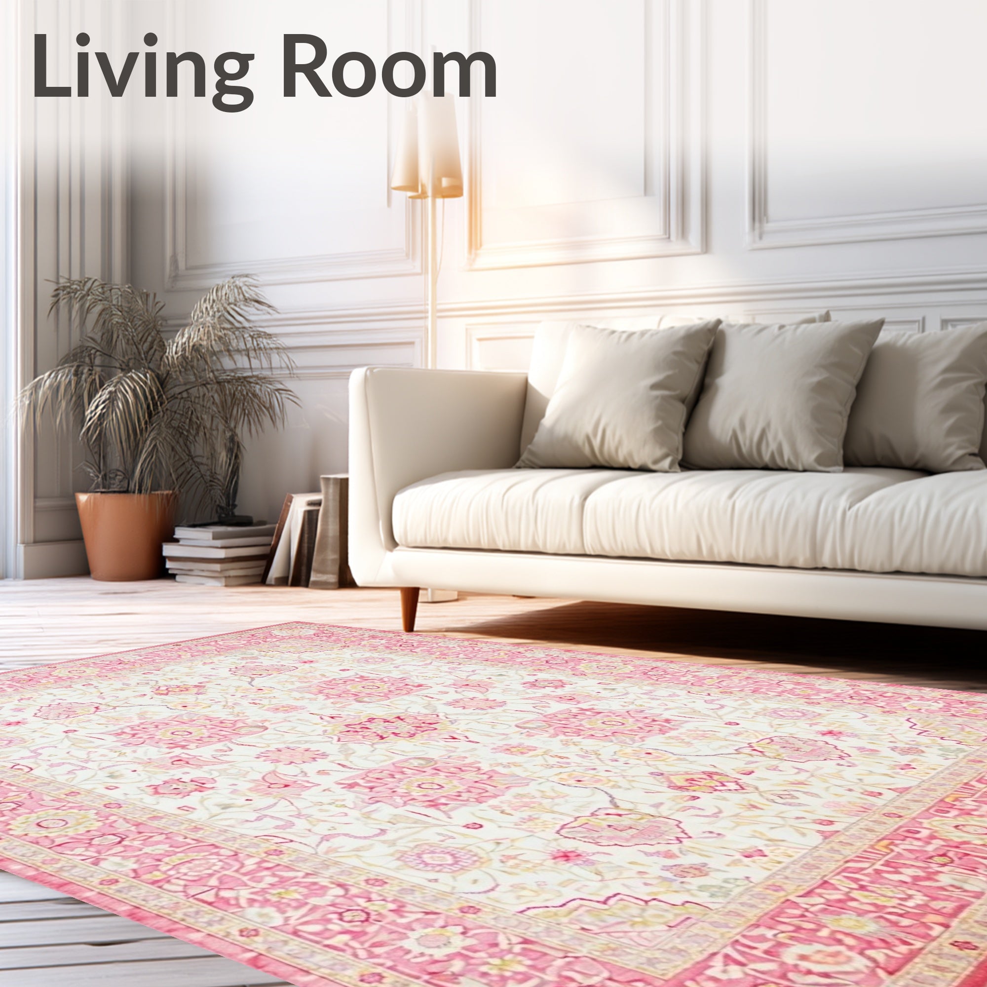 Ultra Soft Area Rug, Non Slip, Stain Resistant, Washable Area Rugs for Living Room, Bedroom, Serene White Pink Beige Hues with Delicate Bethlehem(White) Overview: