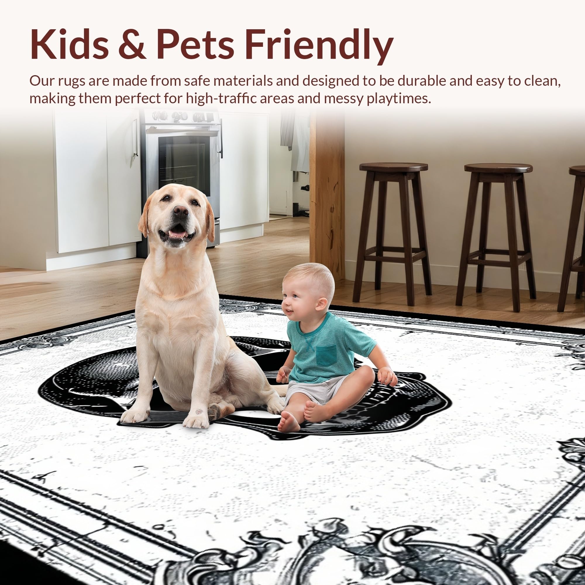 Ultra Soft Area Rug, Non Slip, Stain Resistant, Washable Area Rugs for Living Room, Bedroom, Shadowy Elegant Pattern Display(Black) Overview: