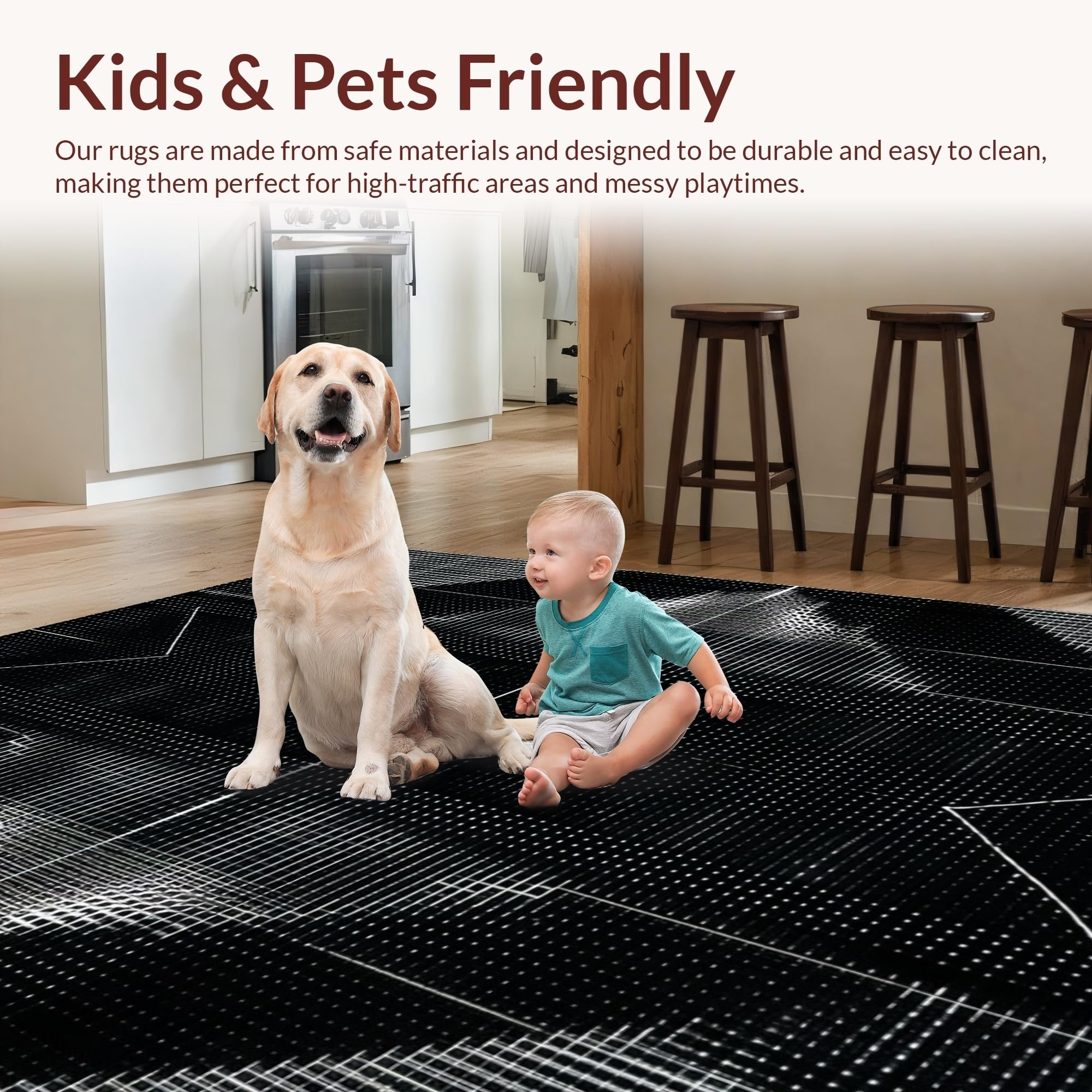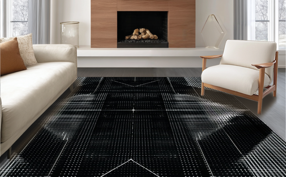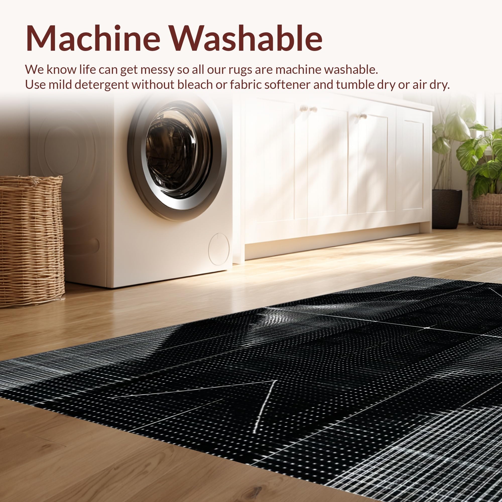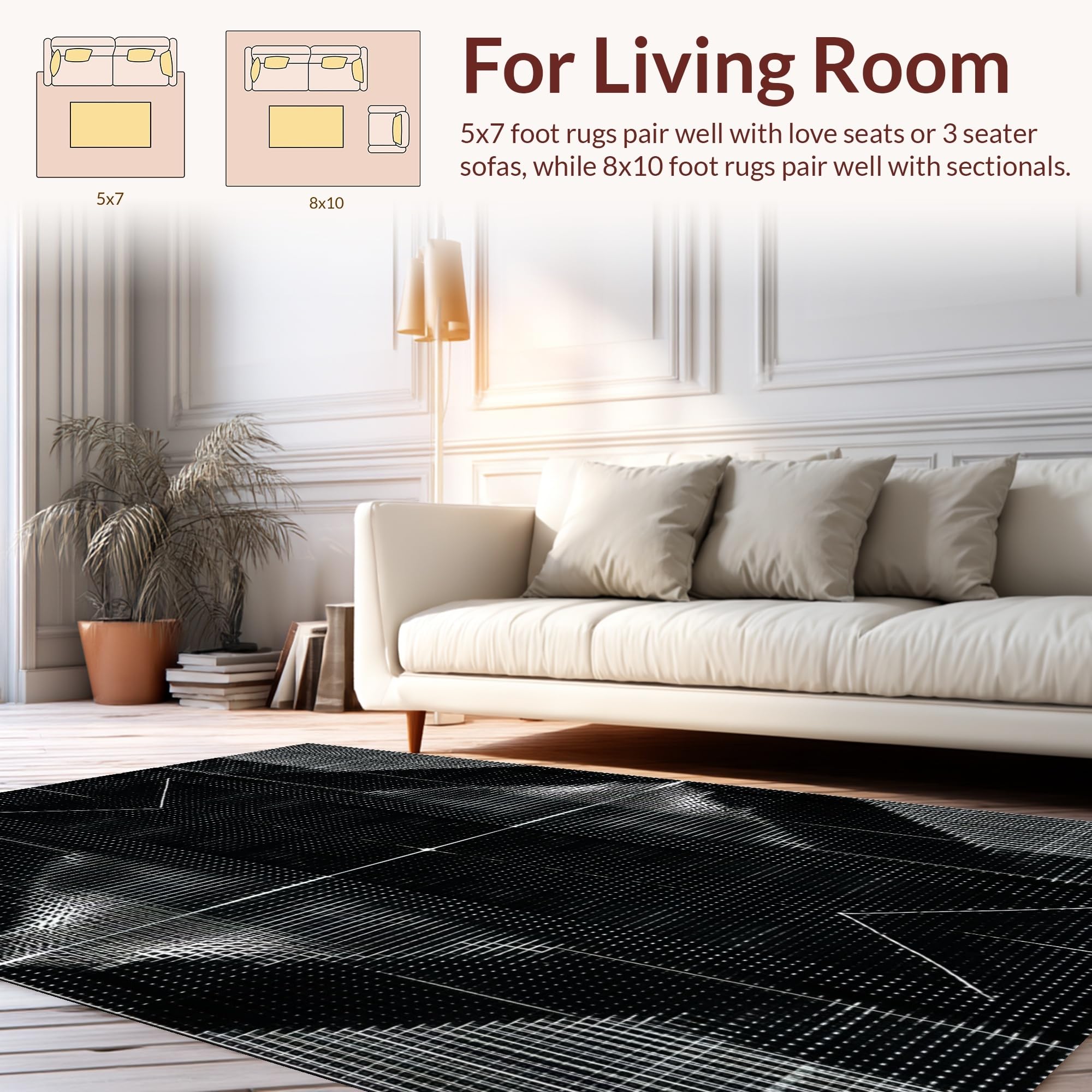 Ultra Soft Area Rug, Non Slip, Stain Resistant, Washable Area Rugs for Living Room, Bedroom, Sleek Abstract Linear Arrangement(Black) Overview:
