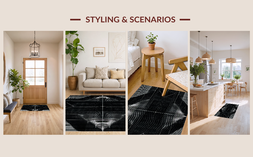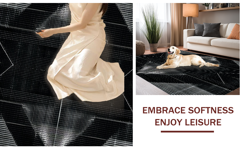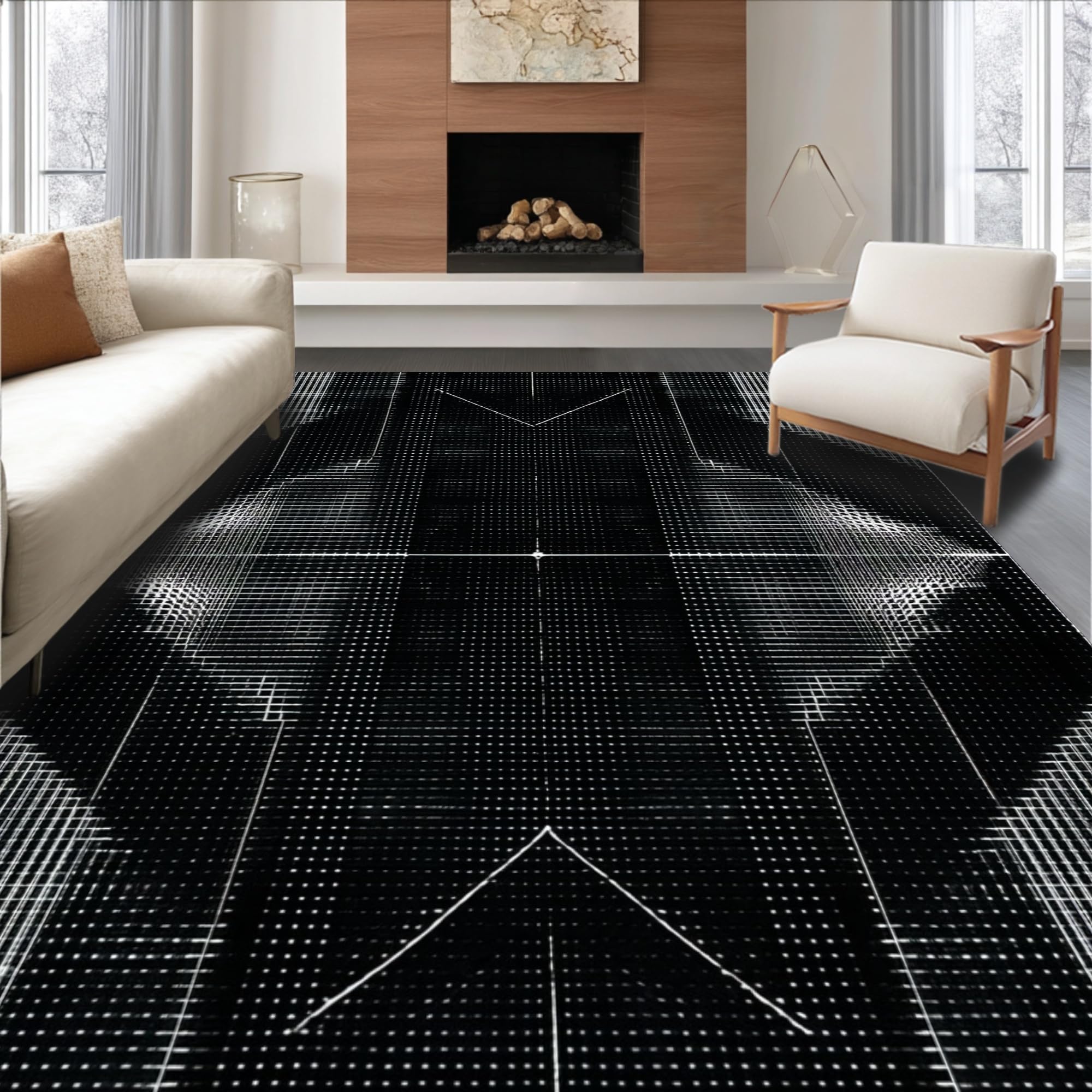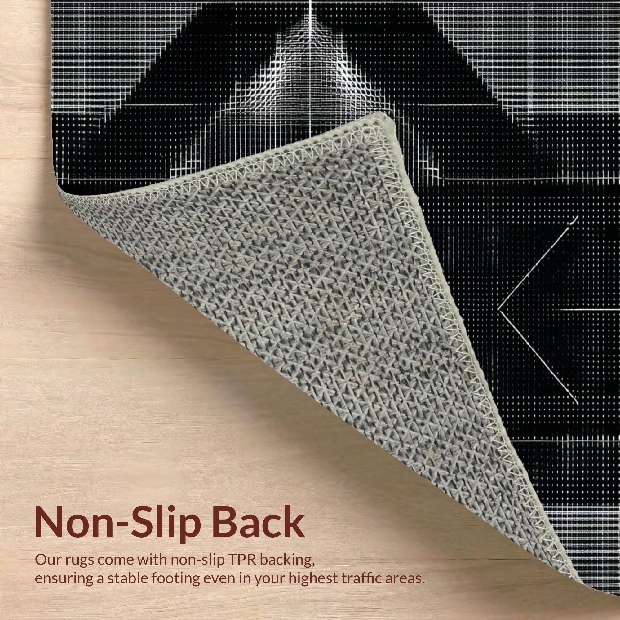 Ultra Soft Area Rug, Non Slip, Stain Resistant, Washable Area Rugs for Living Room, Bedroom, Sleek Abstract Linear Arrangement(Black) Overview: