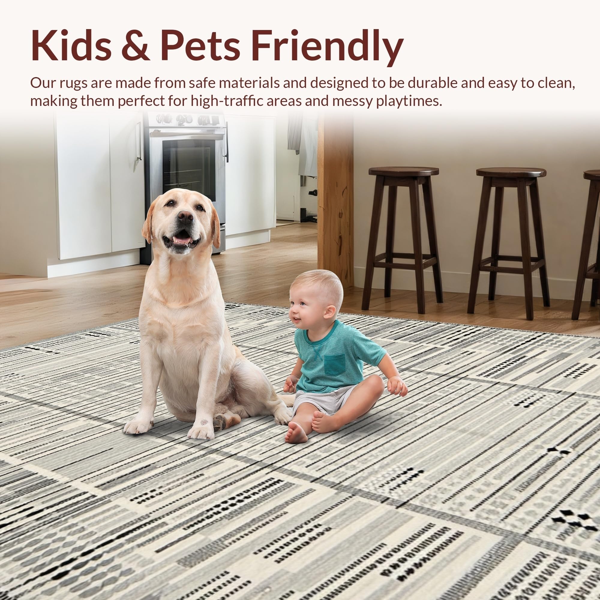 Ultra Soft Area Rug, Non Slip, Stain Resistant, Washable Area Rugs for Living Room, Bedroom, Sleek Contemporary 3D Design Element(Black) Overview: