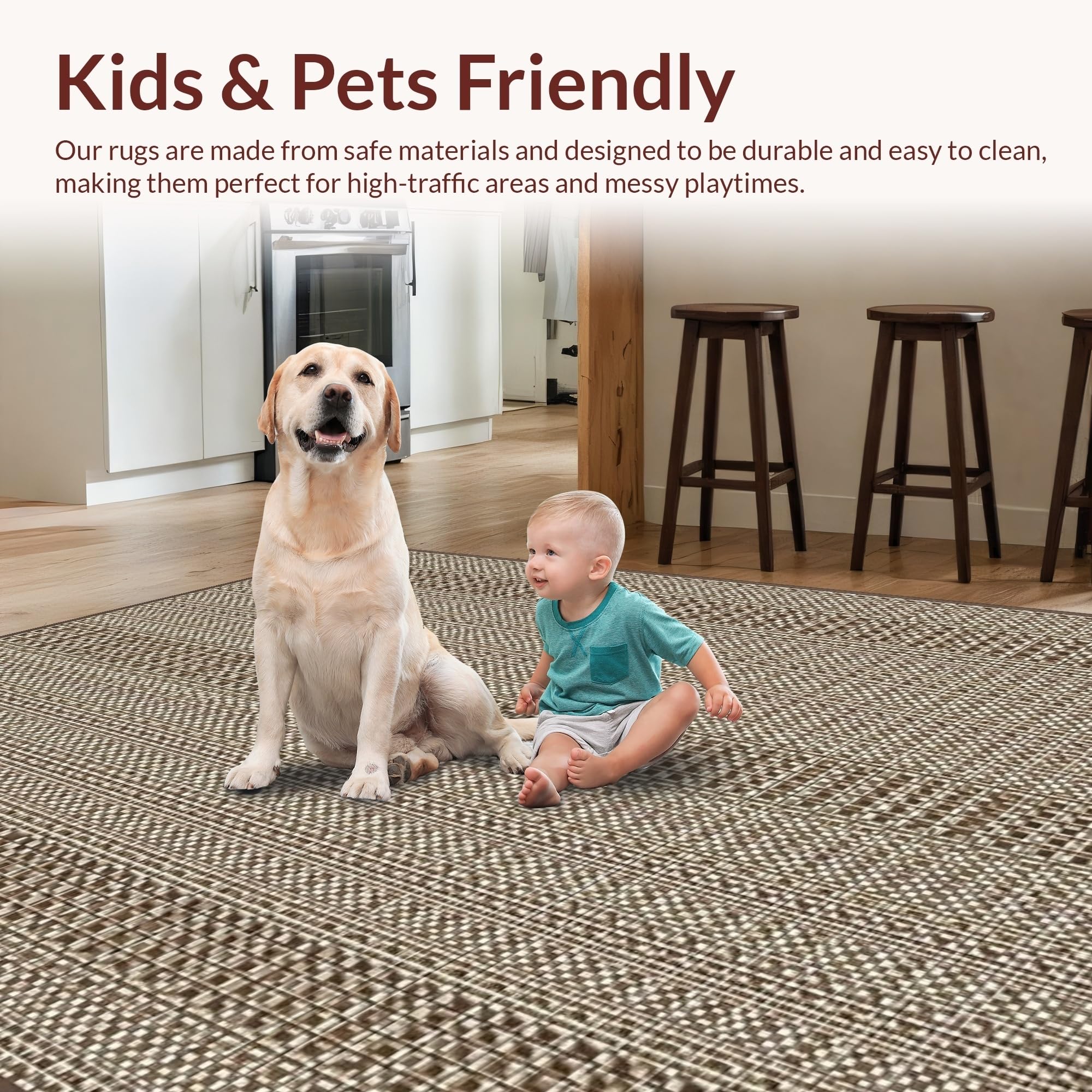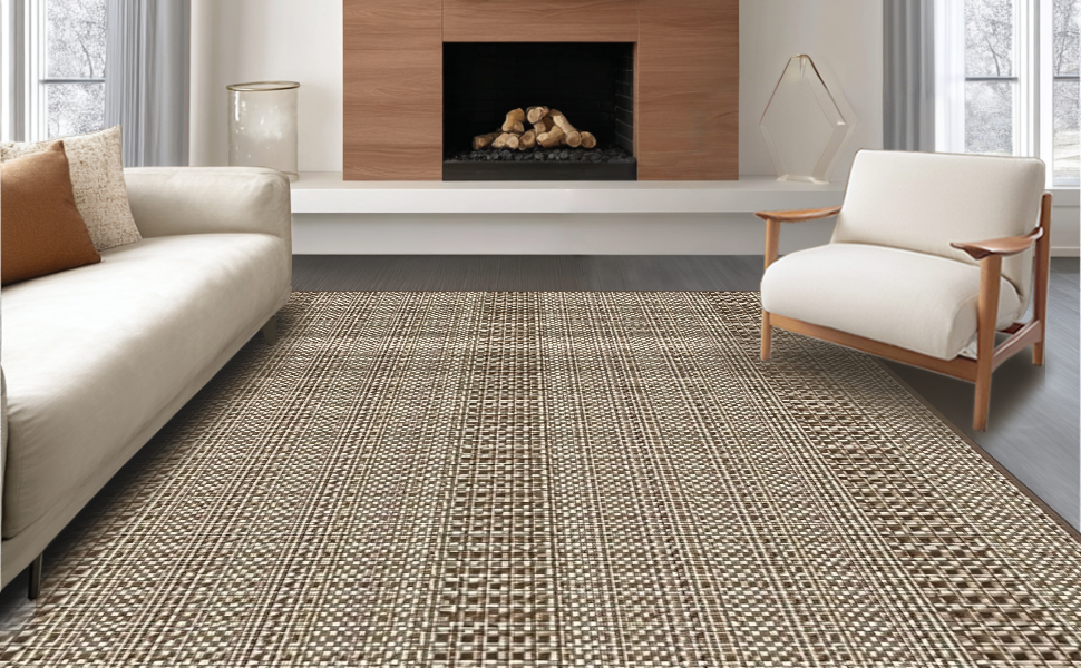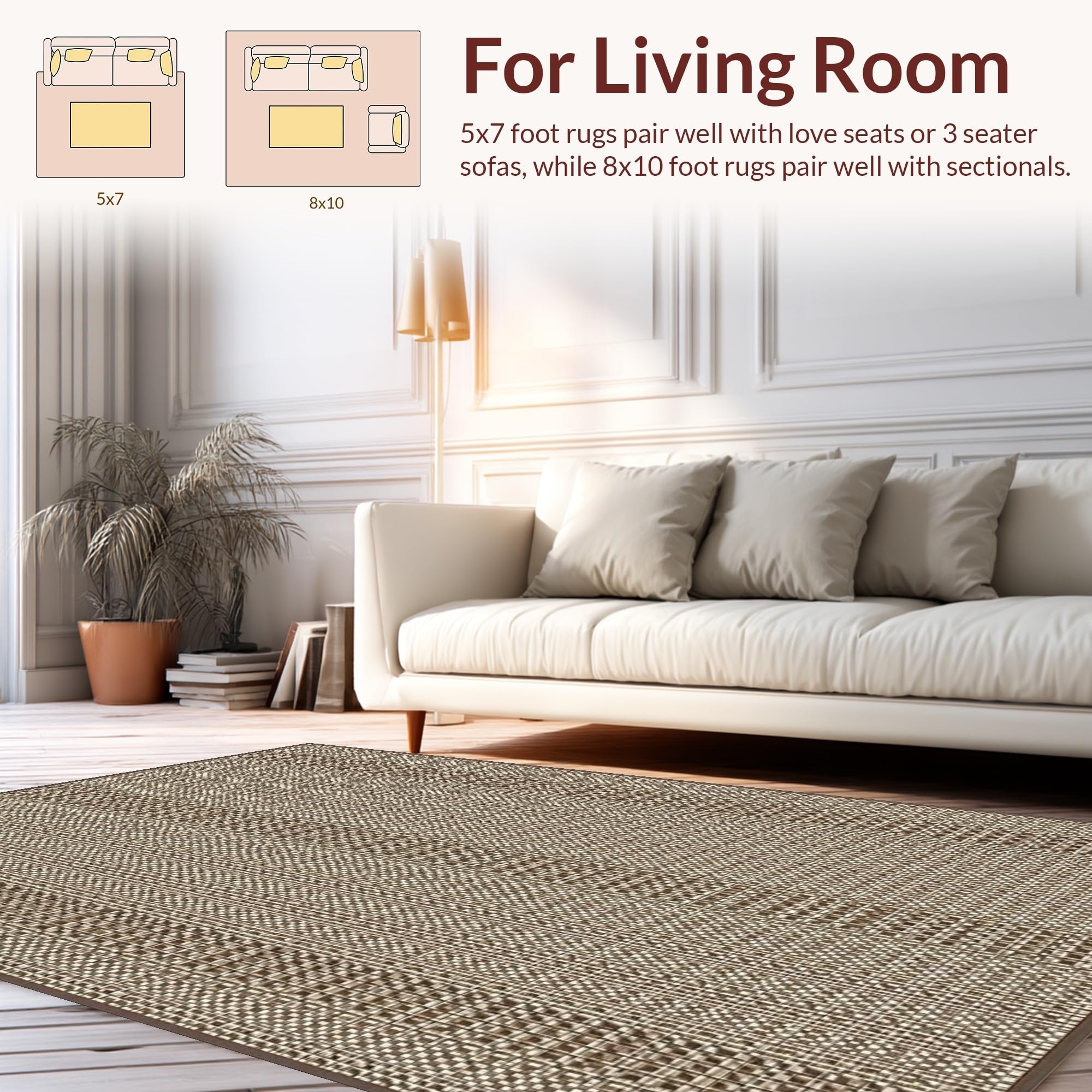 Ultra Soft Area Rug, Non Slip, Stain Resistant, Washable Area Rugs for Living Room, Bedroom, Sleek Minimalist Lattice Aesthetic(Beige) Overview: