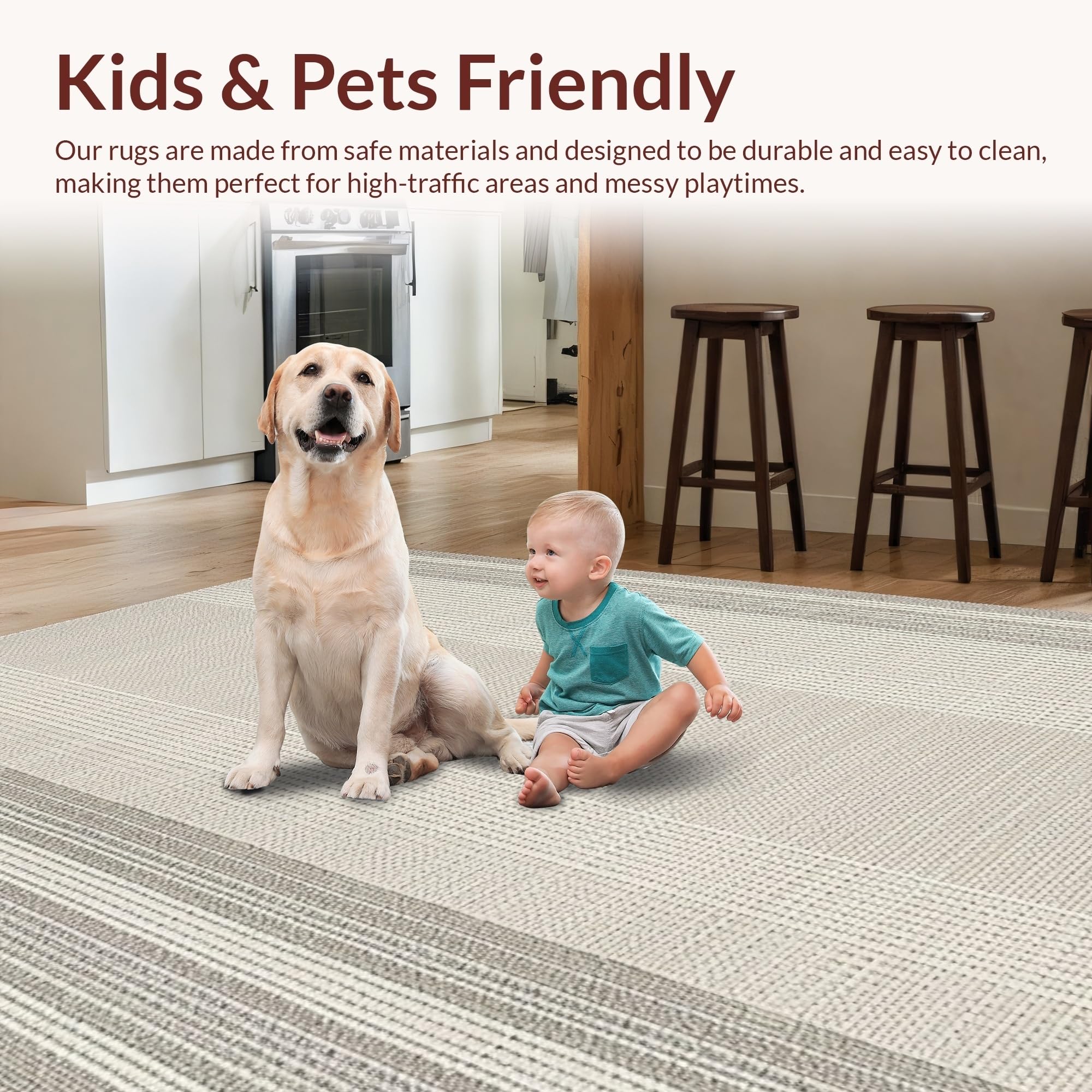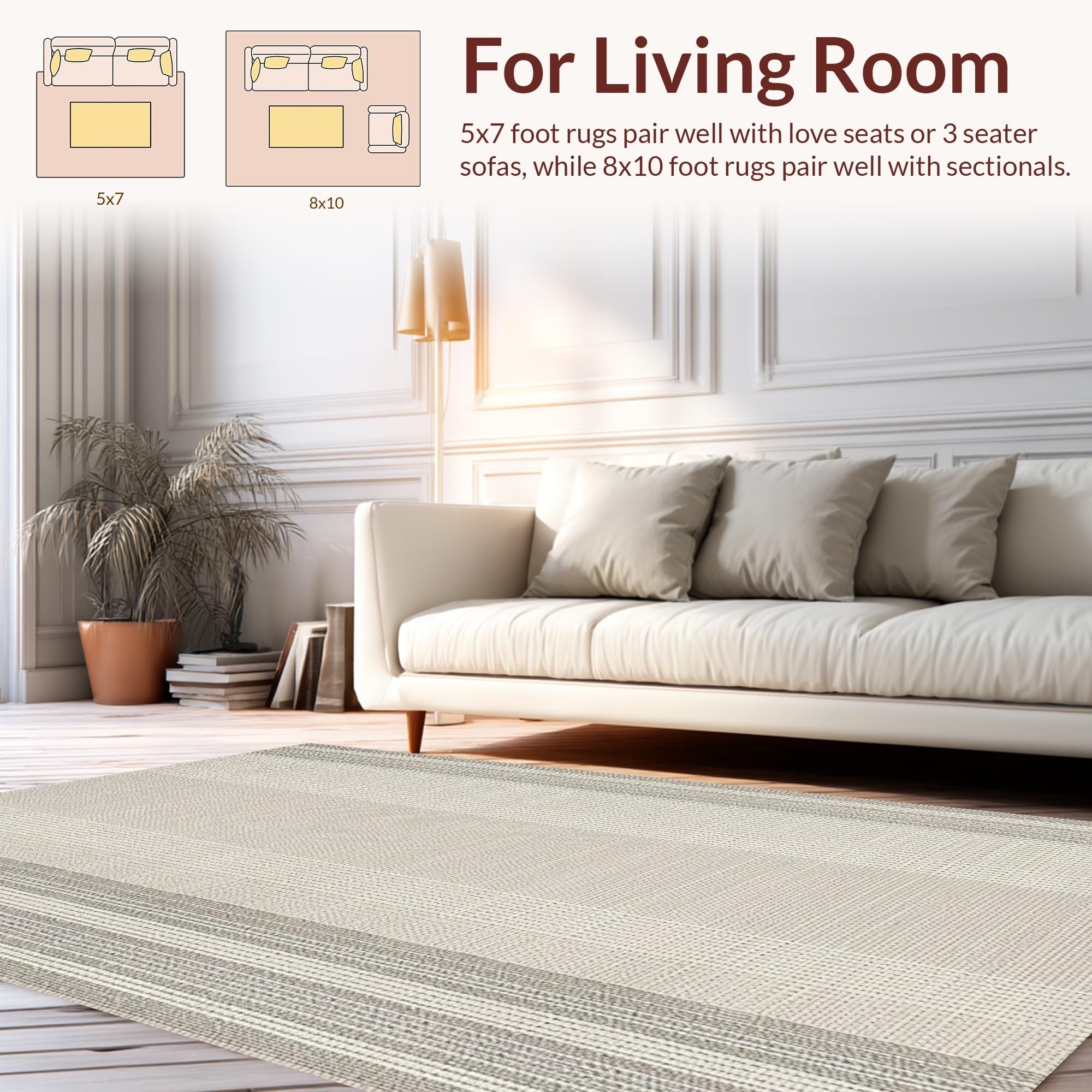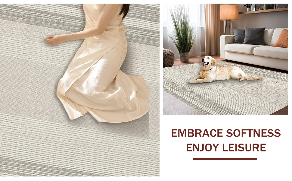 Ultra Soft Area Rug, Non Slip, Stain Resistant, Washable Area Rugs for Living Room, Bedroom, Sleek Minimalist Ogee Texture(Beige) Overview: