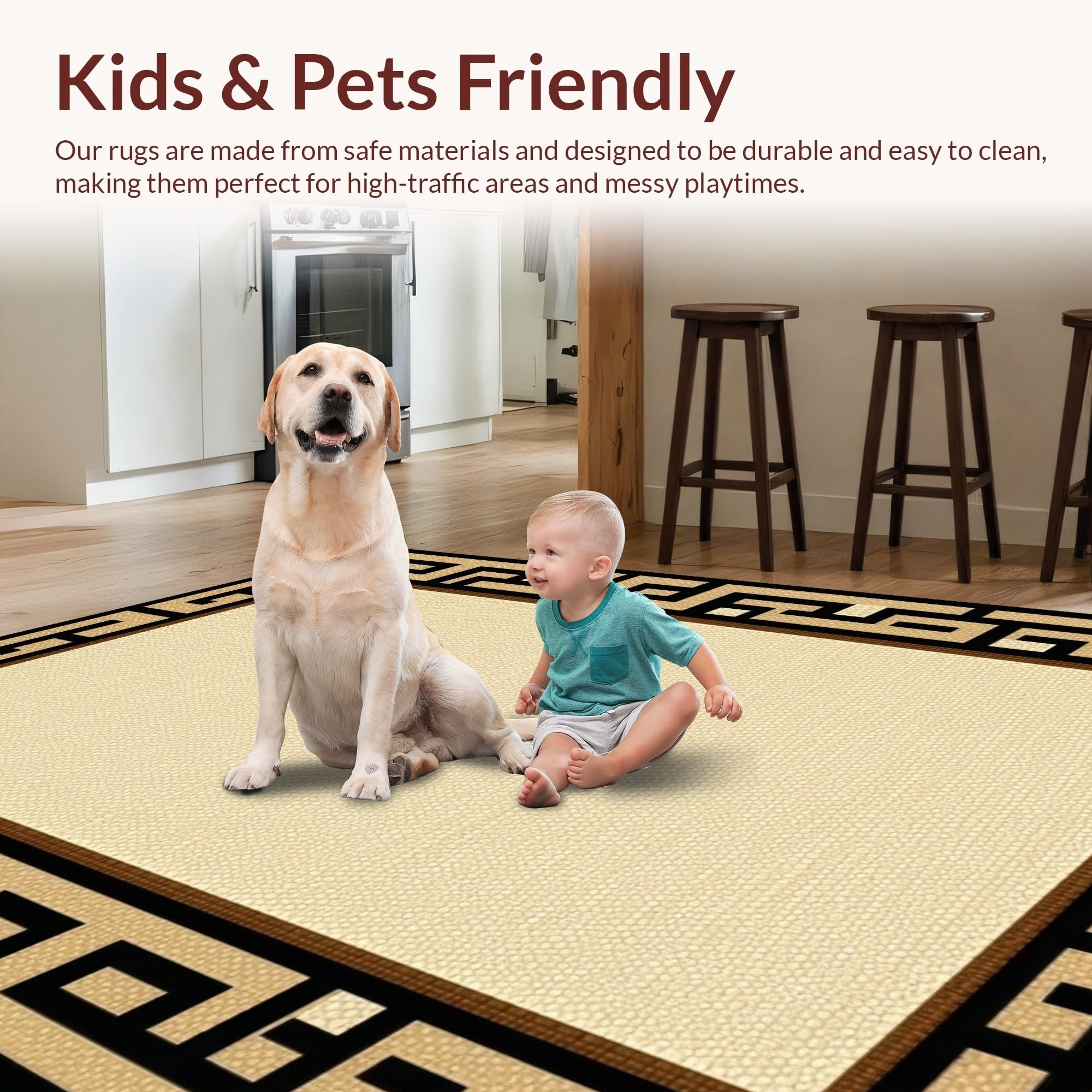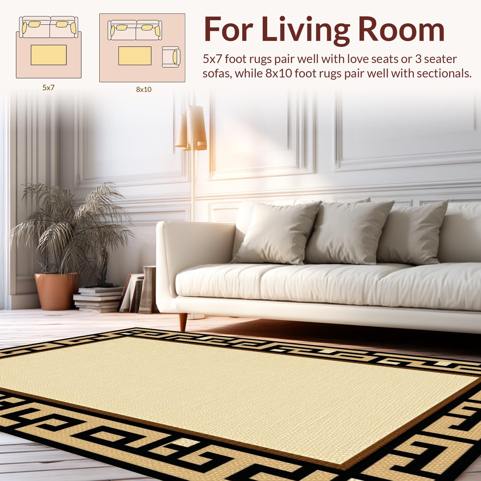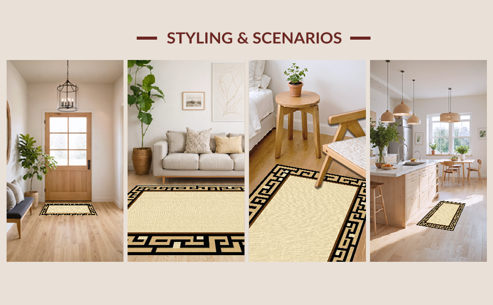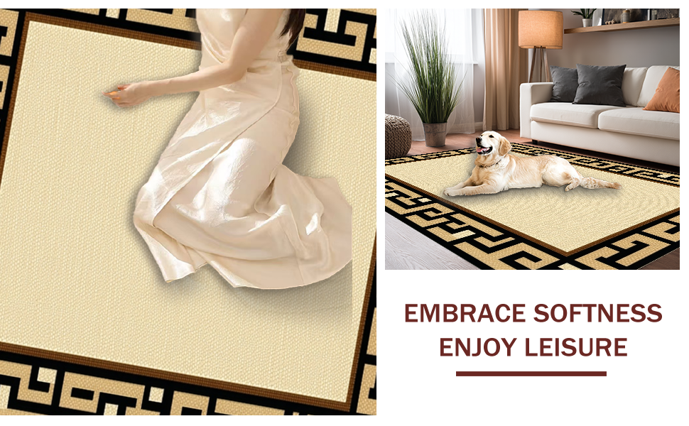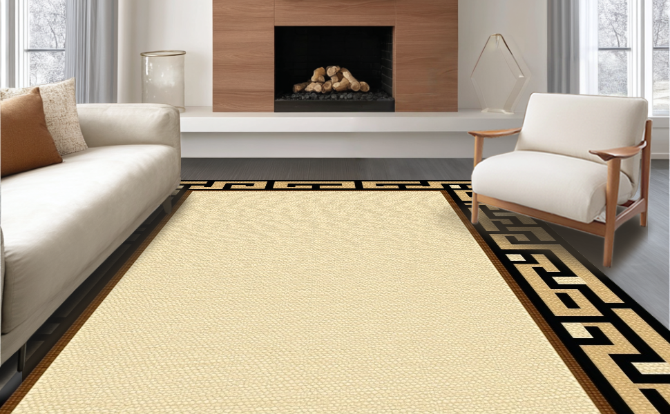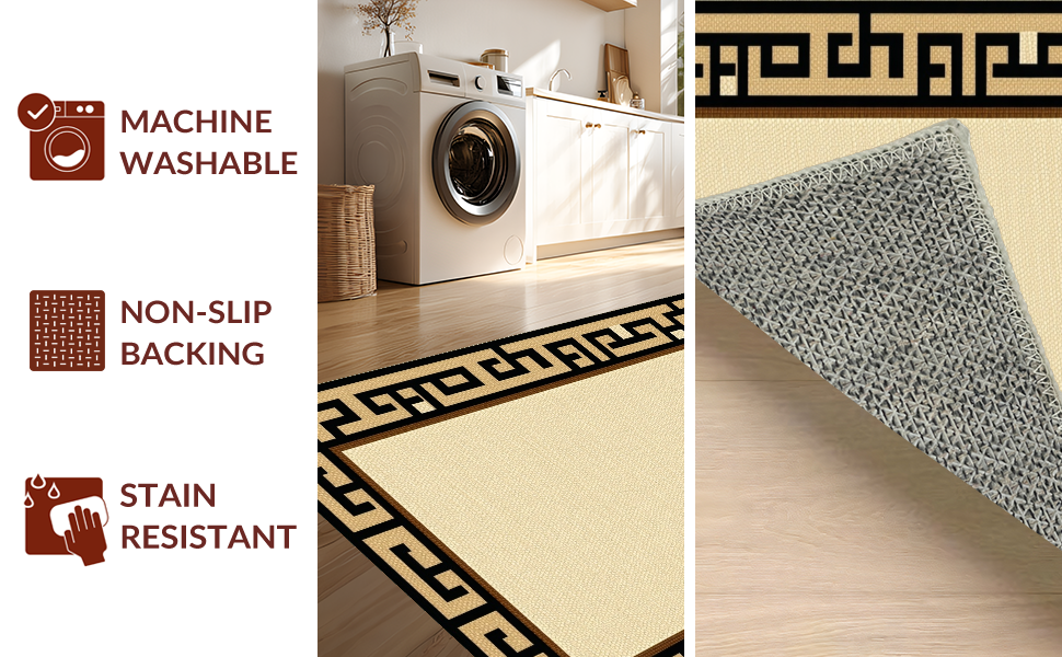 Ultra Soft Area Rug, Non Slip, Stain Resistant, Washable Area Rugs for Living Room, Bedroom, Sleek Minimalist Tiled Geometric Look(Beige) Overview: