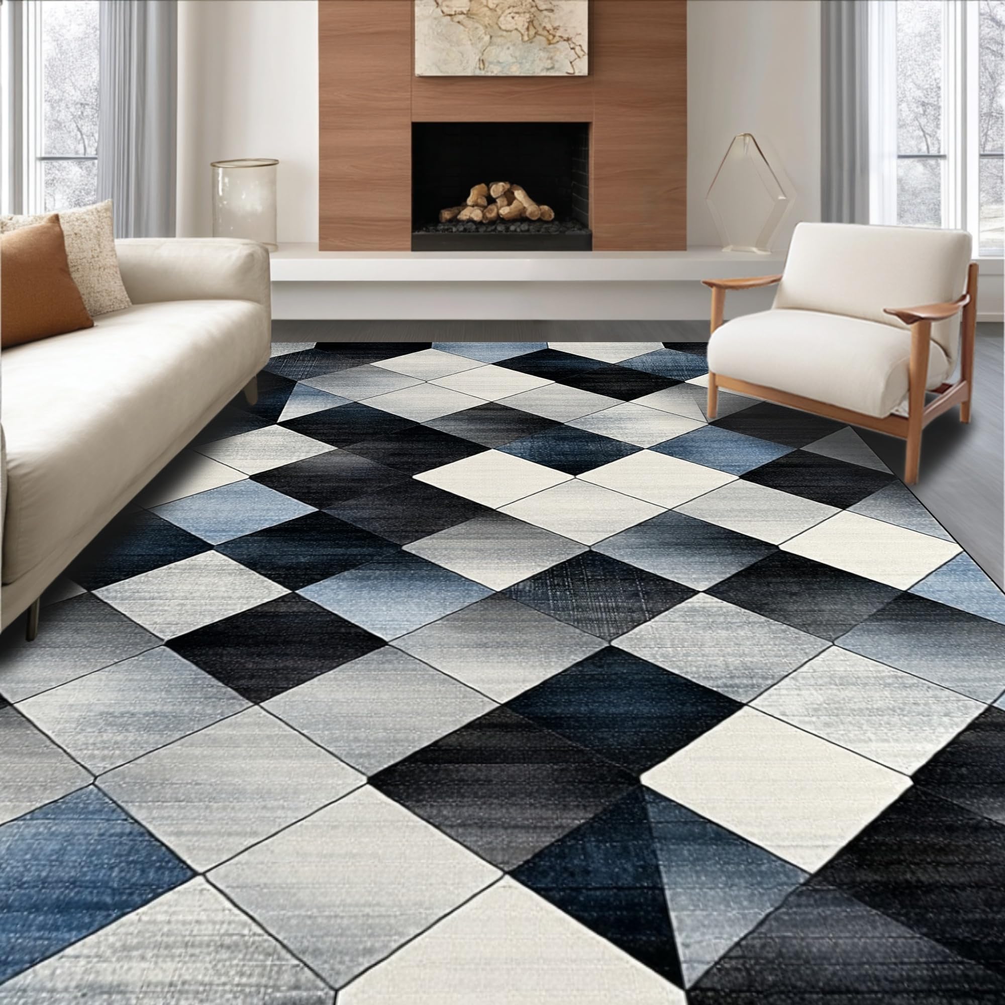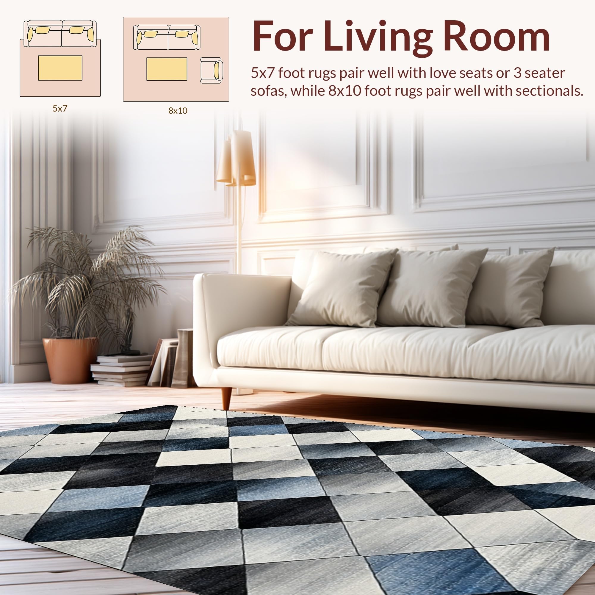 Ultra Soft Area Rug, Non Slip, Stain Resistant, Washable Area Rugs for Living Room, Bedroom, Sleek Modern Geometric Aesthetic(Gray) Overview: