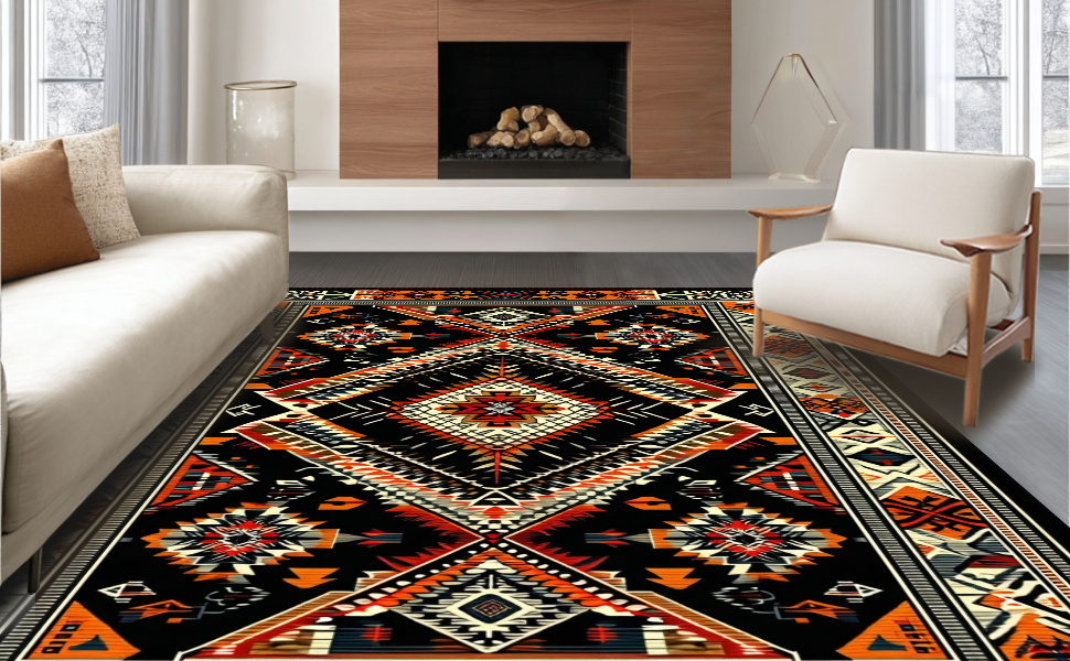 Ultra Soft Area Rug, Non Slip, Stain Resistant, Washable Area Rugs for Living Room, Bedroom, Sleek Modern Geometric Layout(Black) Overview: