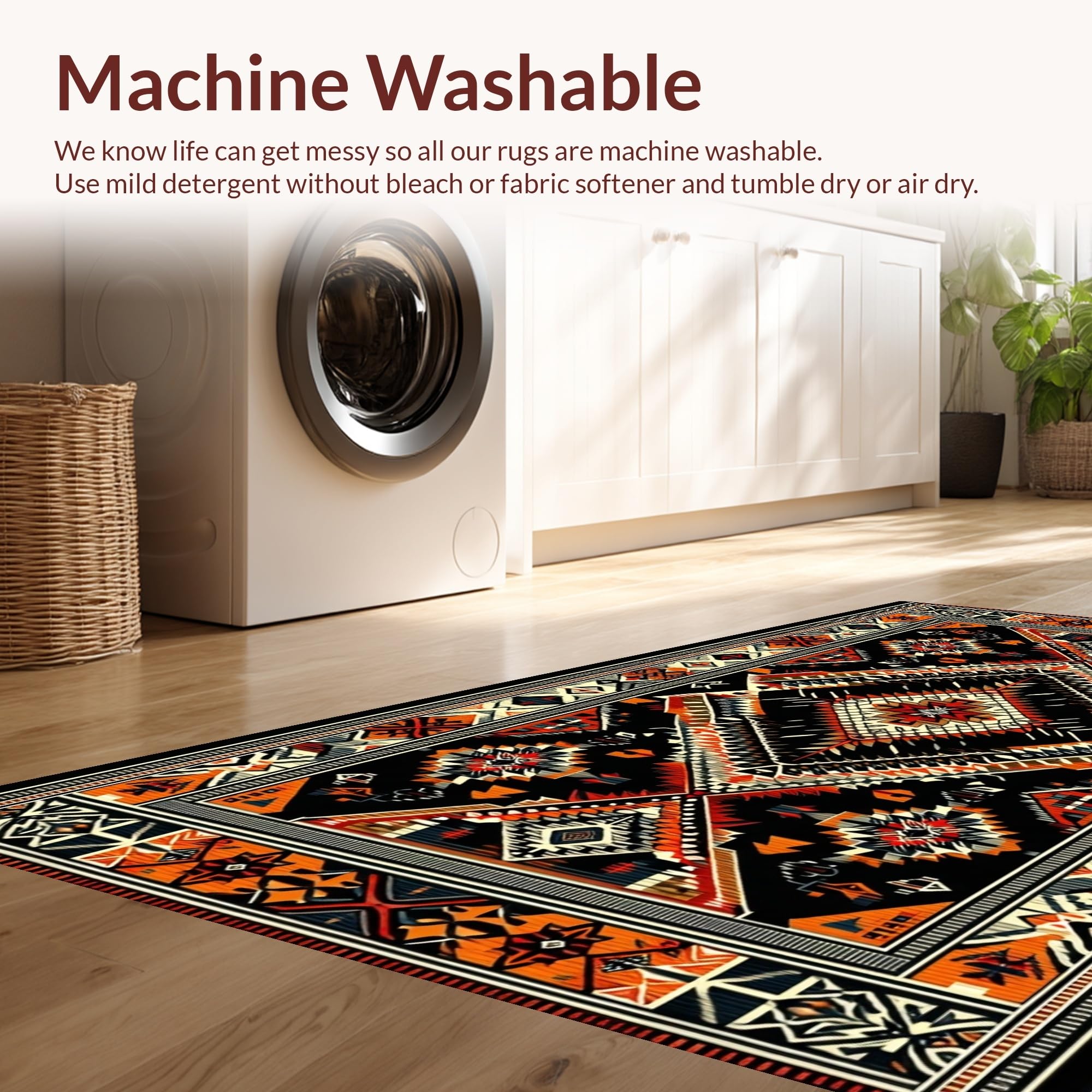 - Machine Washable: Our rugs can be easily thrown in the wash machine.