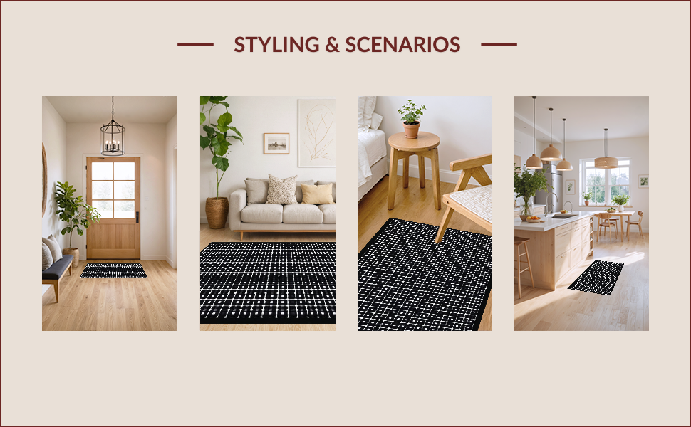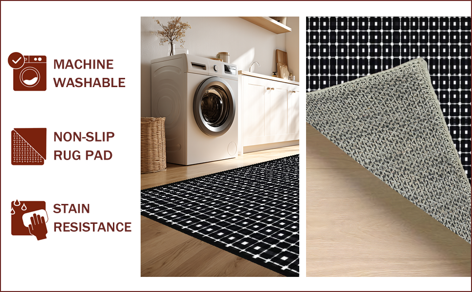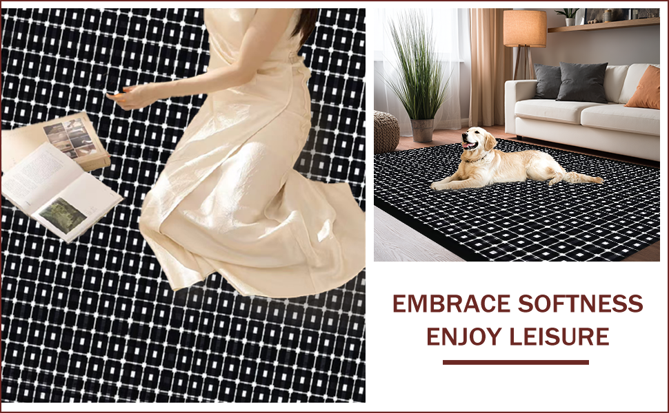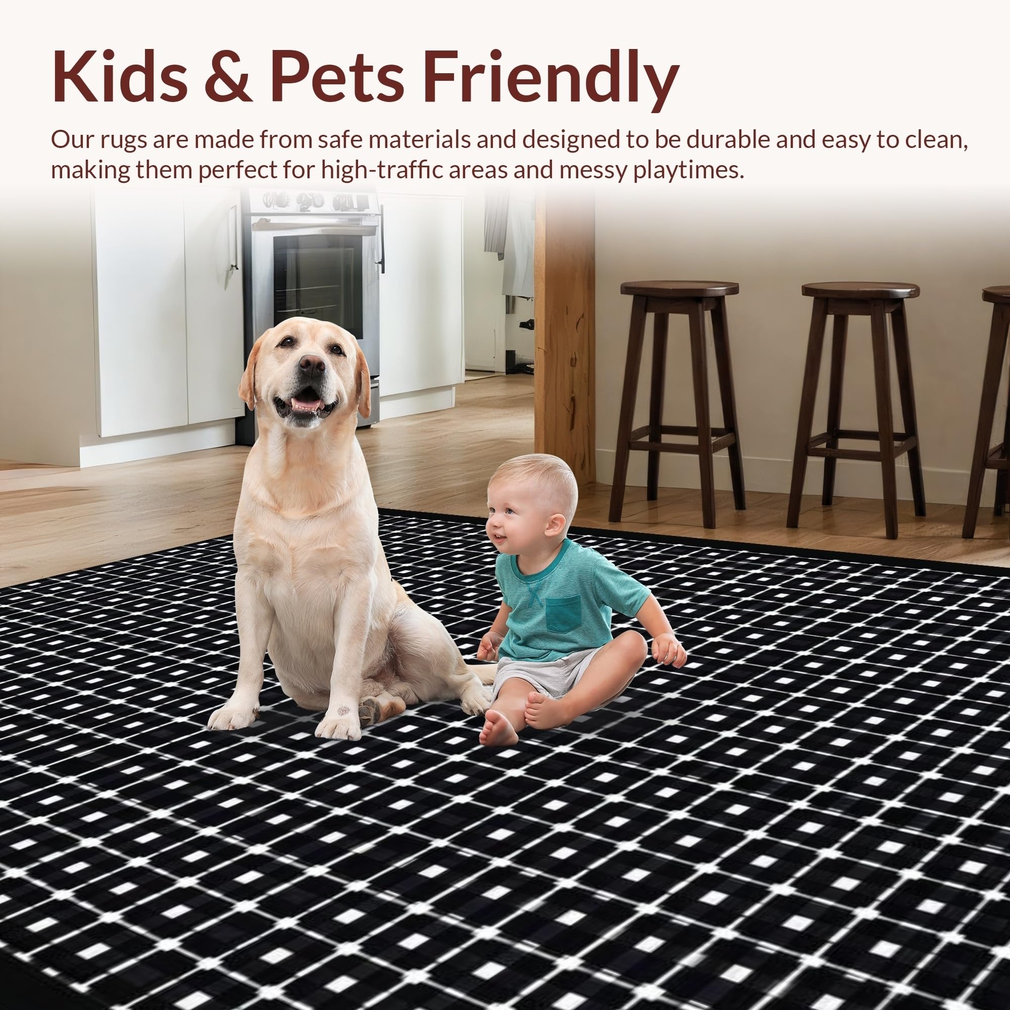Ultra Soft Area Rug, Non Slip, Stain Resistant, Washable Area Rugs for Living Room, Bedroom, Sleek Modern Geometric Motif(Black) Overview:
