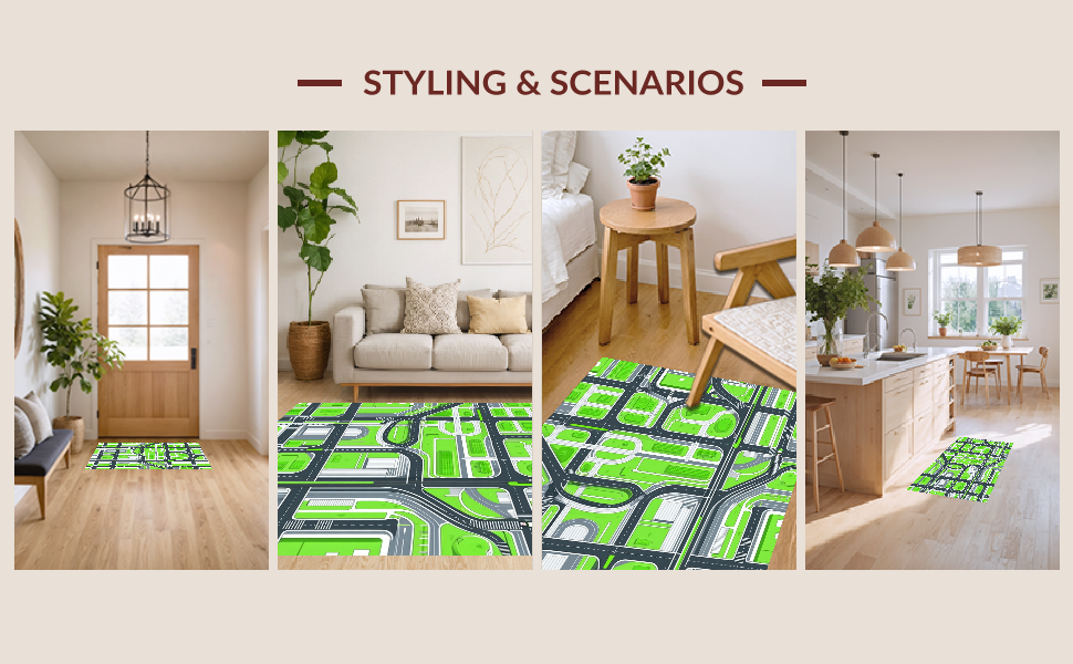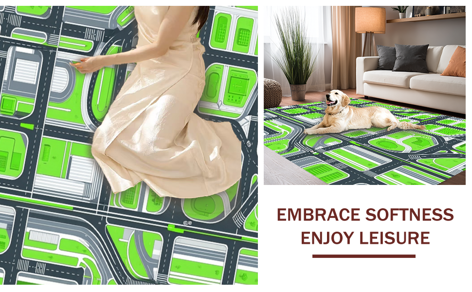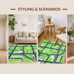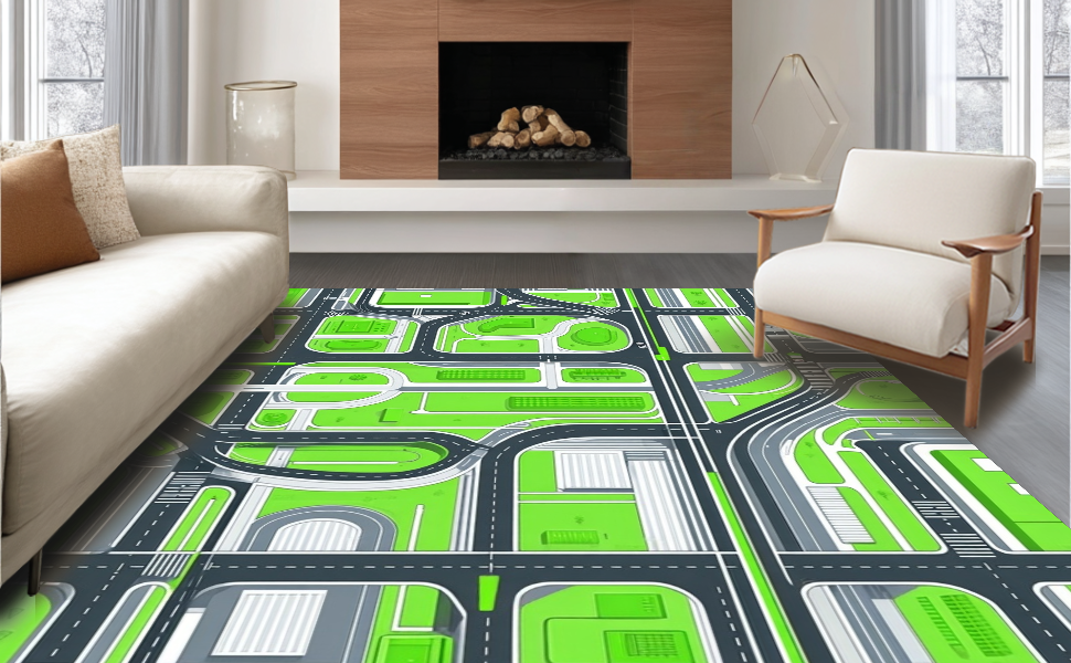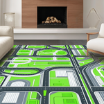 Ultra Soft Area Rug, Non Slip, Stain Resistant, Washable Area Rugs for Living Room, Bedroom, Sleek Modern Parking Garage Theme(Green) Overview: