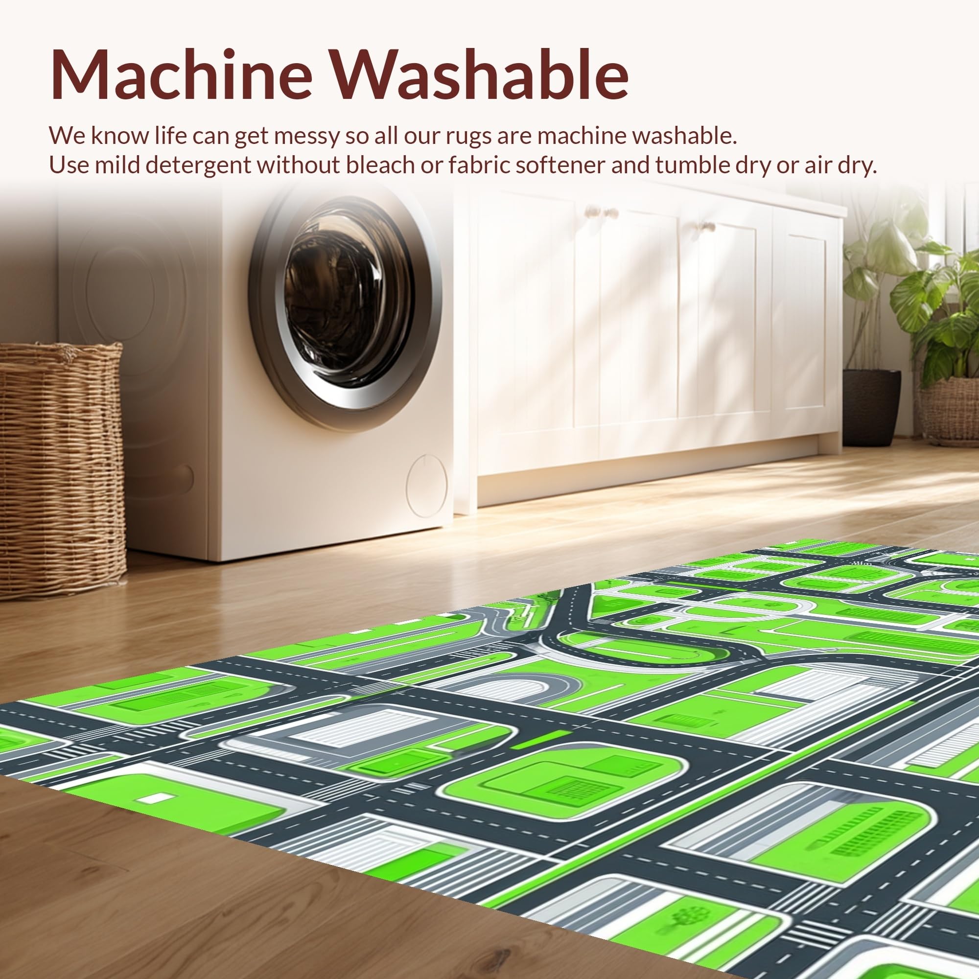 - Machine Washable: Our rugs can be easily thrown in the wash machine.