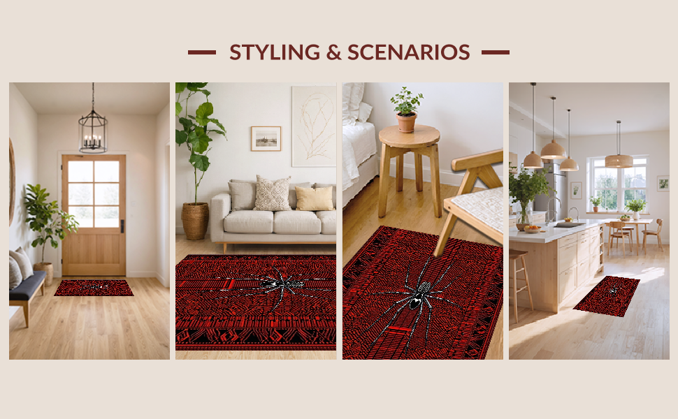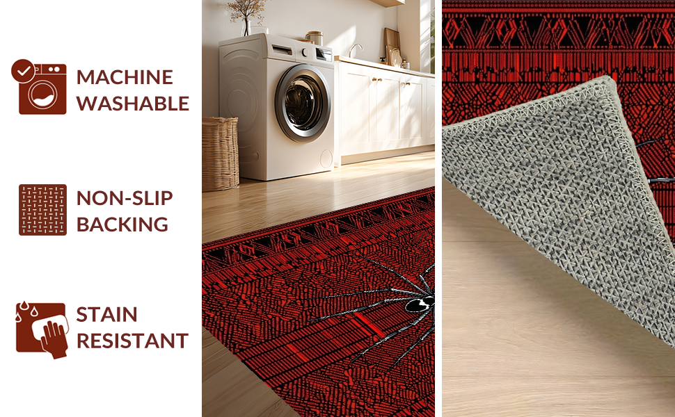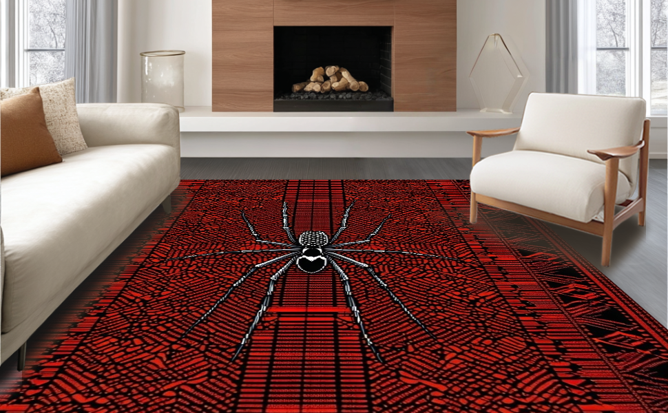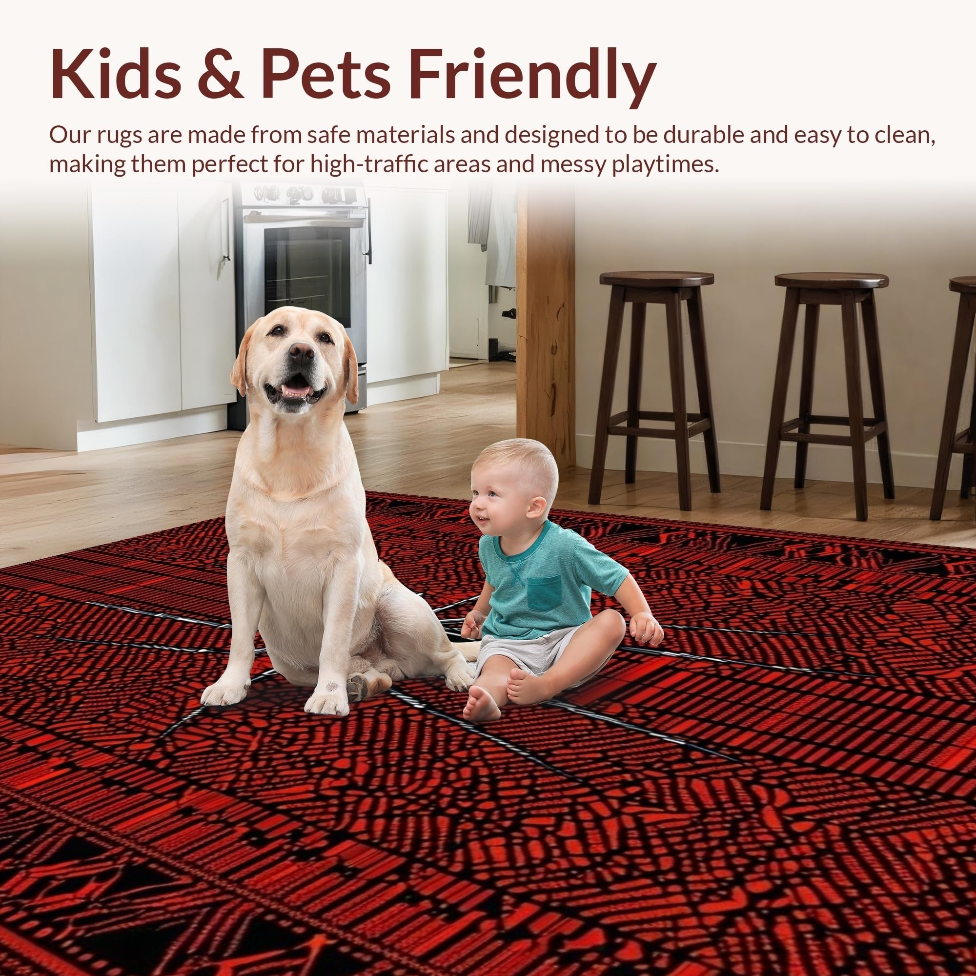 Ultra Soft Area Rug, Non Slip, Stain Resistant, Washable Area Rugs for Living Room, Bedroom, Sleek Modern Web Texture Presentation(Red) Overview: