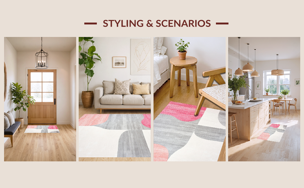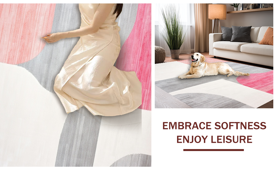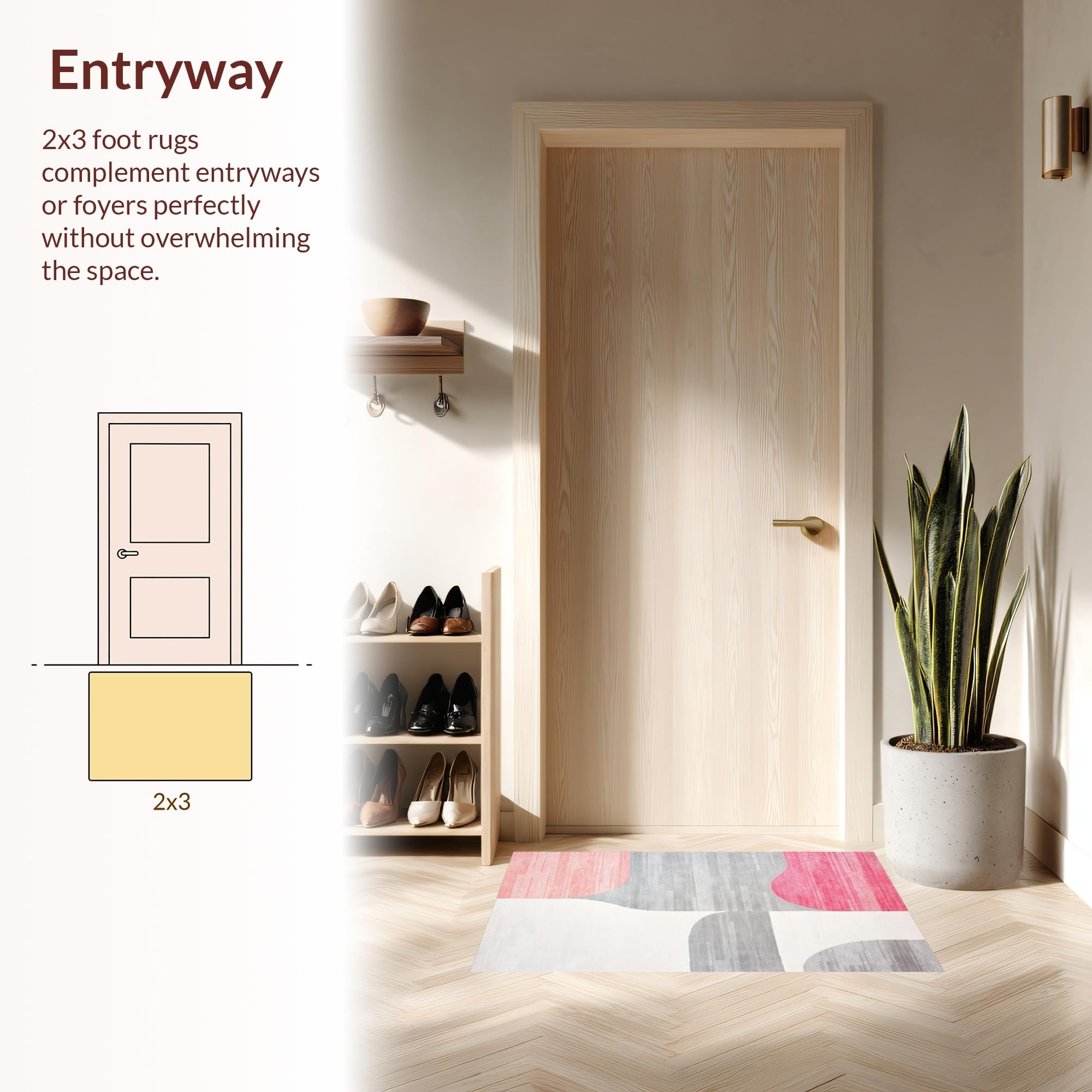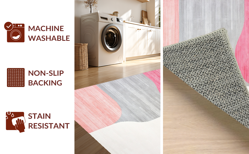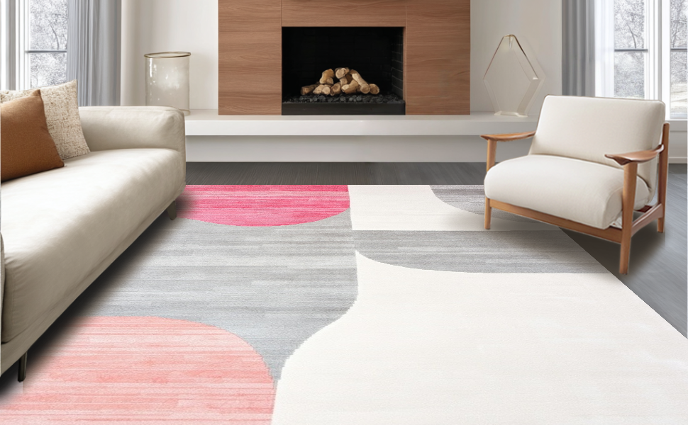 Ultra Soft Area Rug, Non Slip, Stain Resistant, Washable Area Rugs for Living Room, Bedroom, Sleek Transitional Diamond Weave(Pink) Overview: