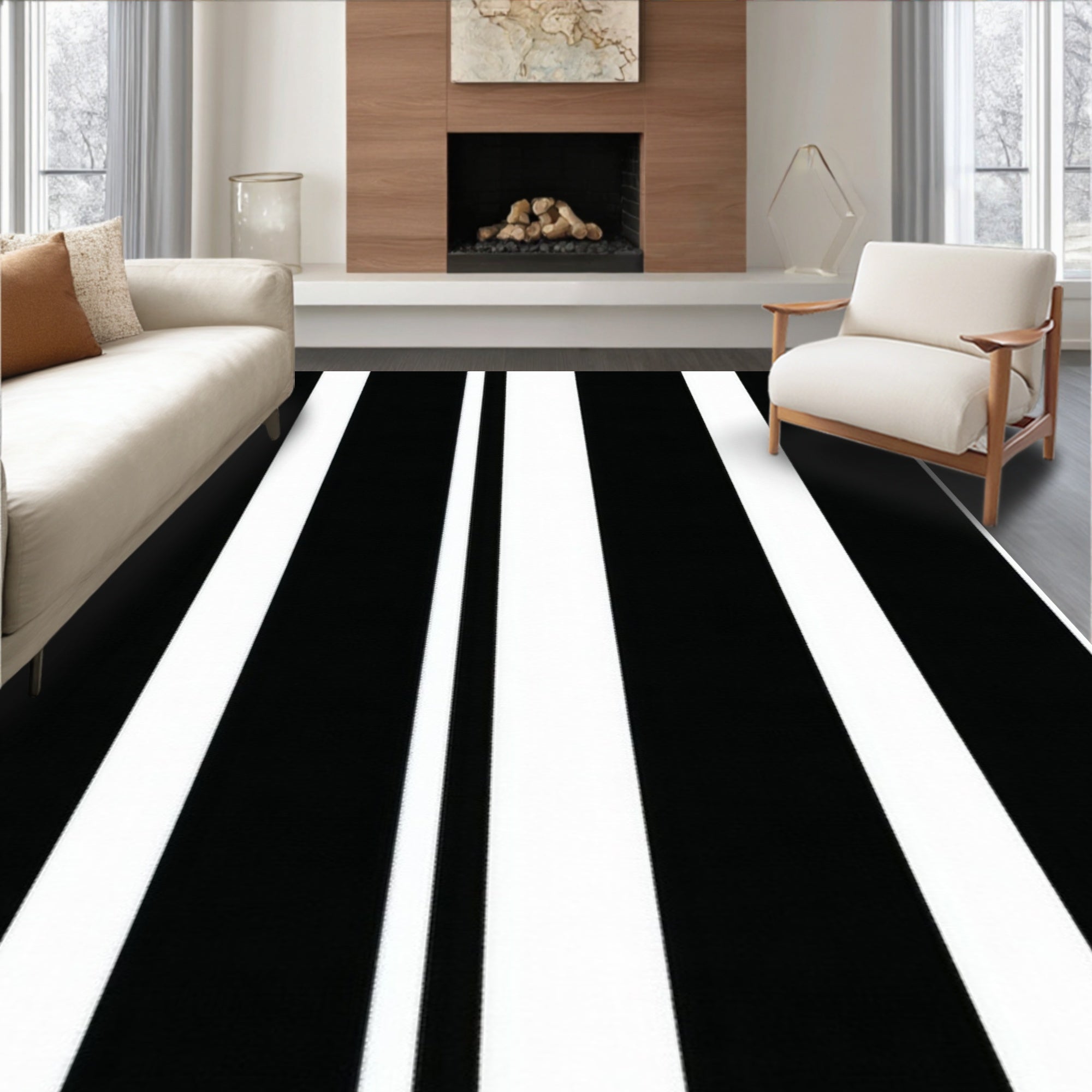 Flatwoven High Traffic Area Rug, Sleek Transitional Graphic, Non Slip, Stain Resistant, Washable Area Rugs for Living Room, Bedroom (Black) Overview: