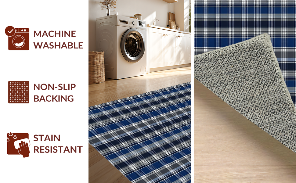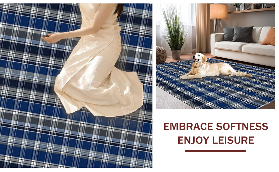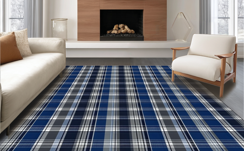 Ultra Soft Area Rug, Non Slip, Stain Resistant, Washable Area Rugs for Living Room, Bedroom, Sleek Transitional Grid Design(Blue) Overview: