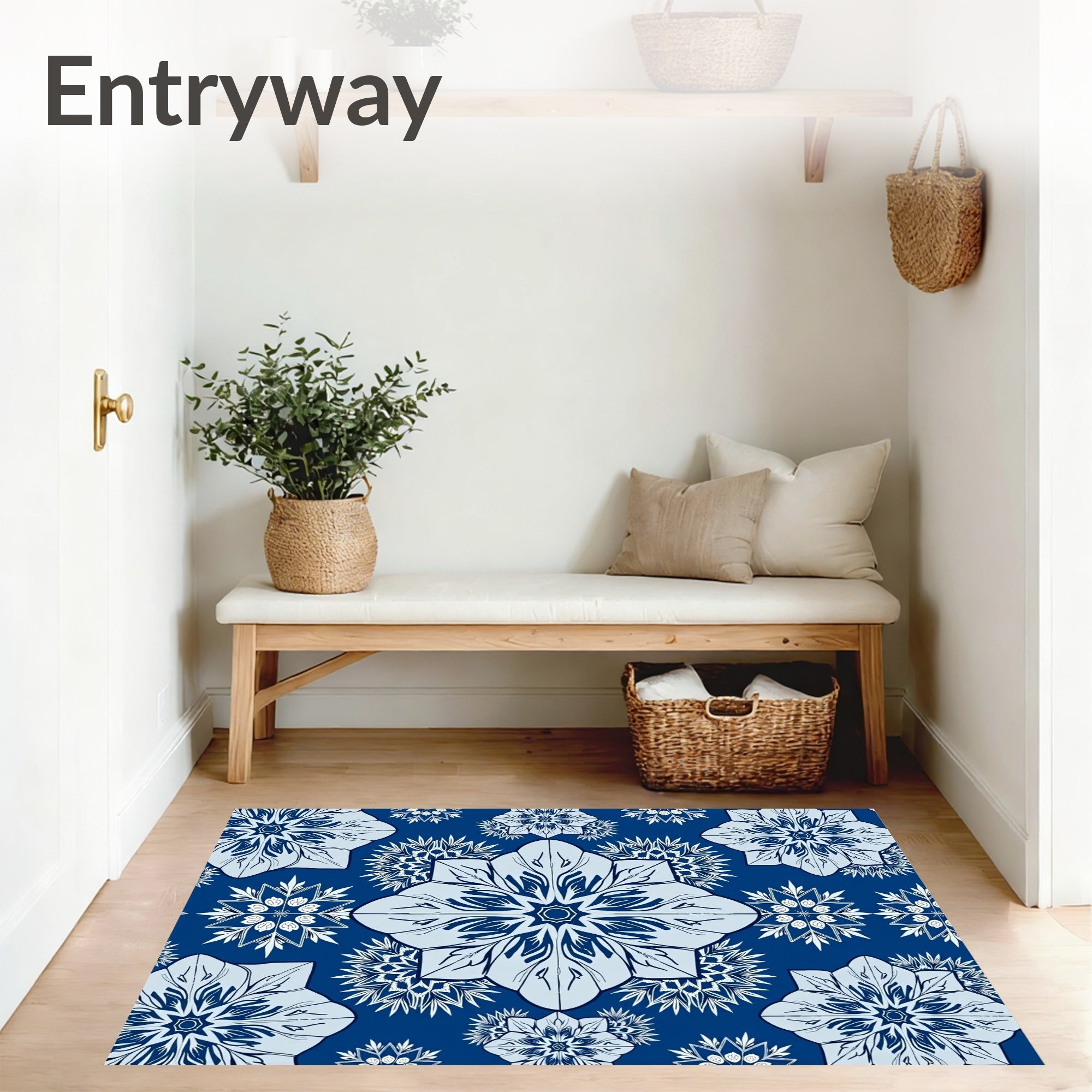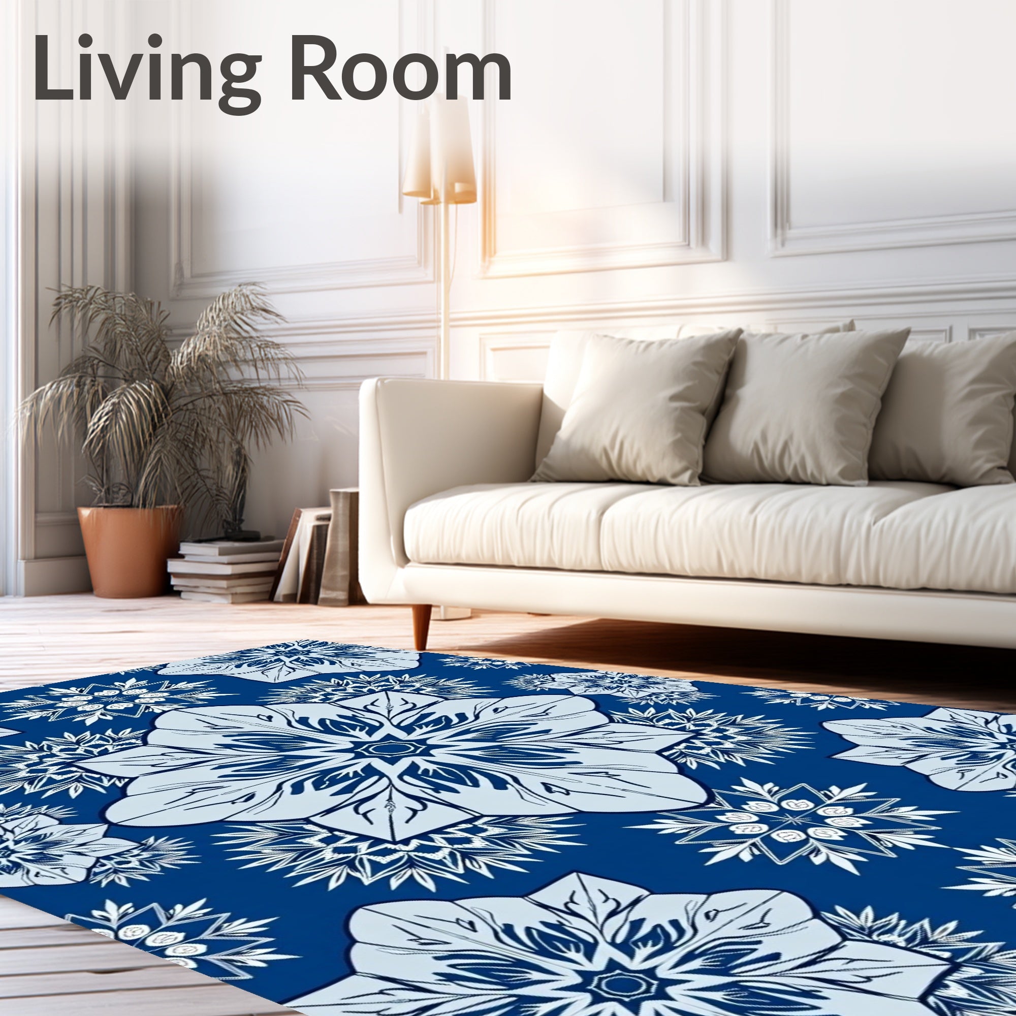 Ultra Soft Area Rug, Non Slip, Stain Resistant, Washable Area Rugs for Living Room, Bedroom, Snowflake Crystal Formation Intricate Winter Wonderland Scene(Blue) Overview: