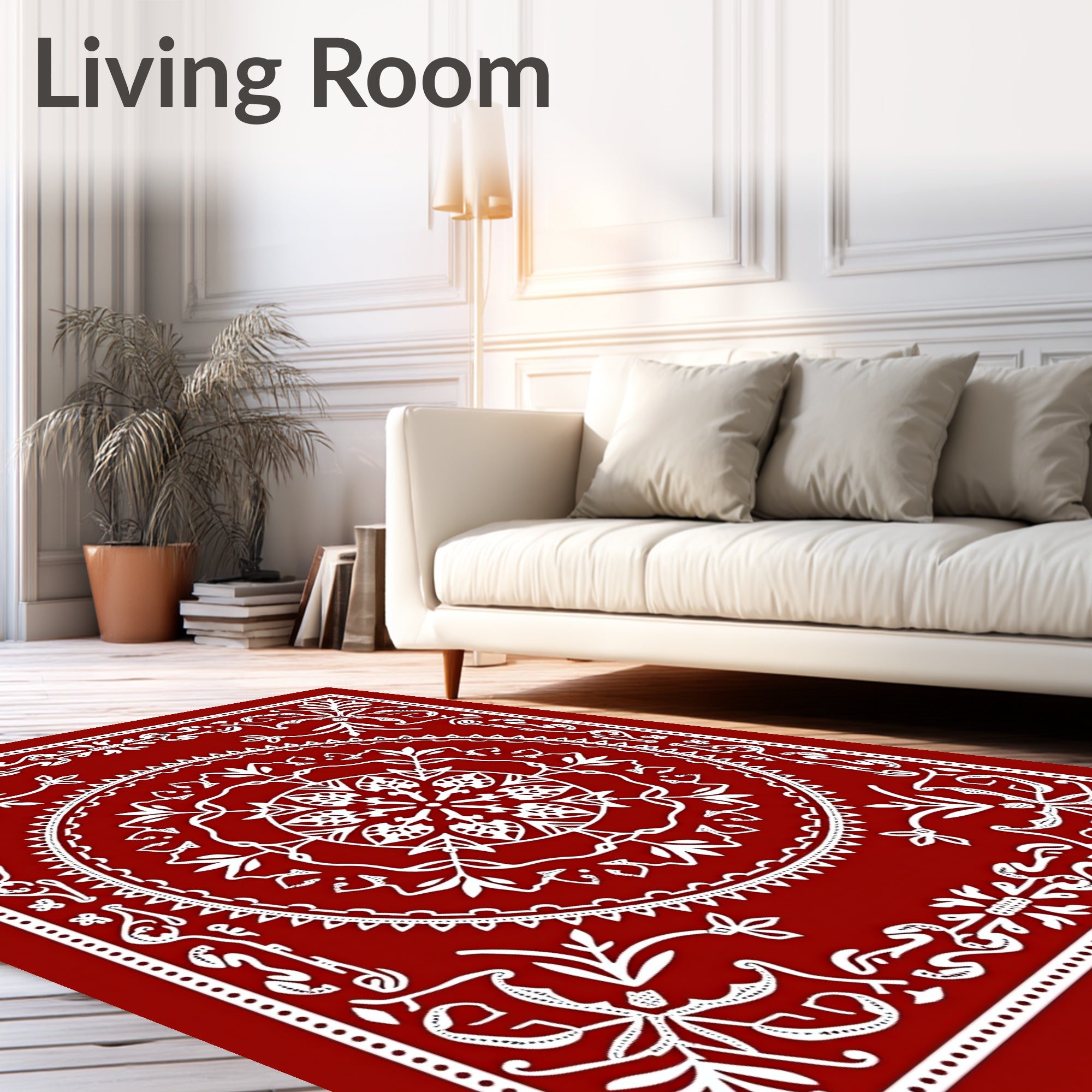 Flatwoven High Traffic Area Rug, Snowflake Holiday Festive Low Pile, Non Slip, Stain Resistant, Washable Area Rugs for Living Room, Bedroom (Red) Overview: