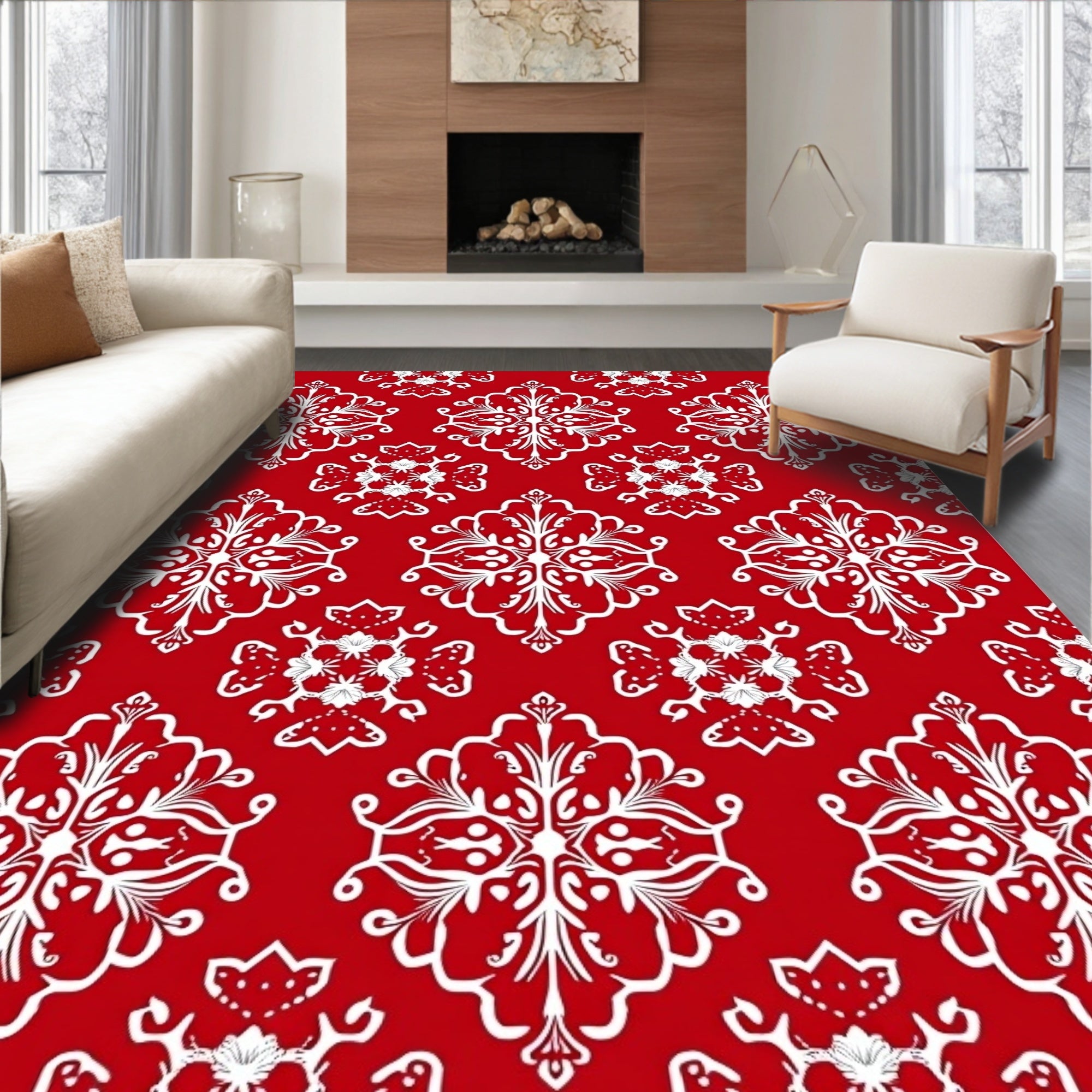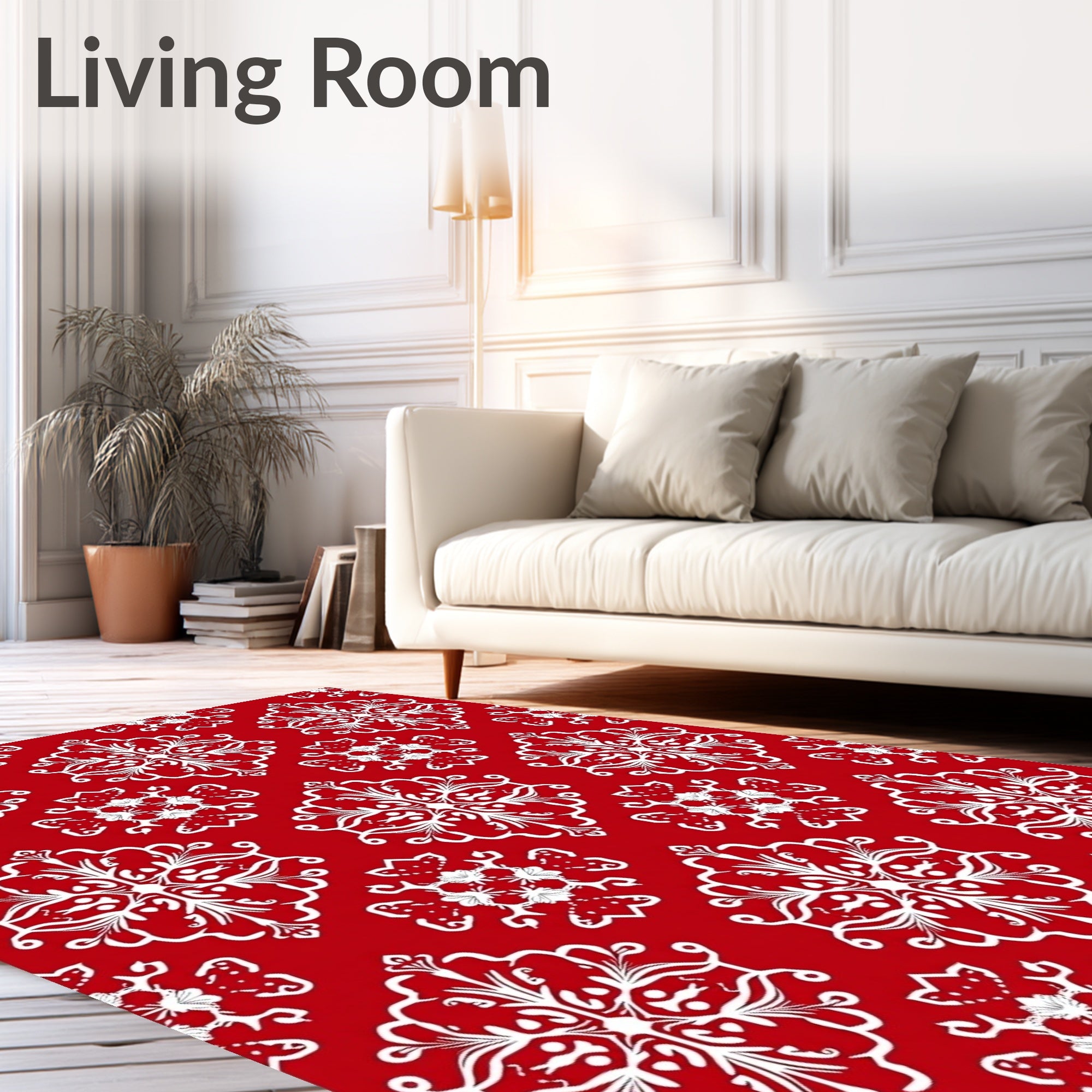 Ultra Soft Area Rug, Non Slip, Stain Resistant, Washable Area Rugs for Living Room, Bedroom, Snowflake Medley Festive Nordic Inspired Holiday Motif(Red) Overview:
