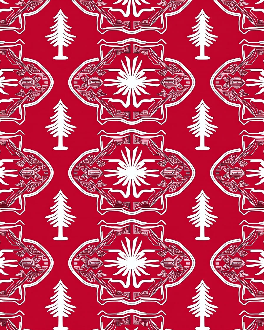 Snowflake Medley Interlocking Motif with Festive Tree Accents(Red)