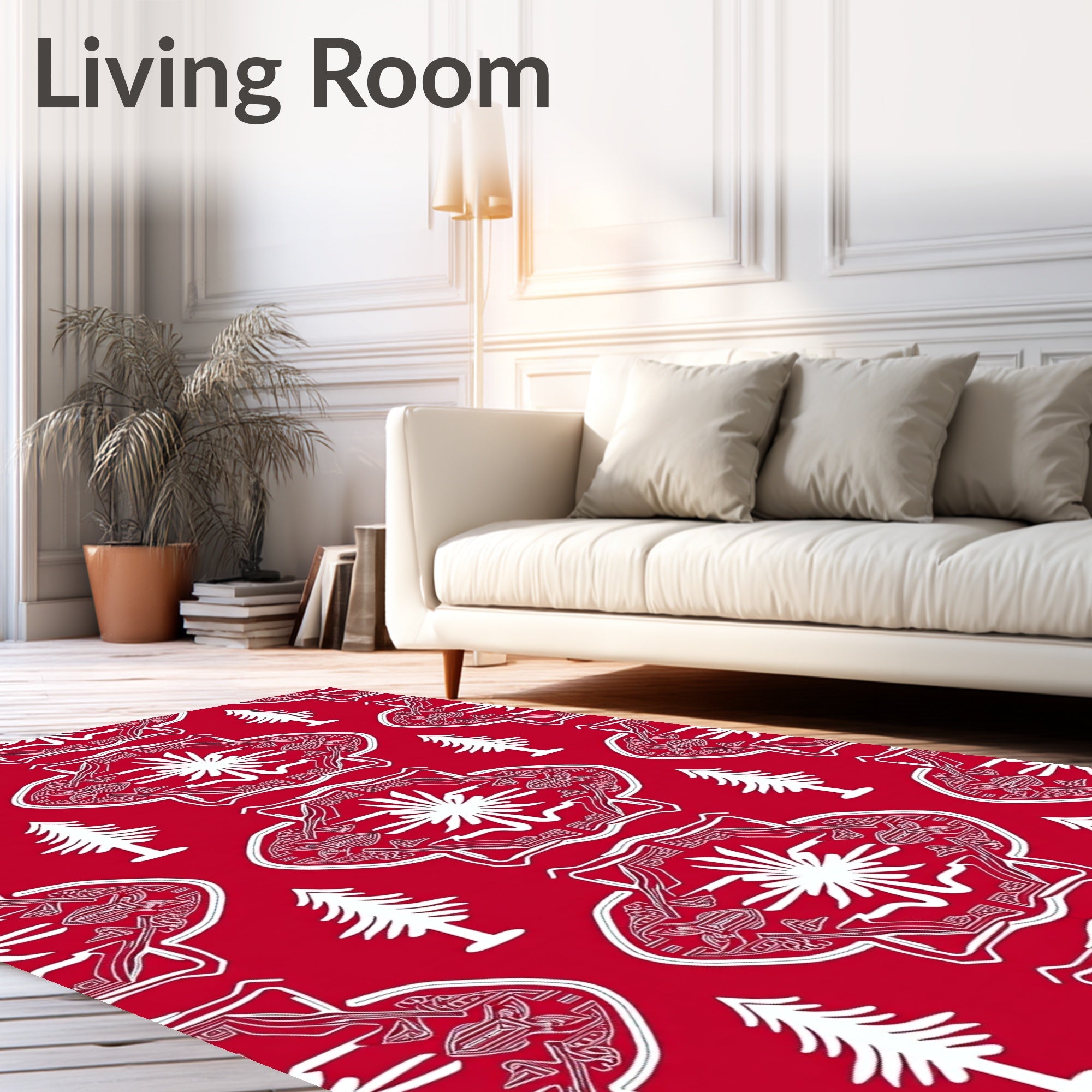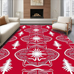 Ultra Soft Area Rug, Non Slip, Stain Resistant, Washable Area Rugs for Living Room, Bedroom, Snowflake Medley Interlocking Motif with Festive Tree Accents(Red) Overview: