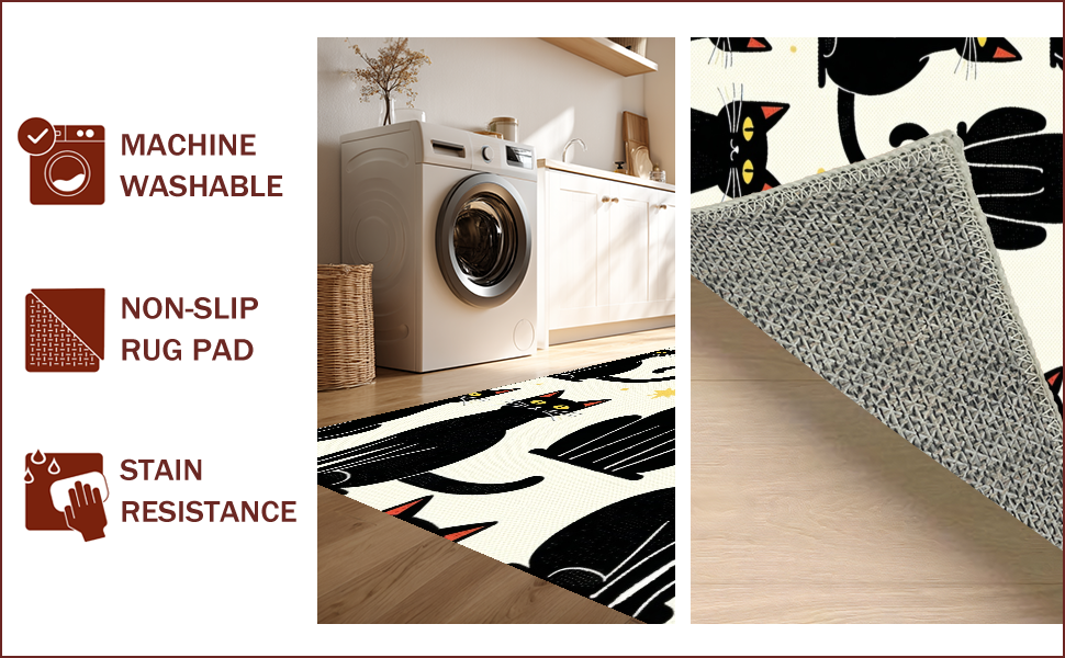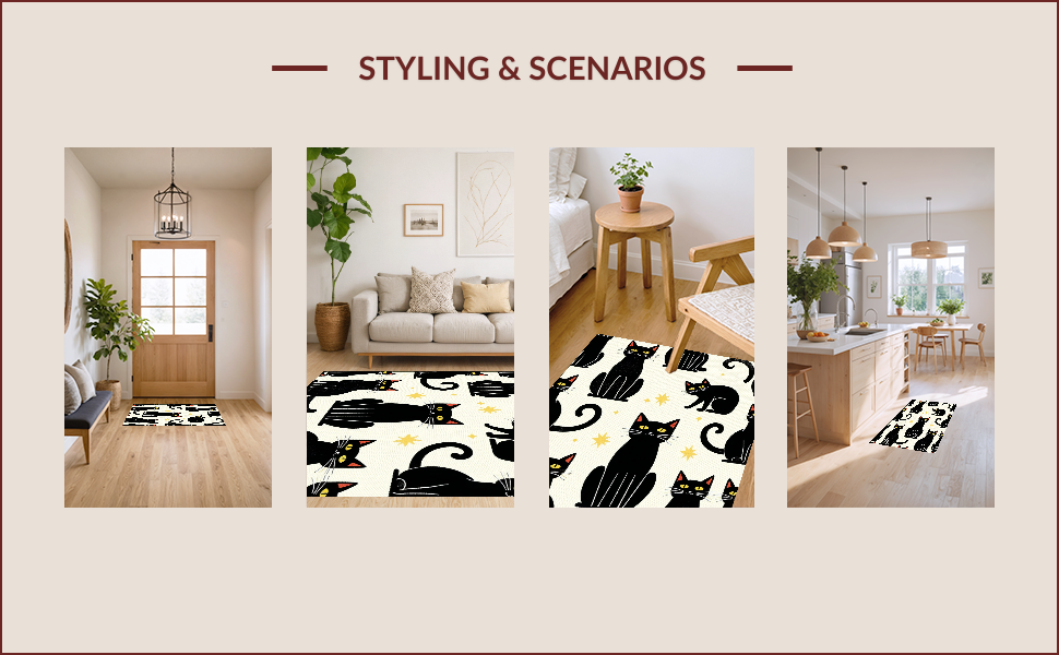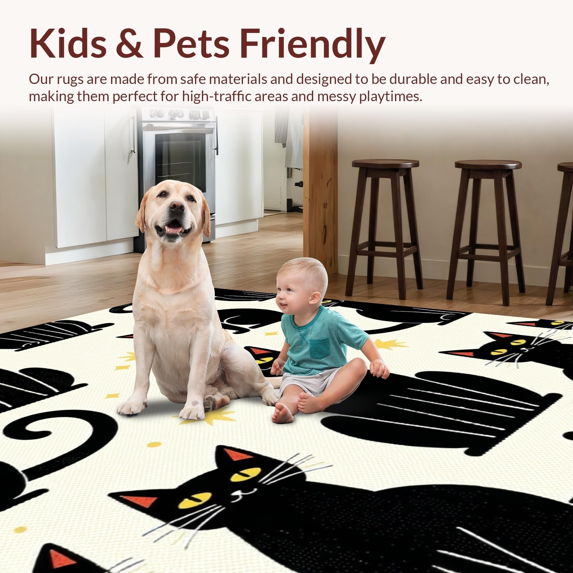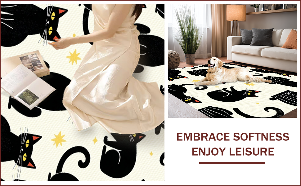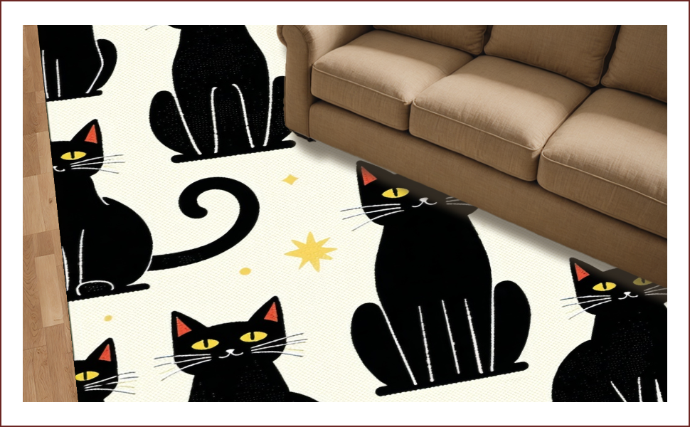 Ultra Soft Area Rug, Non Slip, Stain Resistant, Washable Area Rugs for Living Room, Bedroom, Soft Black Cat Bedroom Accent Doormat(Black) Overview: