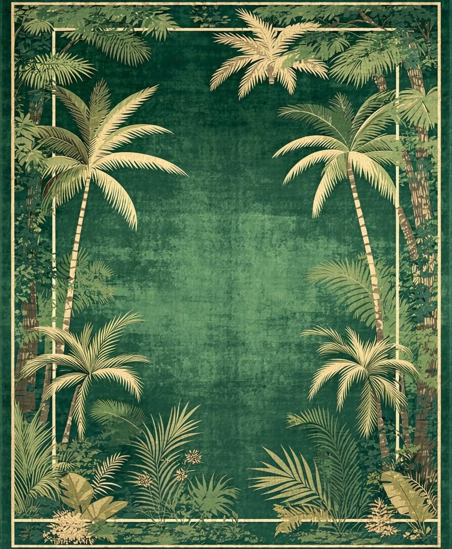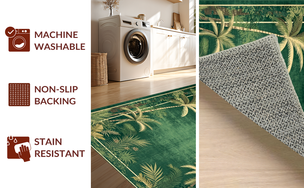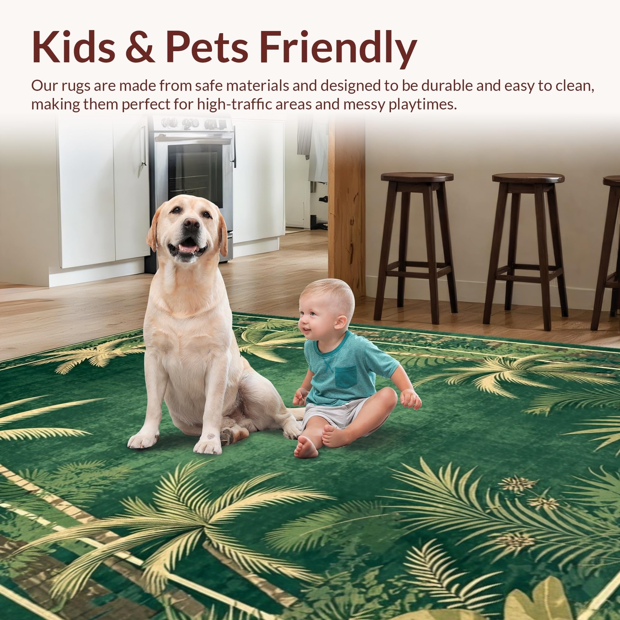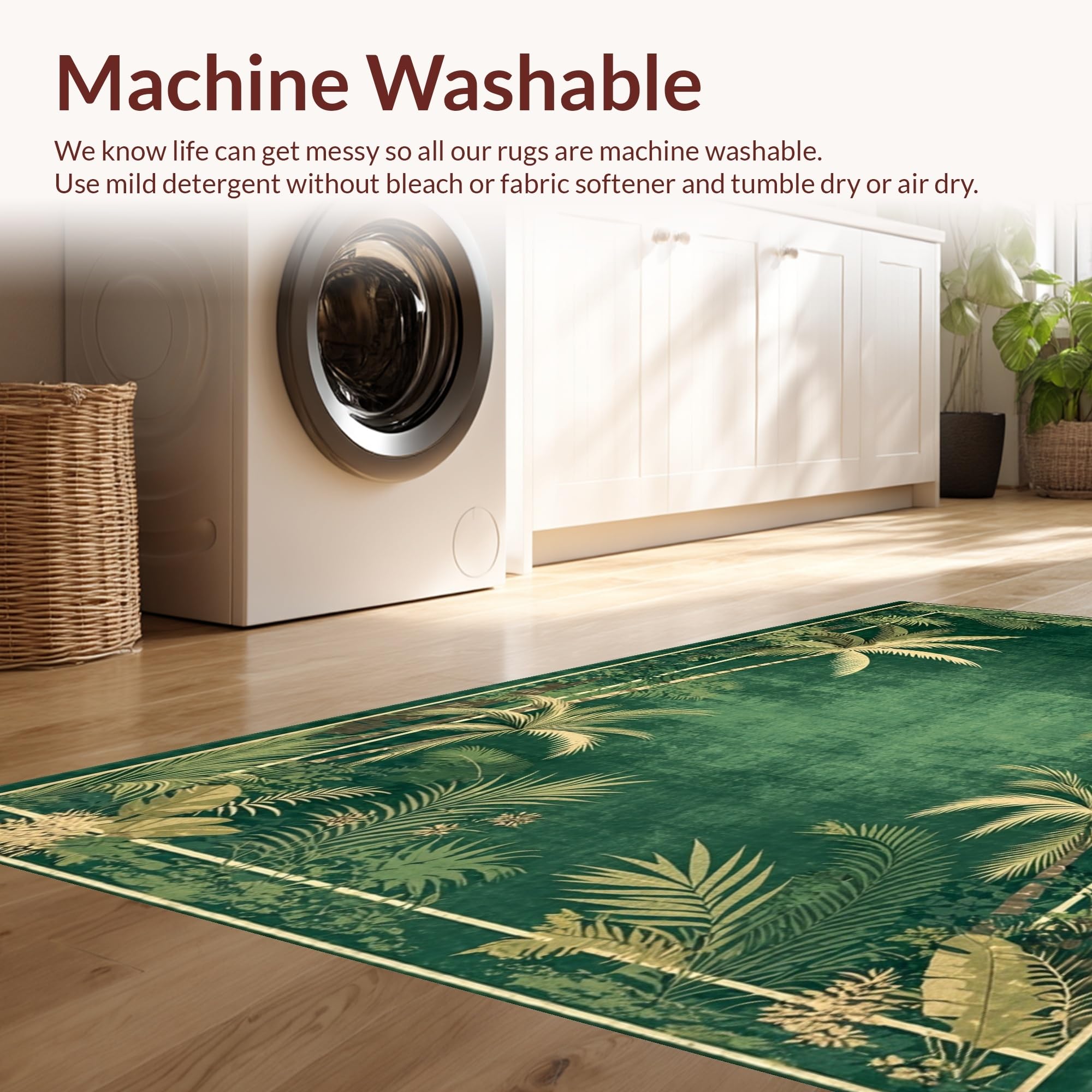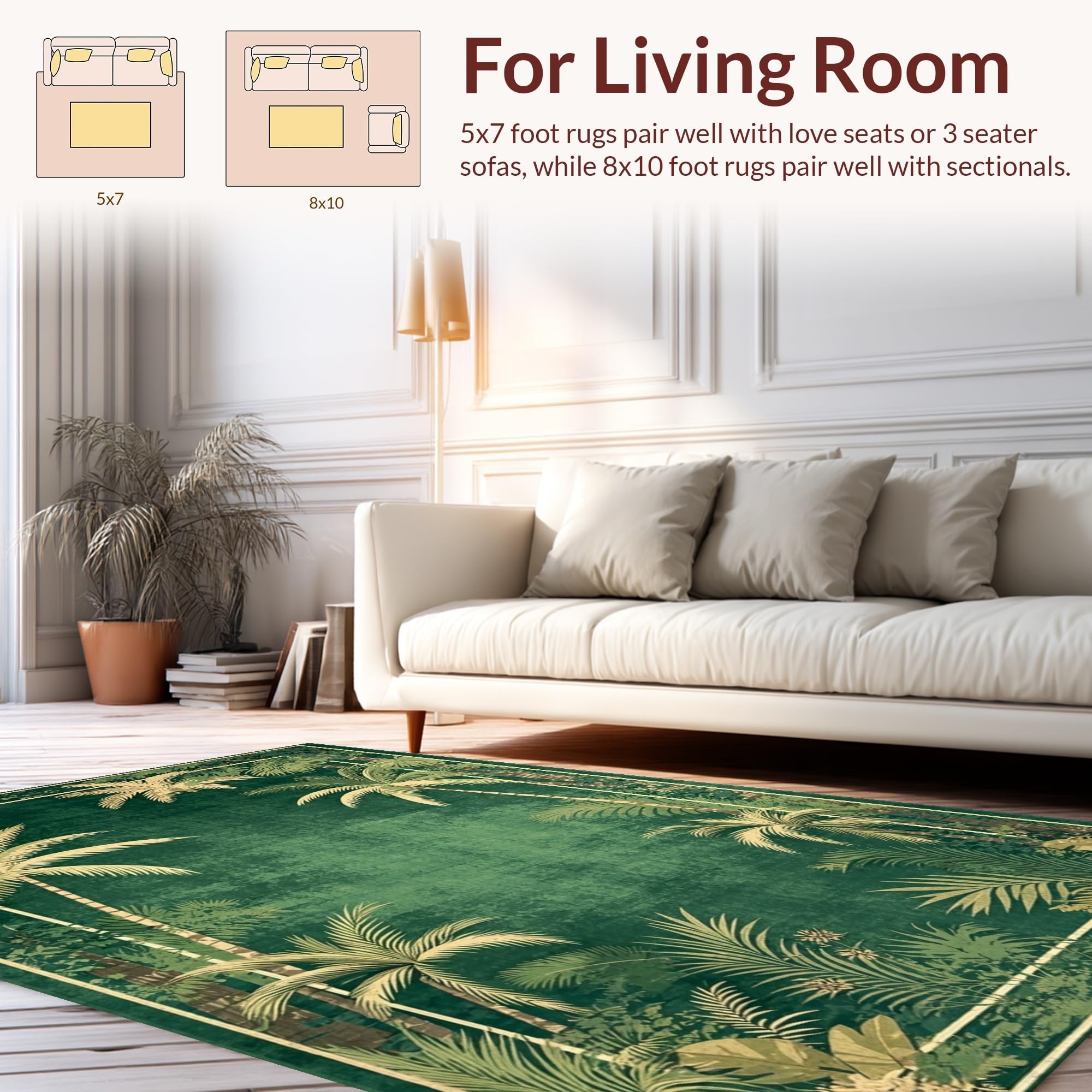 Ultra Soft Area Rug, Non Slip, Stain Resistant, Washable Area Rugs for Living Room, Bedroom, Soft Botanical Vintage Charm(Green) Overview: