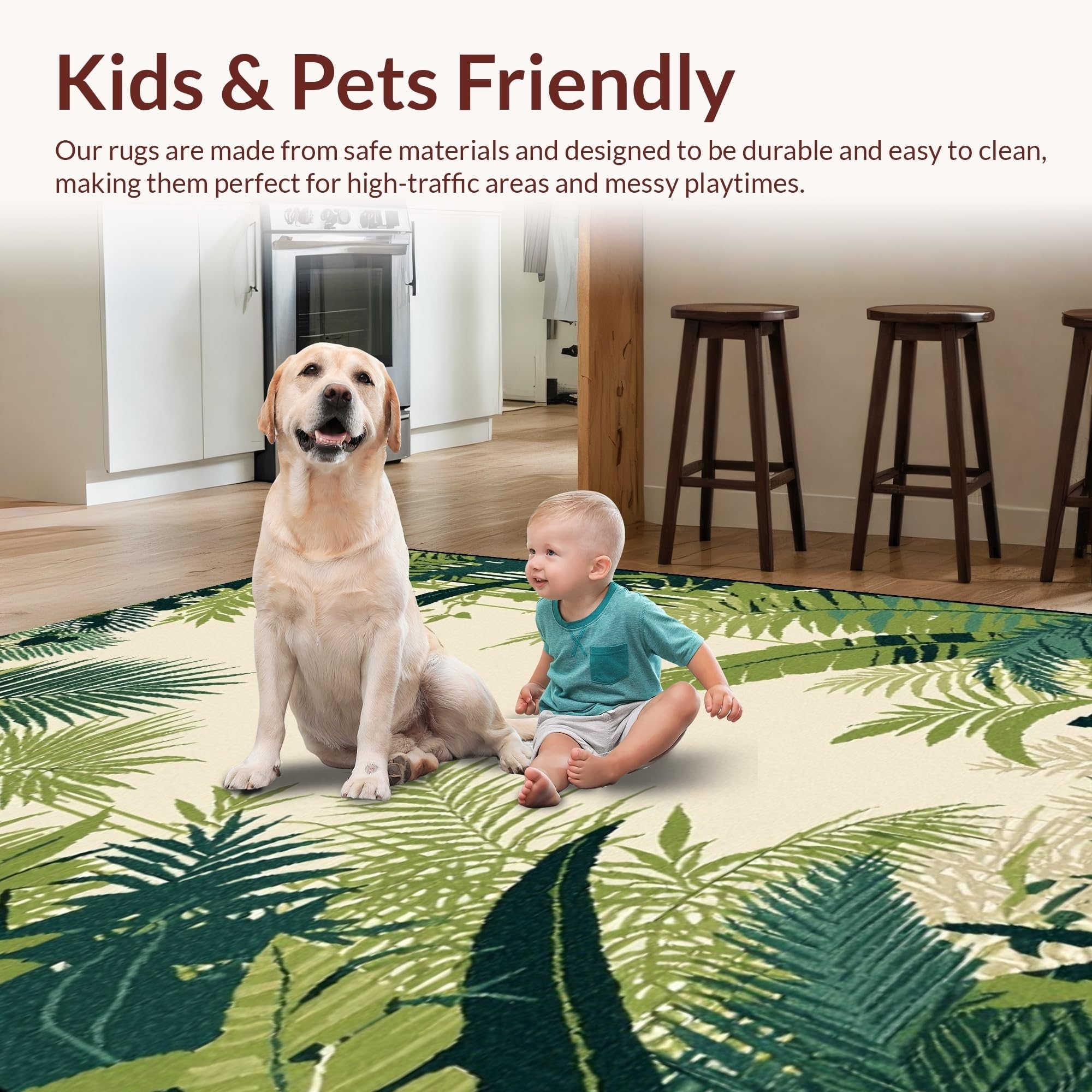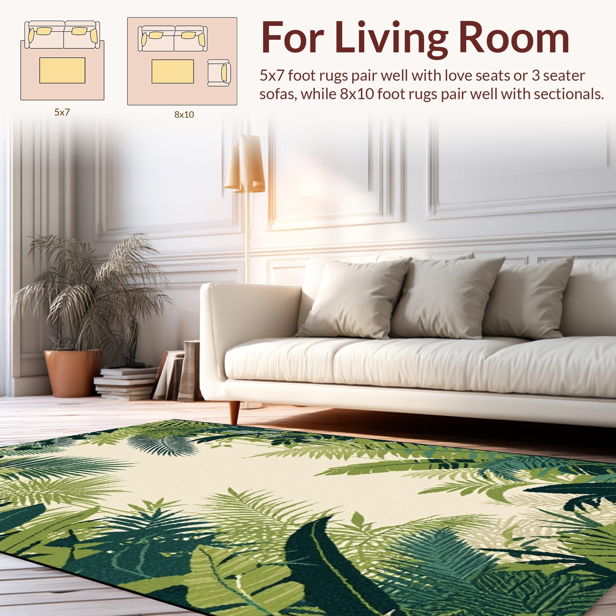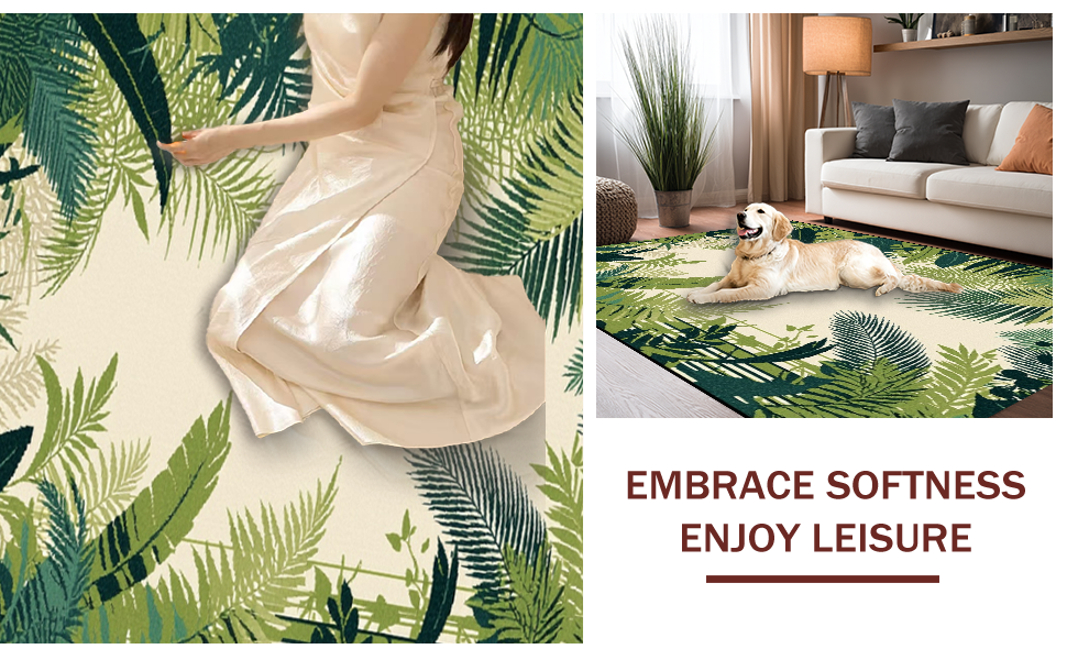 Ultra Soft Area Rug, Non Slip, Stain Resistant, Washable Area Rugs for Living Room, Bedroom, Soft Cozy Jungle Aesthetic(Green) Overview:
