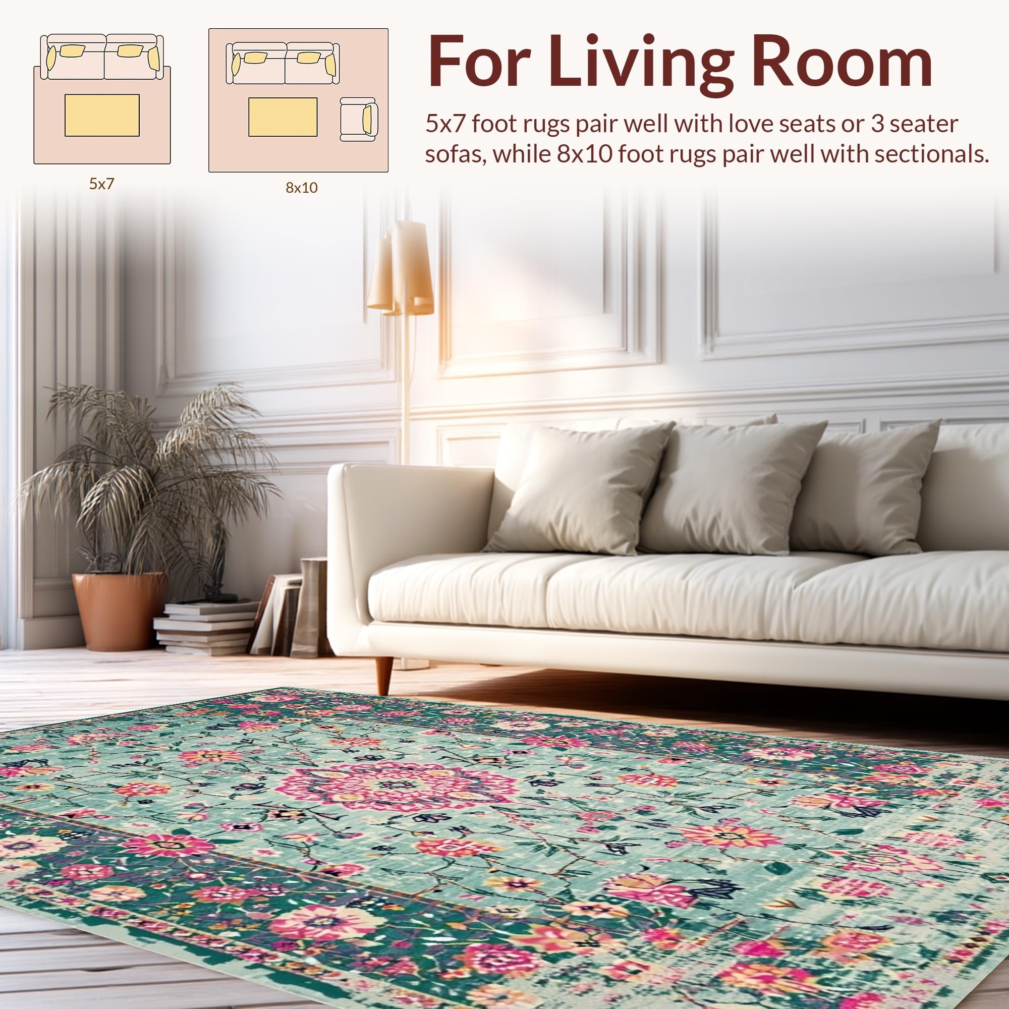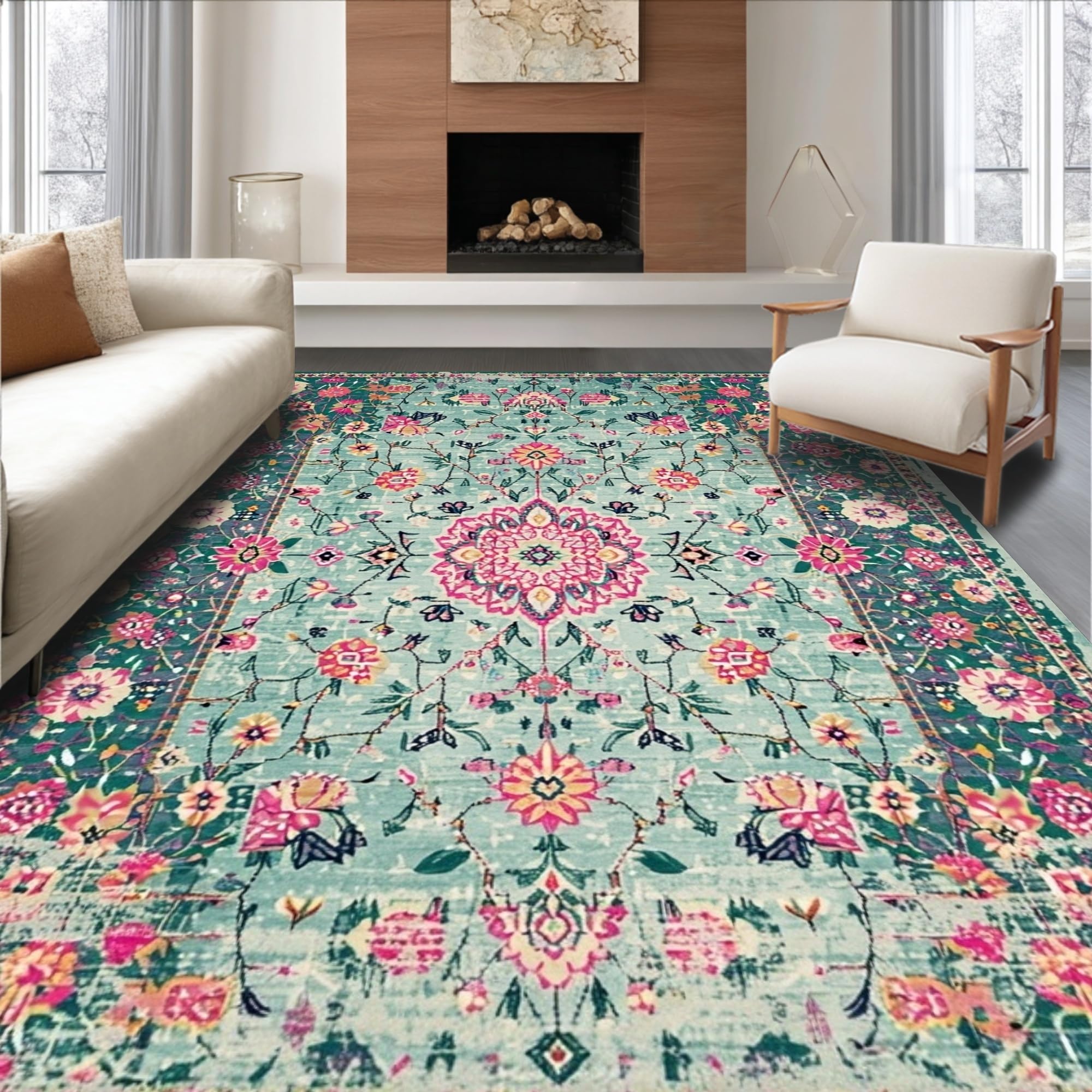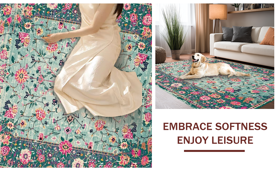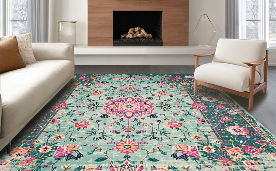 Ultra Soft Area Rug, Non Slip, Stain Resistant, Washable Area Rugs for Living Room, Bedroom, Soft Cozy Watercolor Floral Print(Blue) Overview: