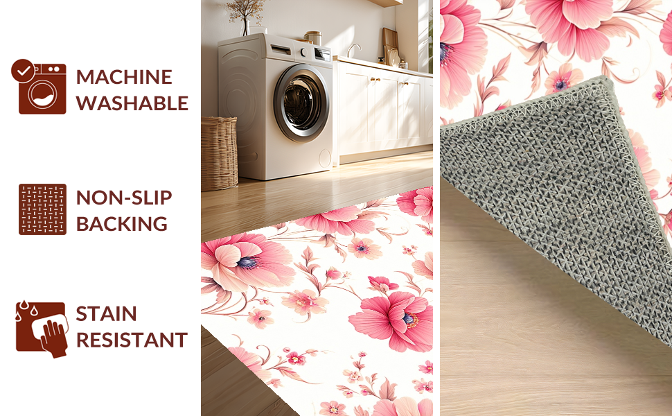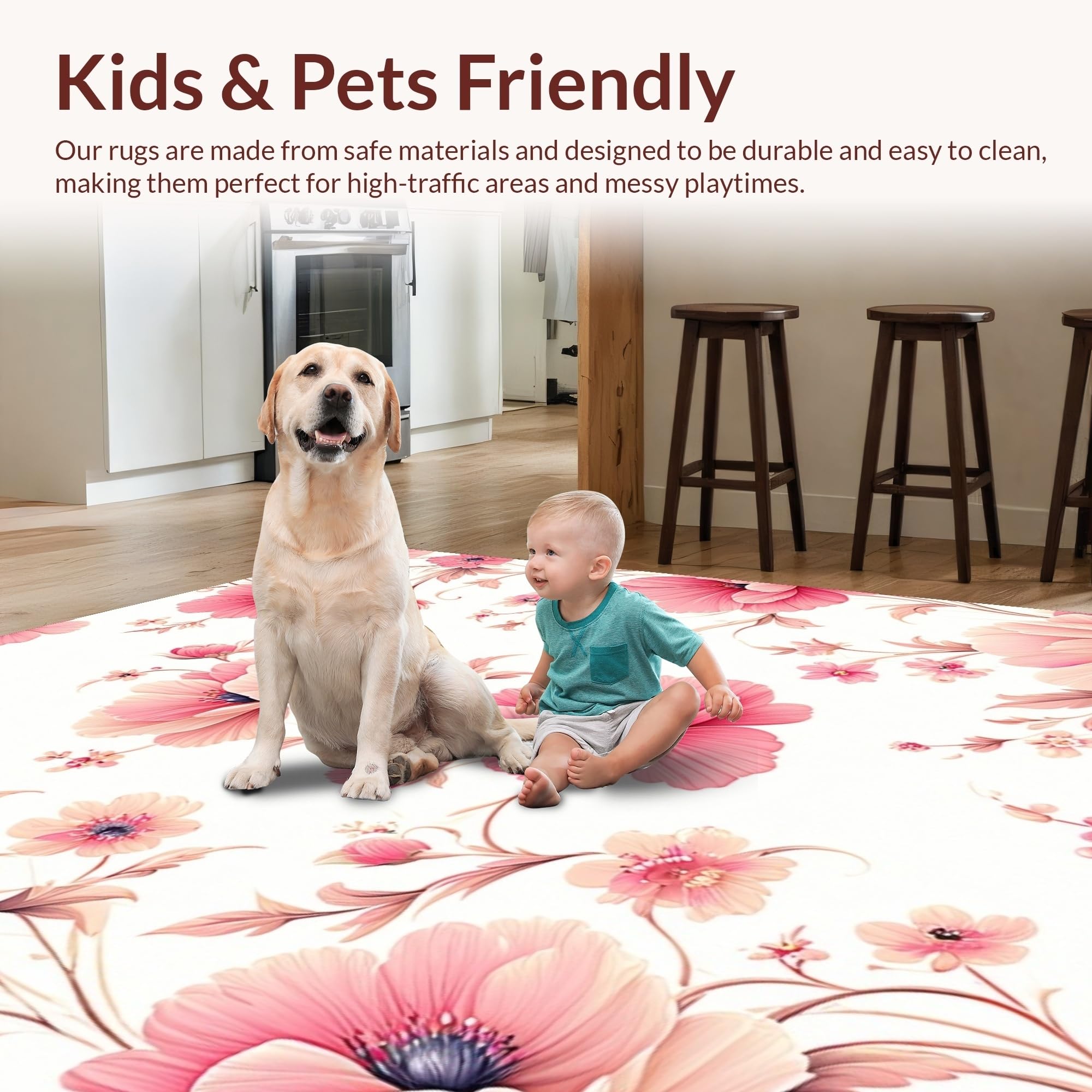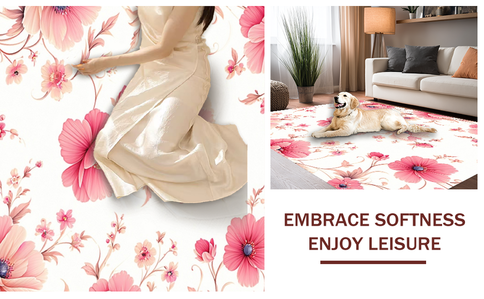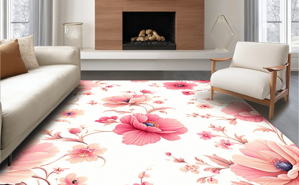 Ultra Soft Area Rug, Non Slip, Stain Resistant, Washable Area Rugs for Living Room, Bedroom, Soft Earthy Rose Pattern(Pink) Overview: