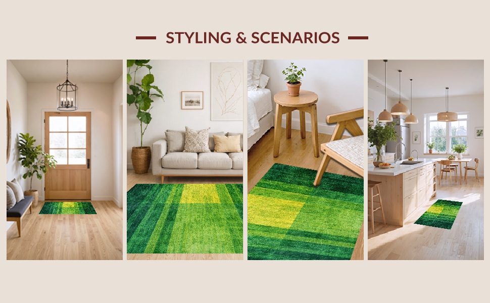 Ultra Soft Area Rug, Non Slip, Stain Resistant, Washable Area Rugs for Living Room, Bedroom, Soft Earthy Shag Texture(Green) Overview:
