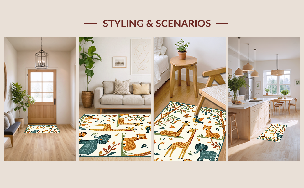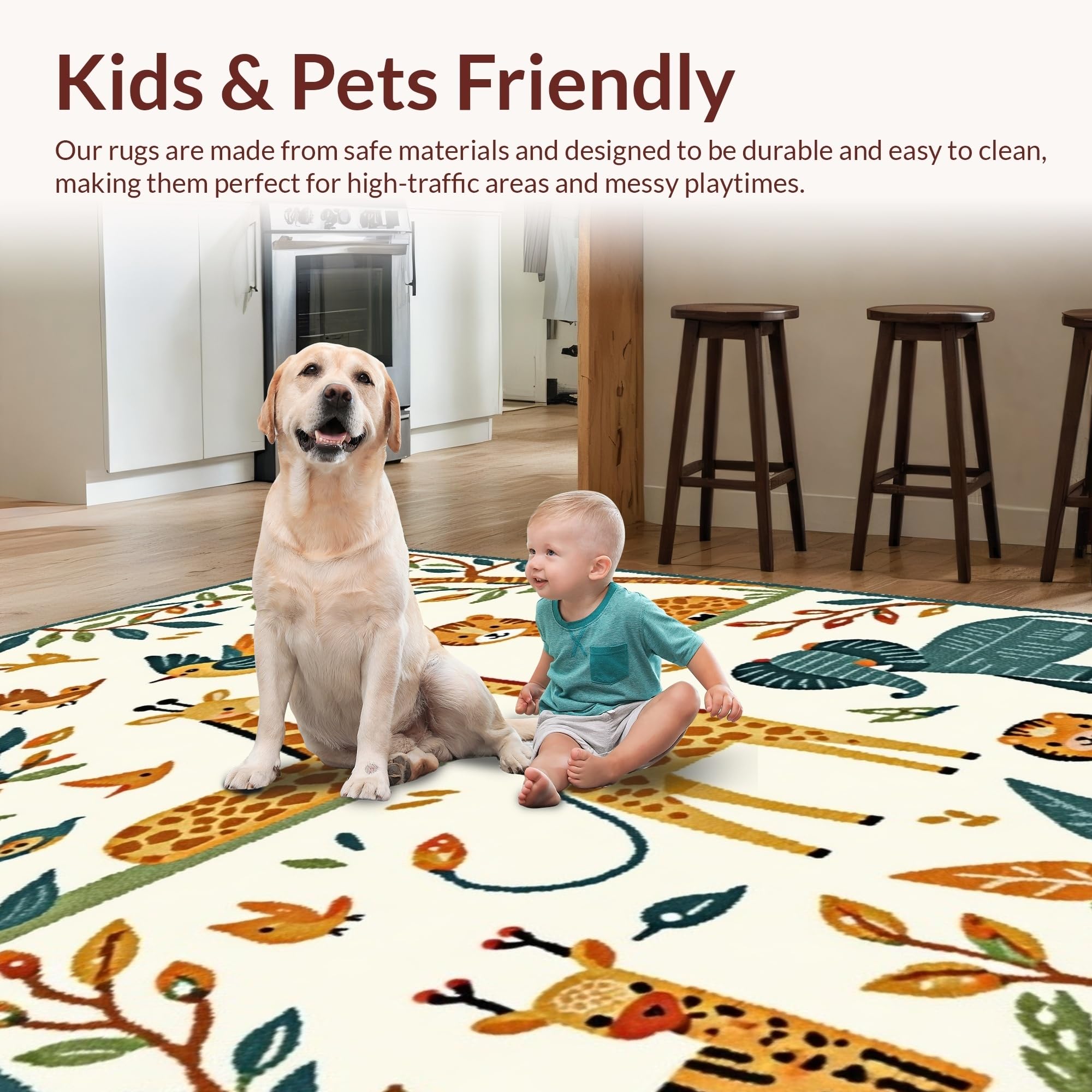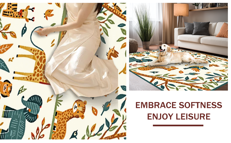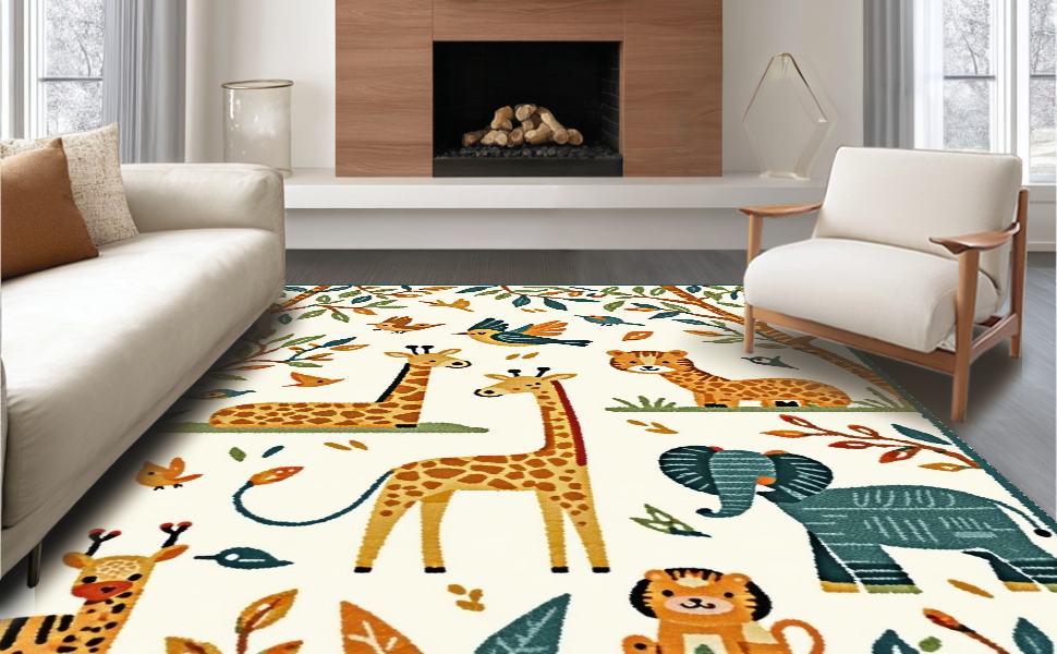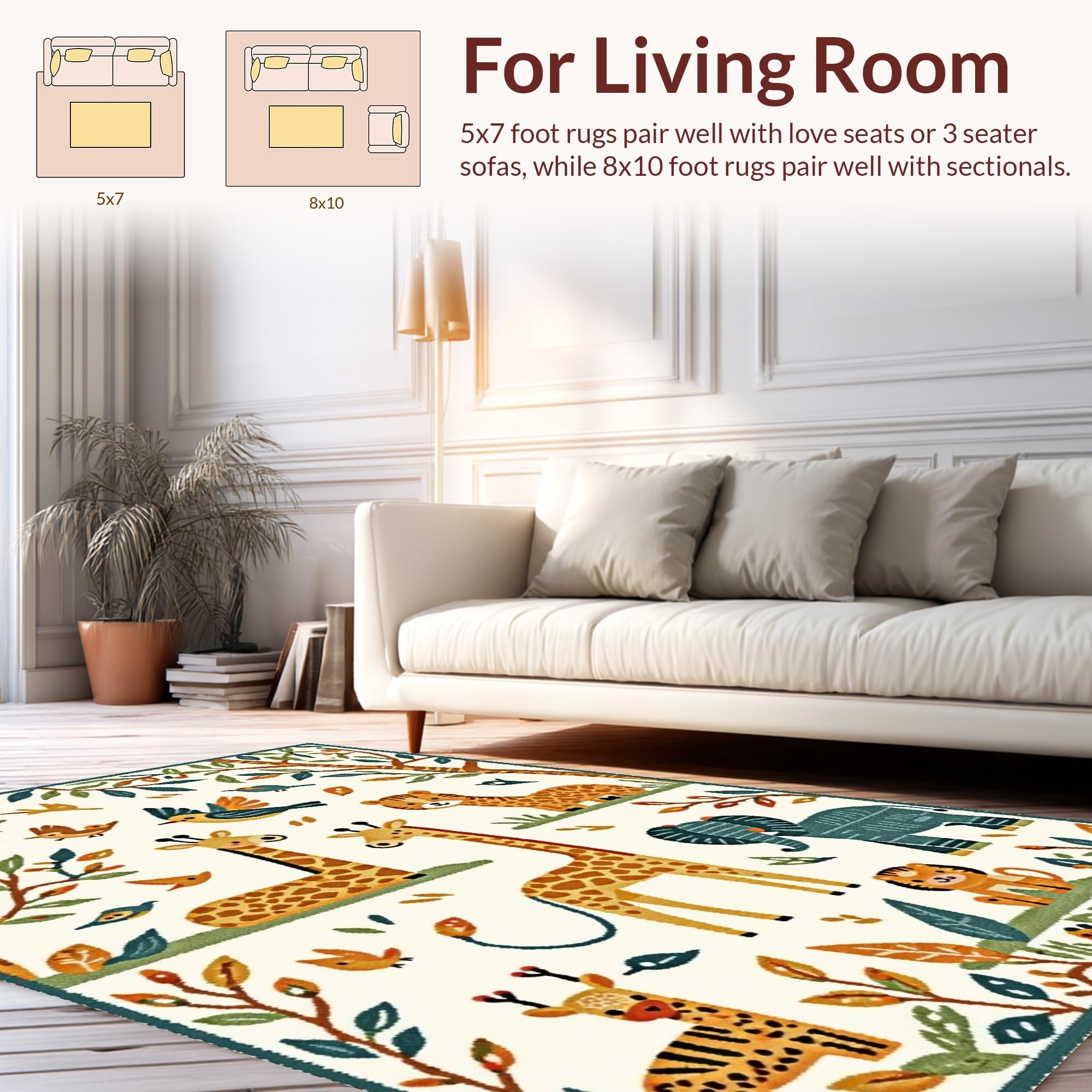 Ultra Soft Area Rug, Non Slip, Stain Resistant, Washable Area Rugs for Living Room, Bedroom, Soft Earthy Tone Safari Design(Ivory) Overview: