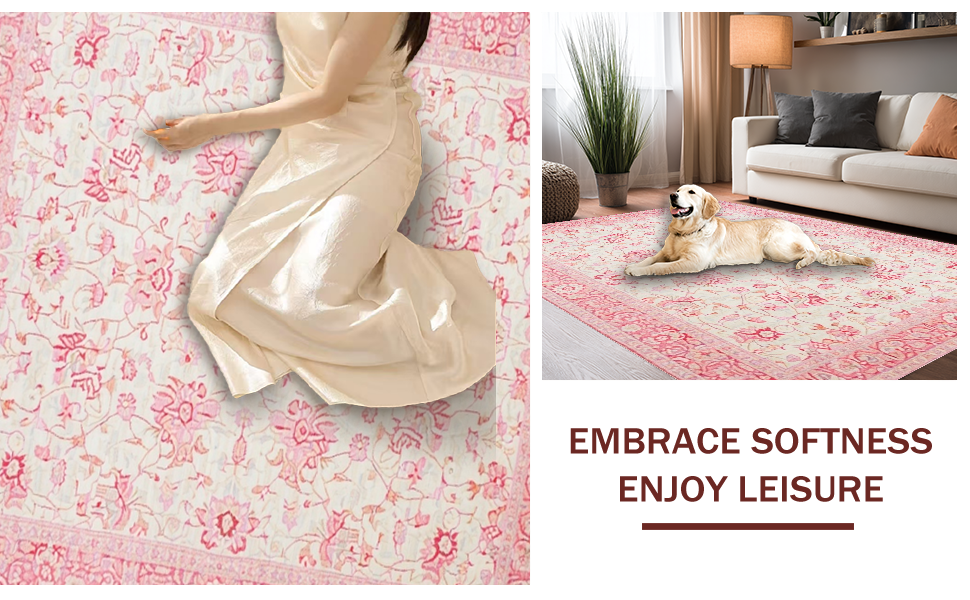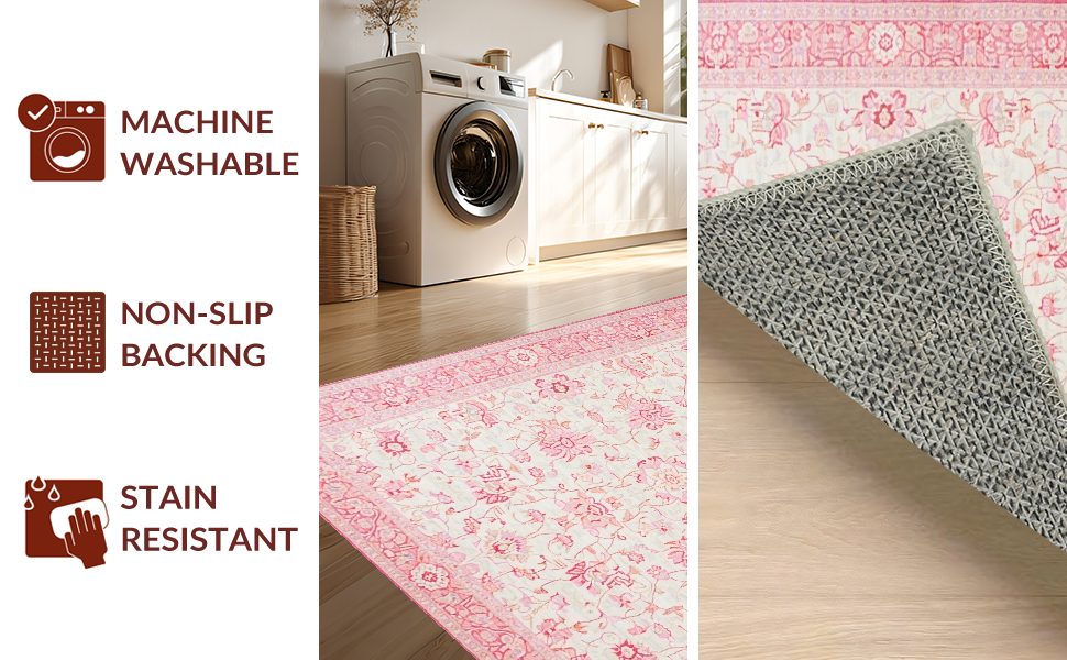 Ultra Soft Area Rug, Non Slip, Stain Resistant, Washable Area Rugs for Living Room, Bedroom, Soft Earthy Toned Lattice Accents(Pink) Overview: