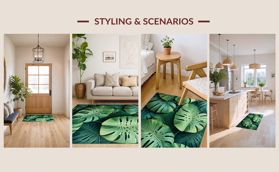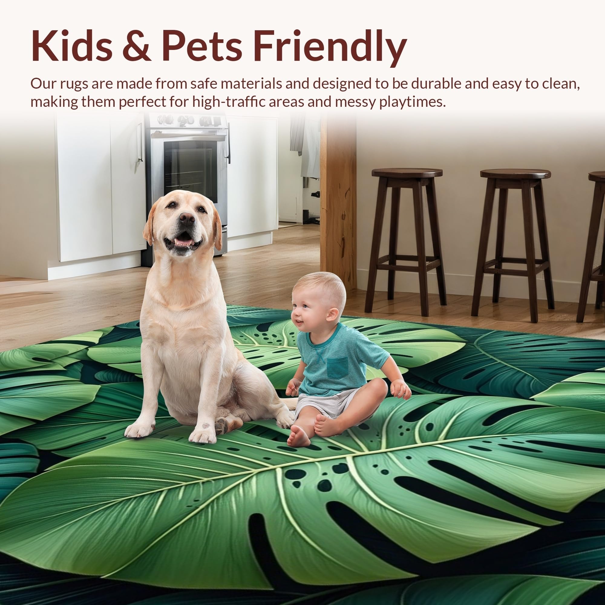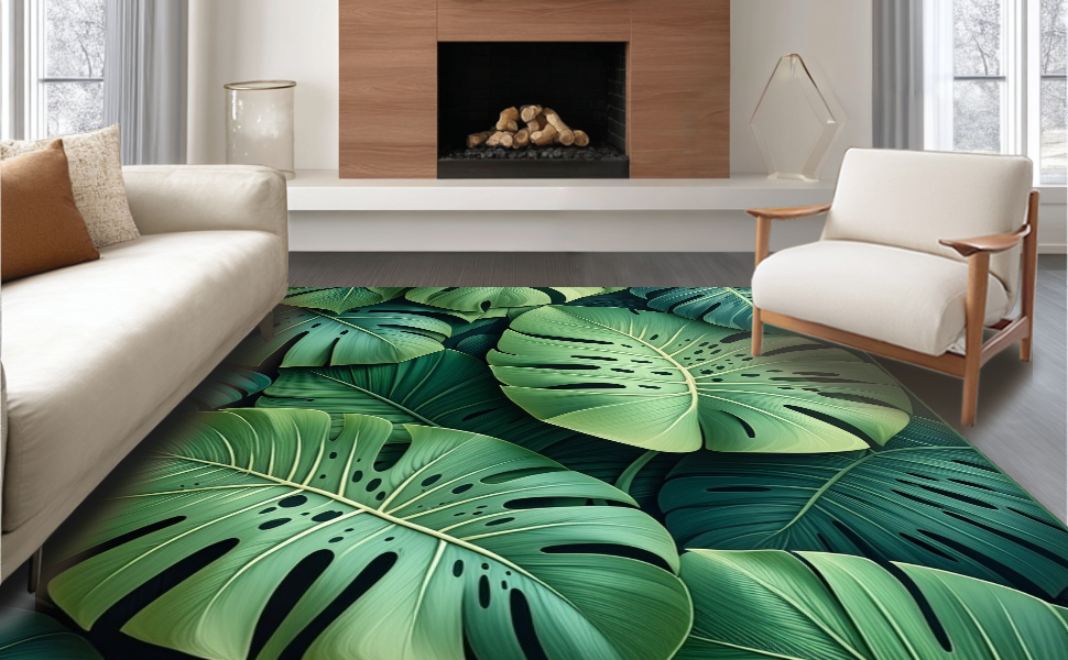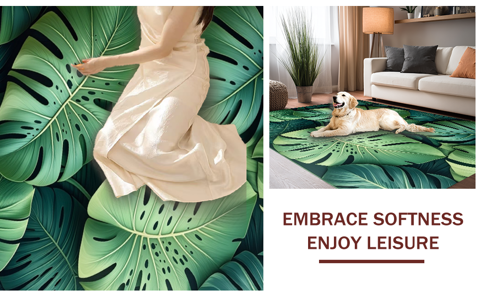 Ultra Soft Area Rug, Non Slip, Stain Resistant, Washable Area Rugs for Living Room, Bedroom, Soft Earthy Tones Leaf Theme(Green) Overview: