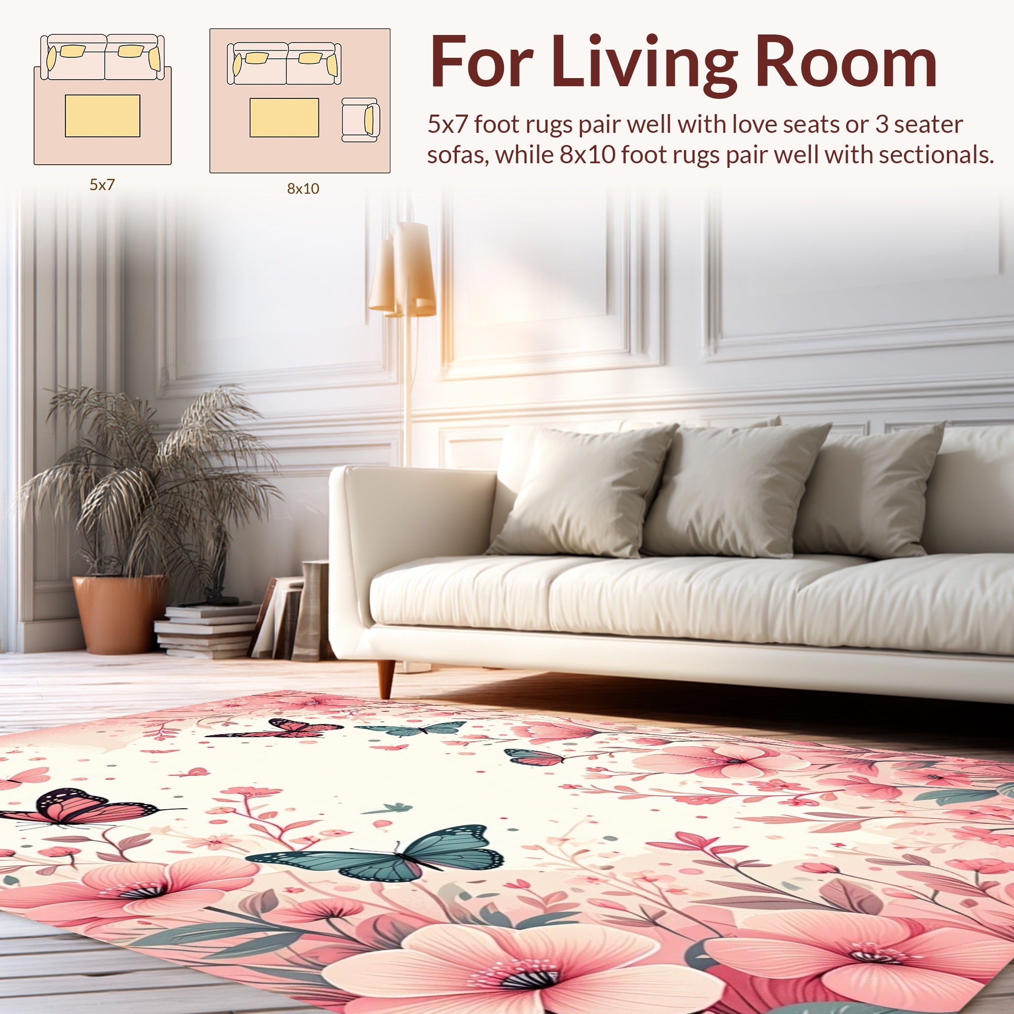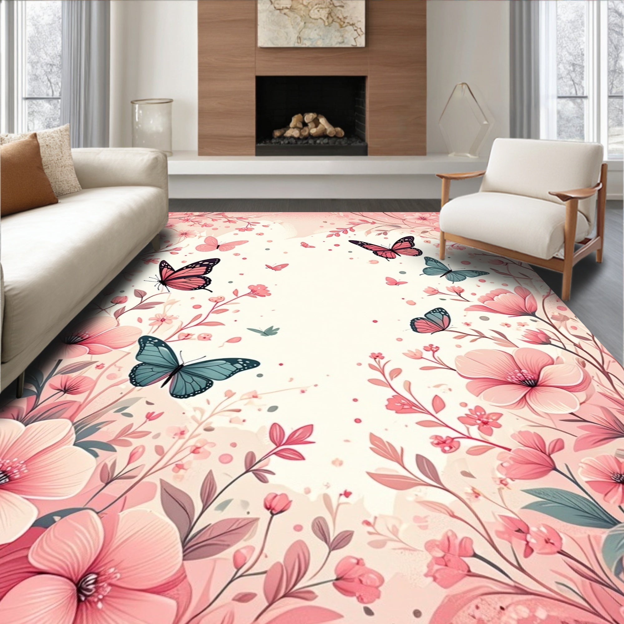 Flatwoven High Traffic Area Rug, Elegant Bloom Design, Non Slip, Stain Resistant, Washable Area Rugs for Living Room, Bedroom (Pink) Overview: