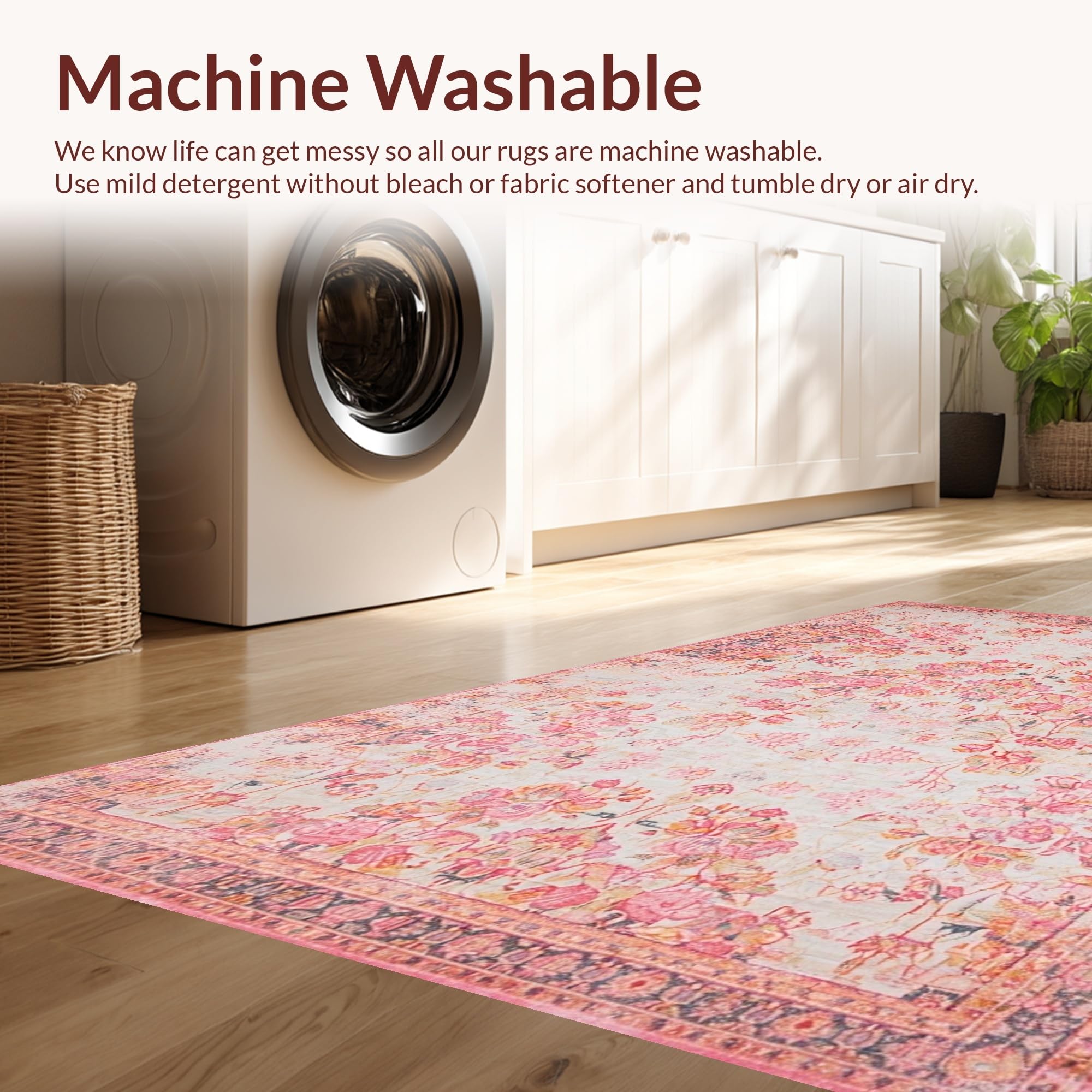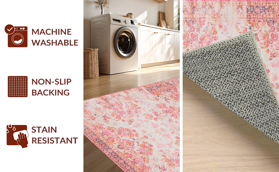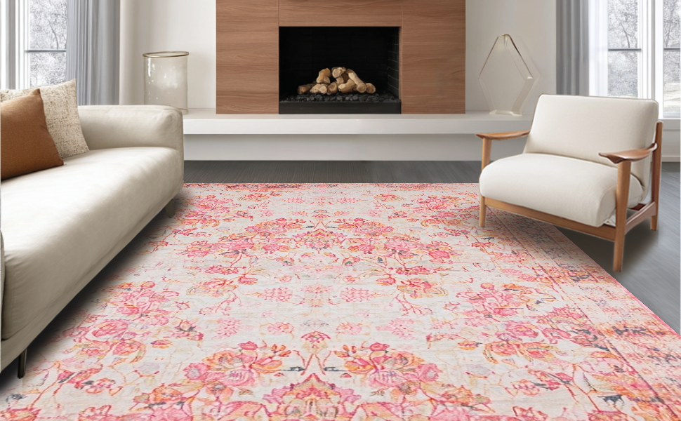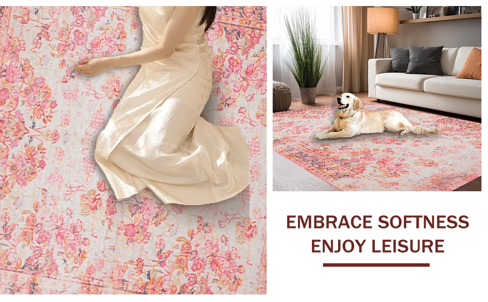 Ultra Soft Area Rug, Non Slip, Stain Resistant, Washable Area Rugs for Living Room, Bedroom, Soft Floral Pastel Aesthetic(Pink) Overview: