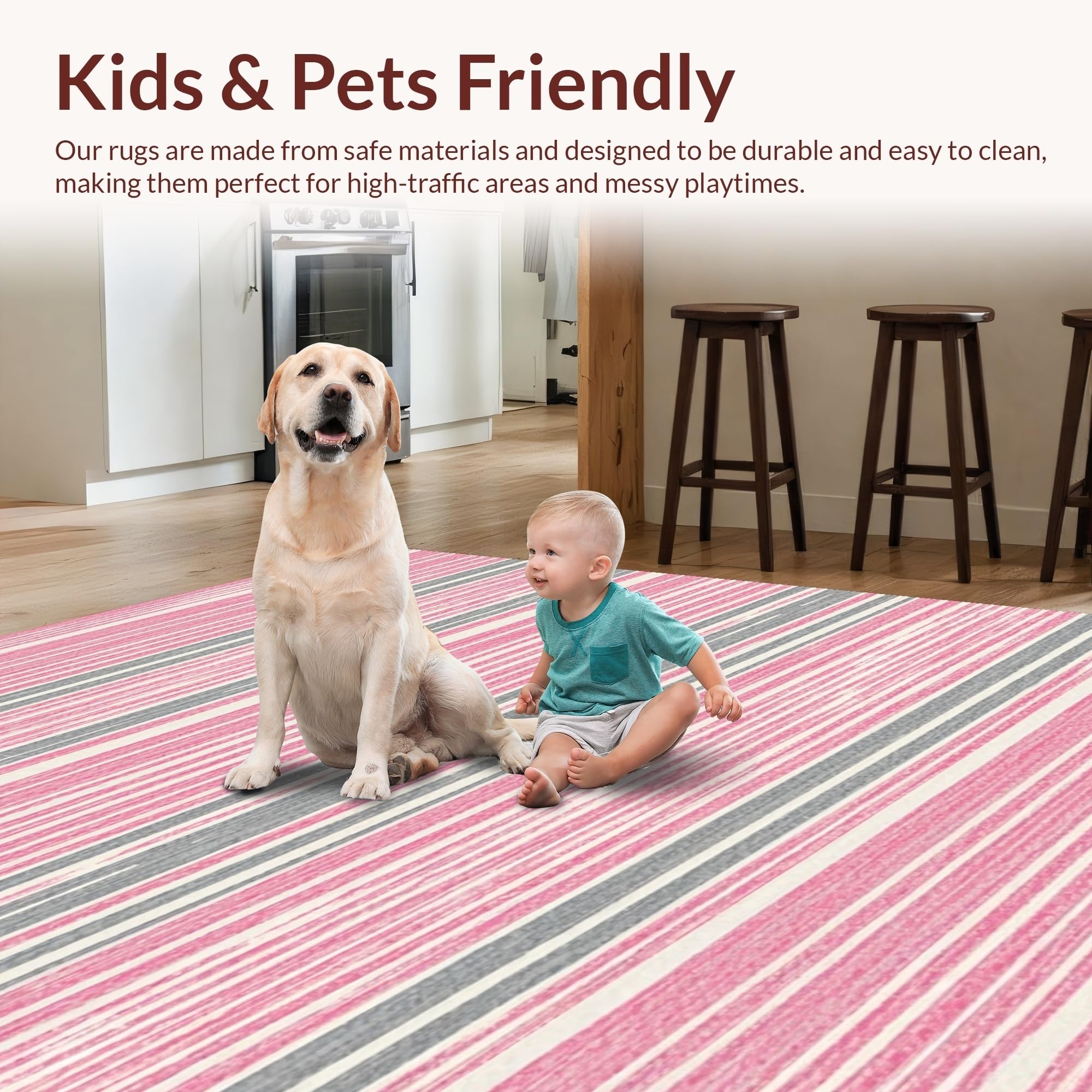 Ultra Soft Area Rug, Non Slip, Stain Resistant, Washable Area Rugs for Living Room, Bedroom, Soft Gray and Pink Harmony(Pink) Overview: