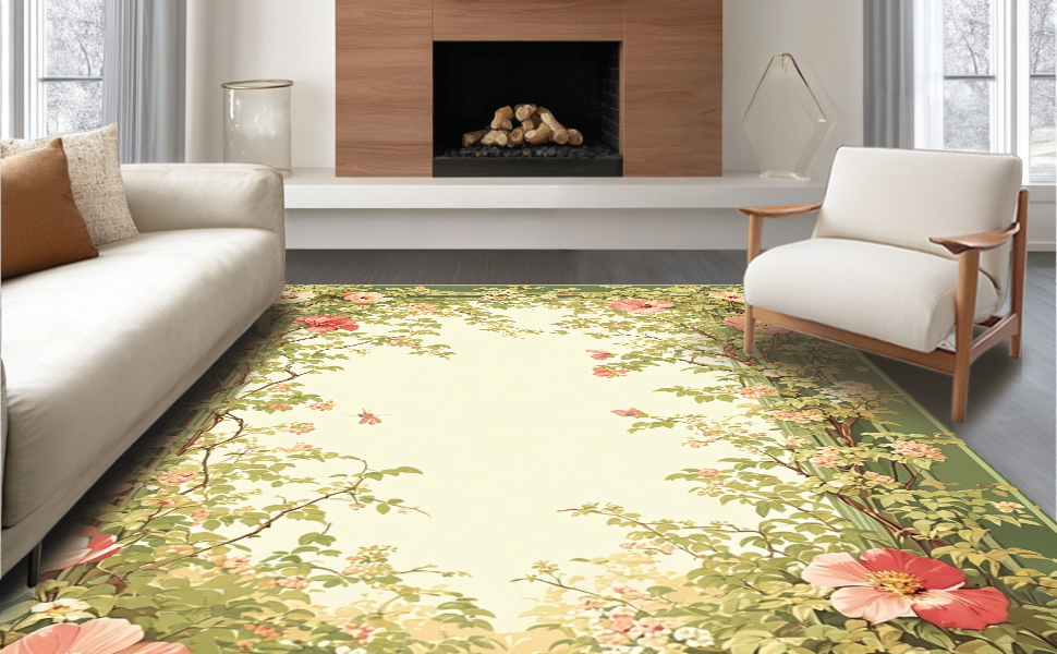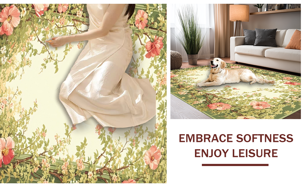 Ultra Soft Area Rug, Non Slip, Stain Resistant, Washable Area Rugs for Living Room, Bedroom, Soft Greenery Infused Elegant Decor(Green) Overview: