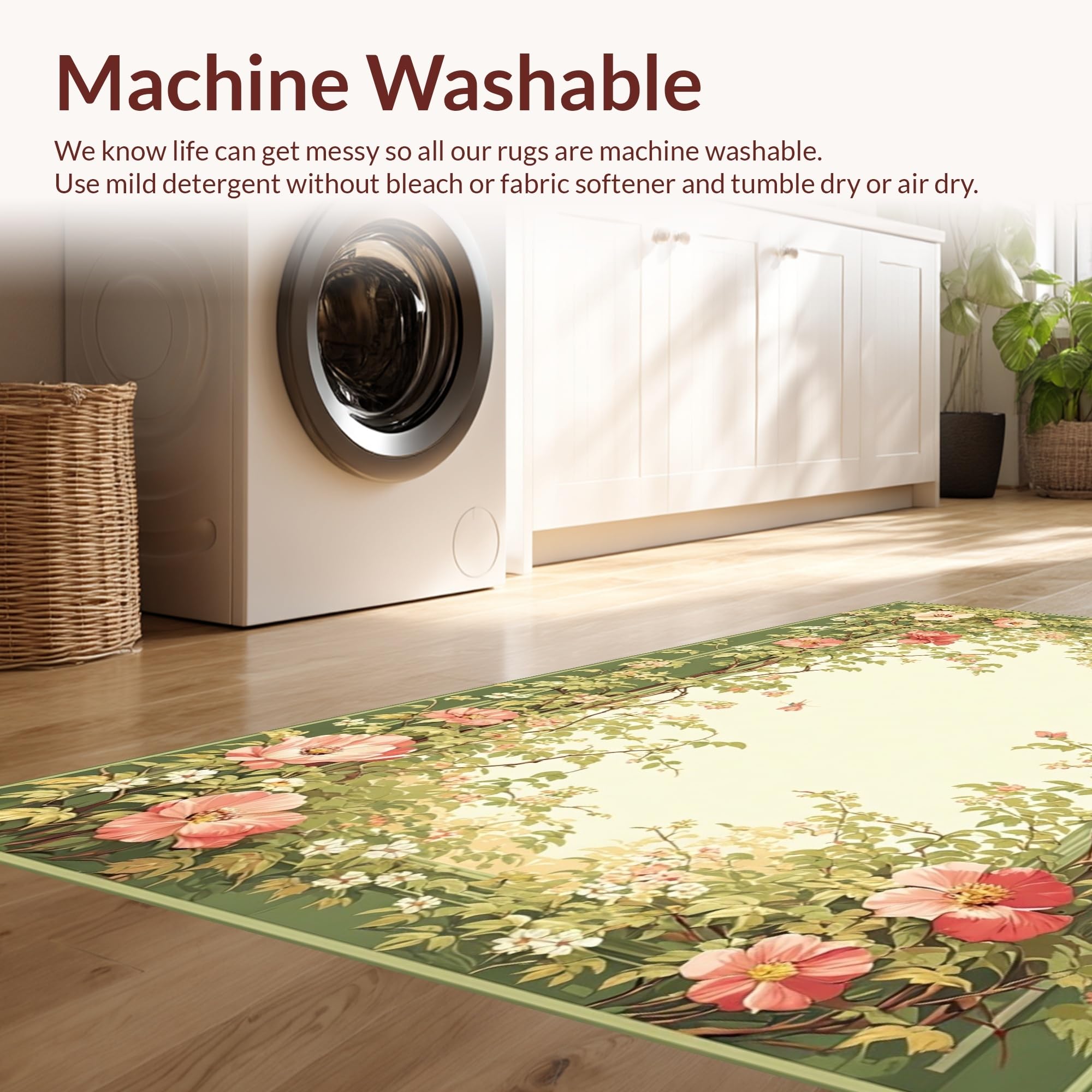 - Machine Washable: Our rugs can be easily thrown in the wash machine.