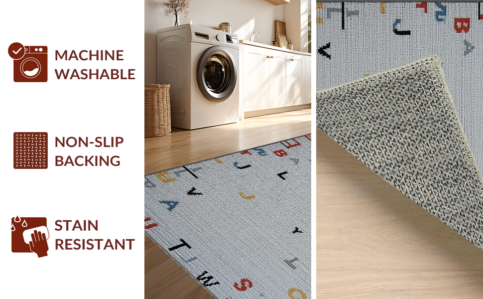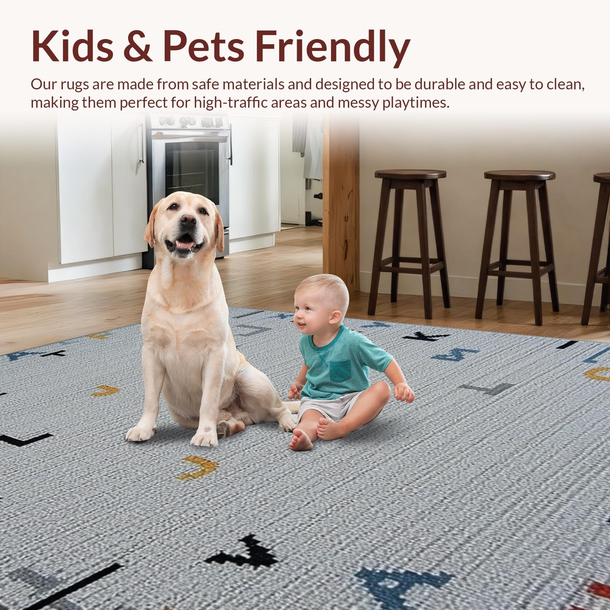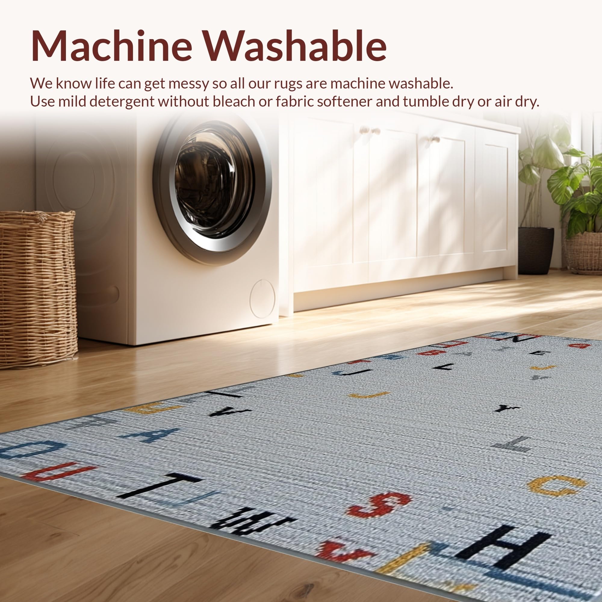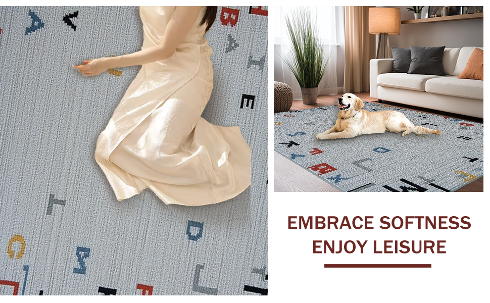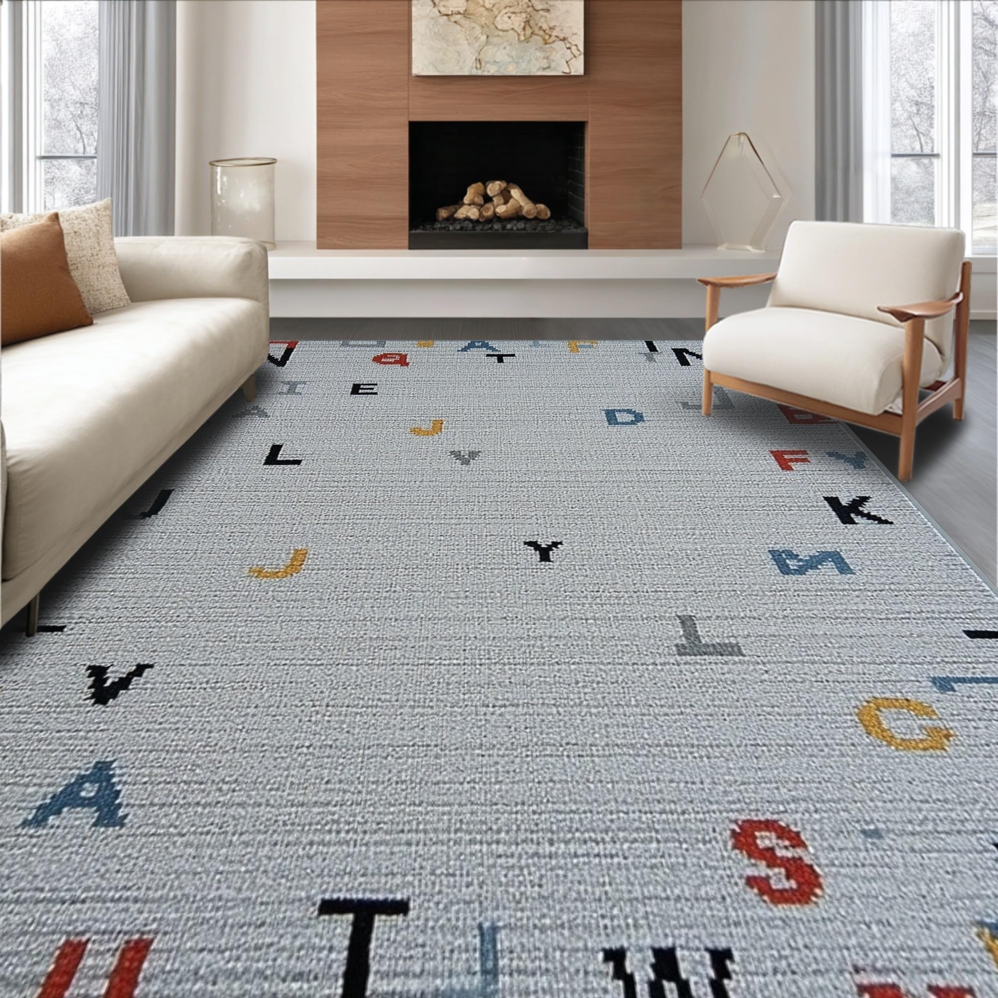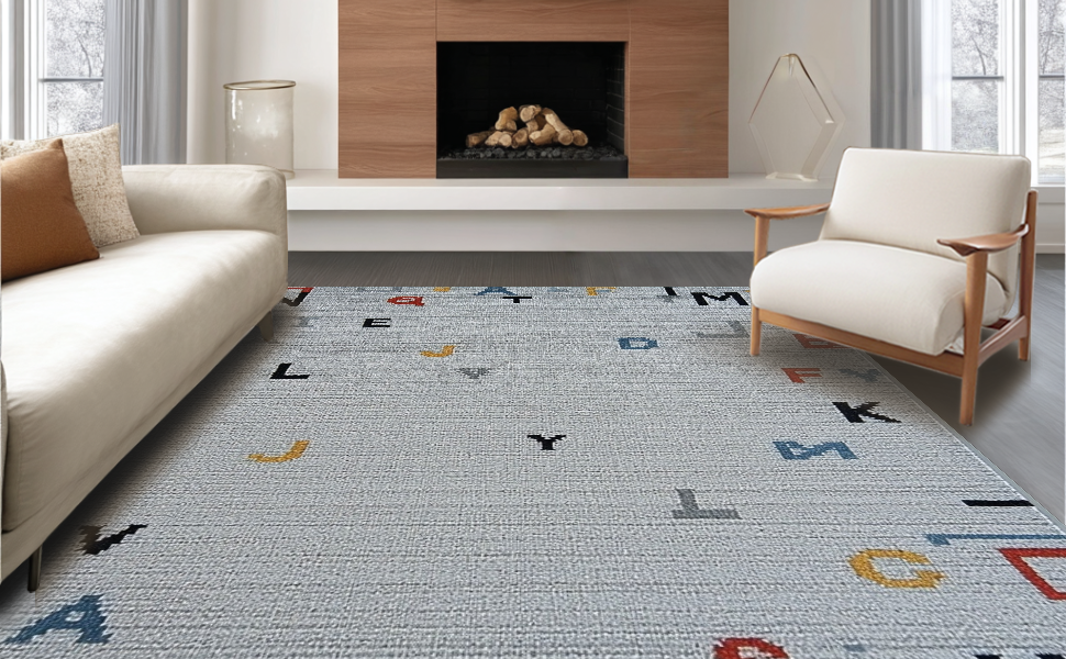 Ultra Soft Area Rug, Non Slip, Stain Resistant, Washable Area Rugs for Living Room, Bedroom, Soft Grey Whimsical Letter Pattern(Gray) Overview: